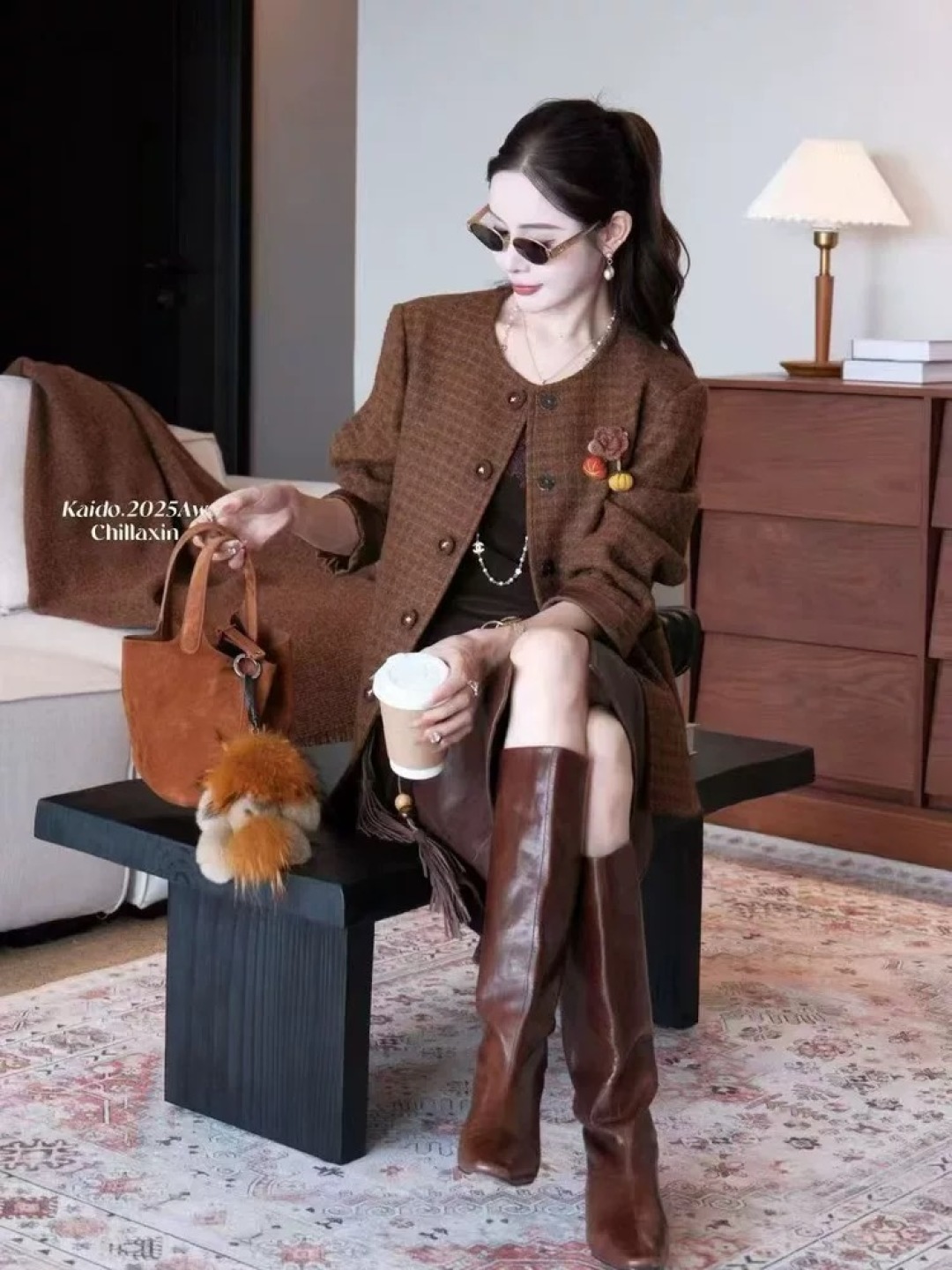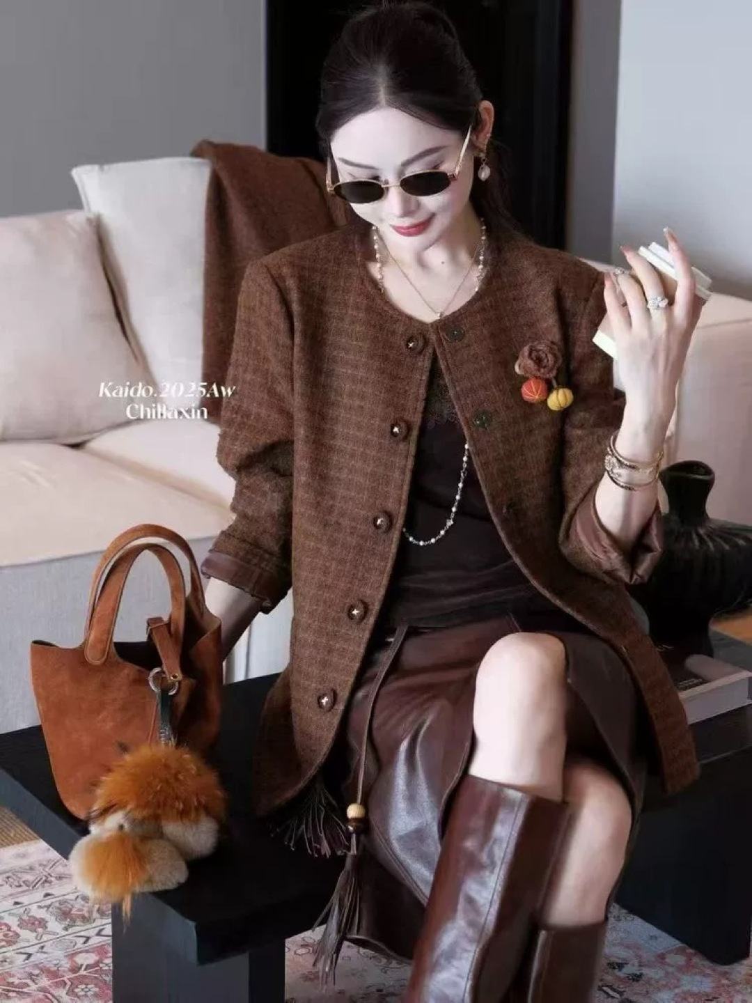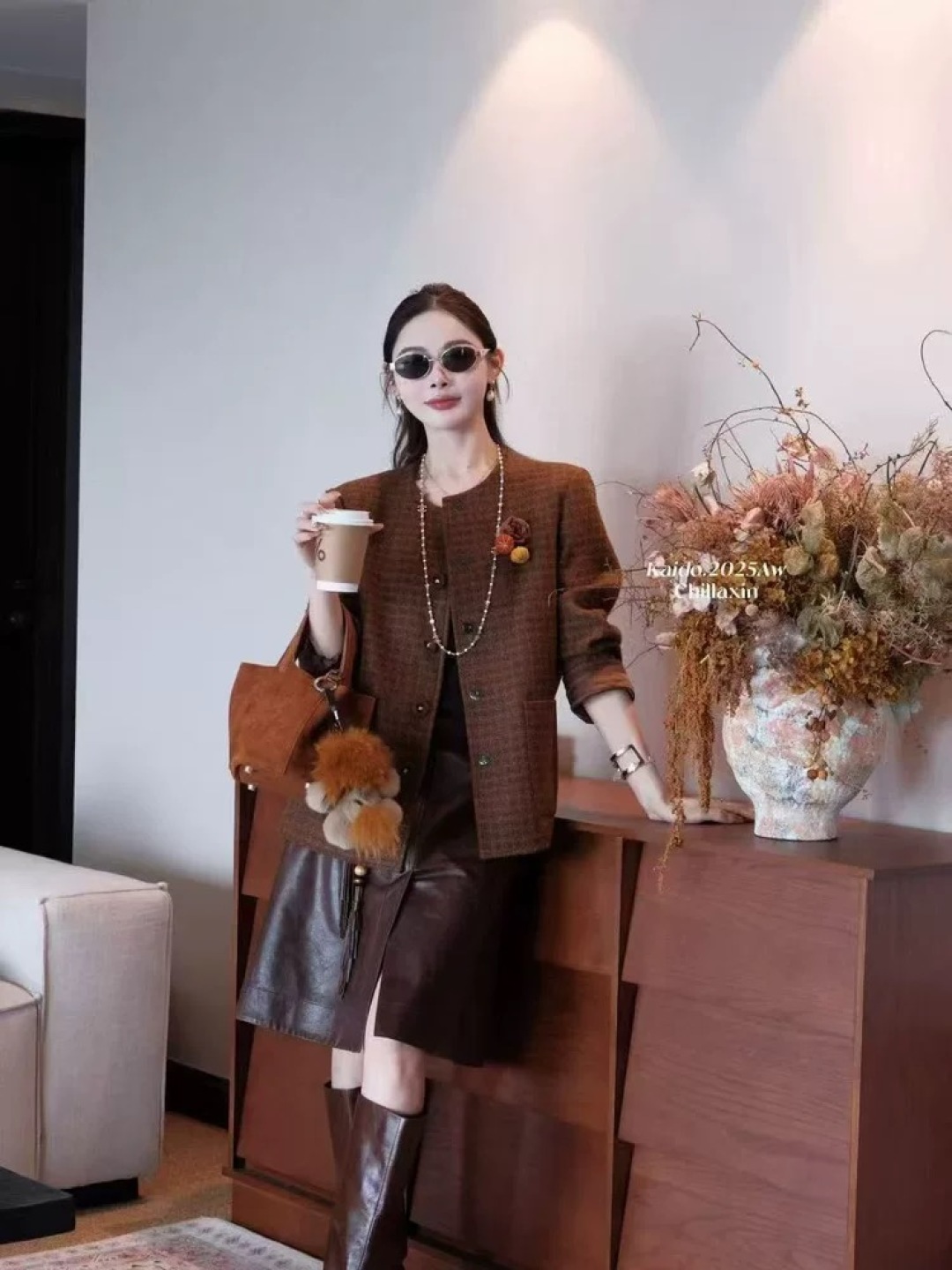 This H-shaped, loose-fitting tweed jacket is inspired by the iconic Chanel style. With its classic silhouette and refined details, it's a versatile piece that adds sophistication to any outfit.