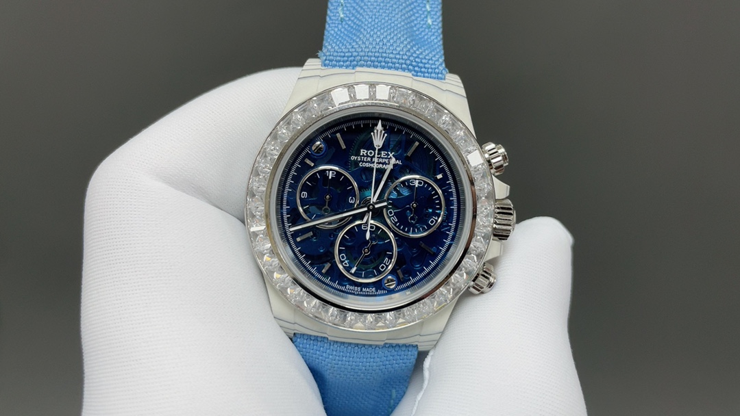 Customized Rolex Cosmograph Watch with Diamond Bezel and Unique Blue Dial