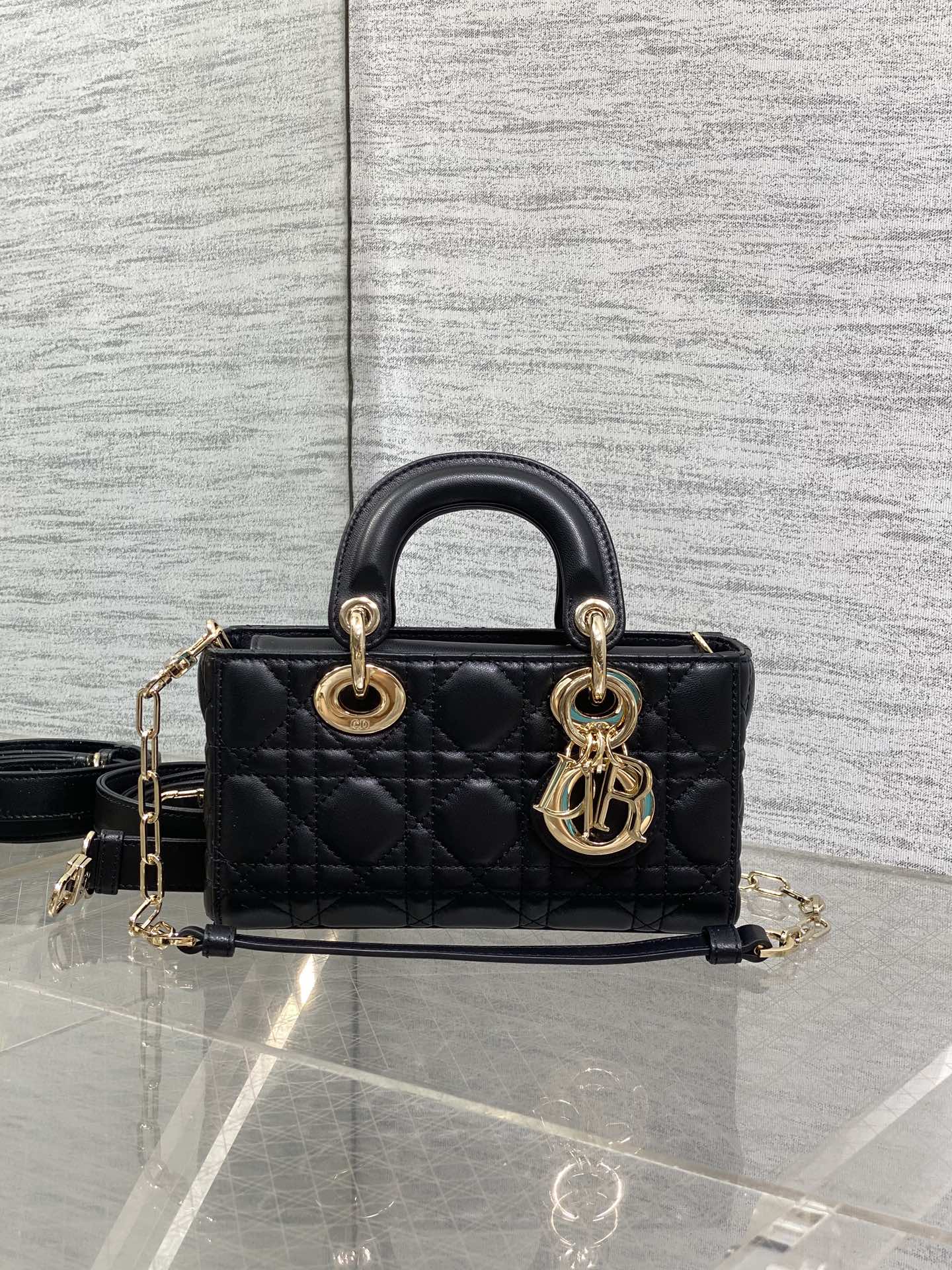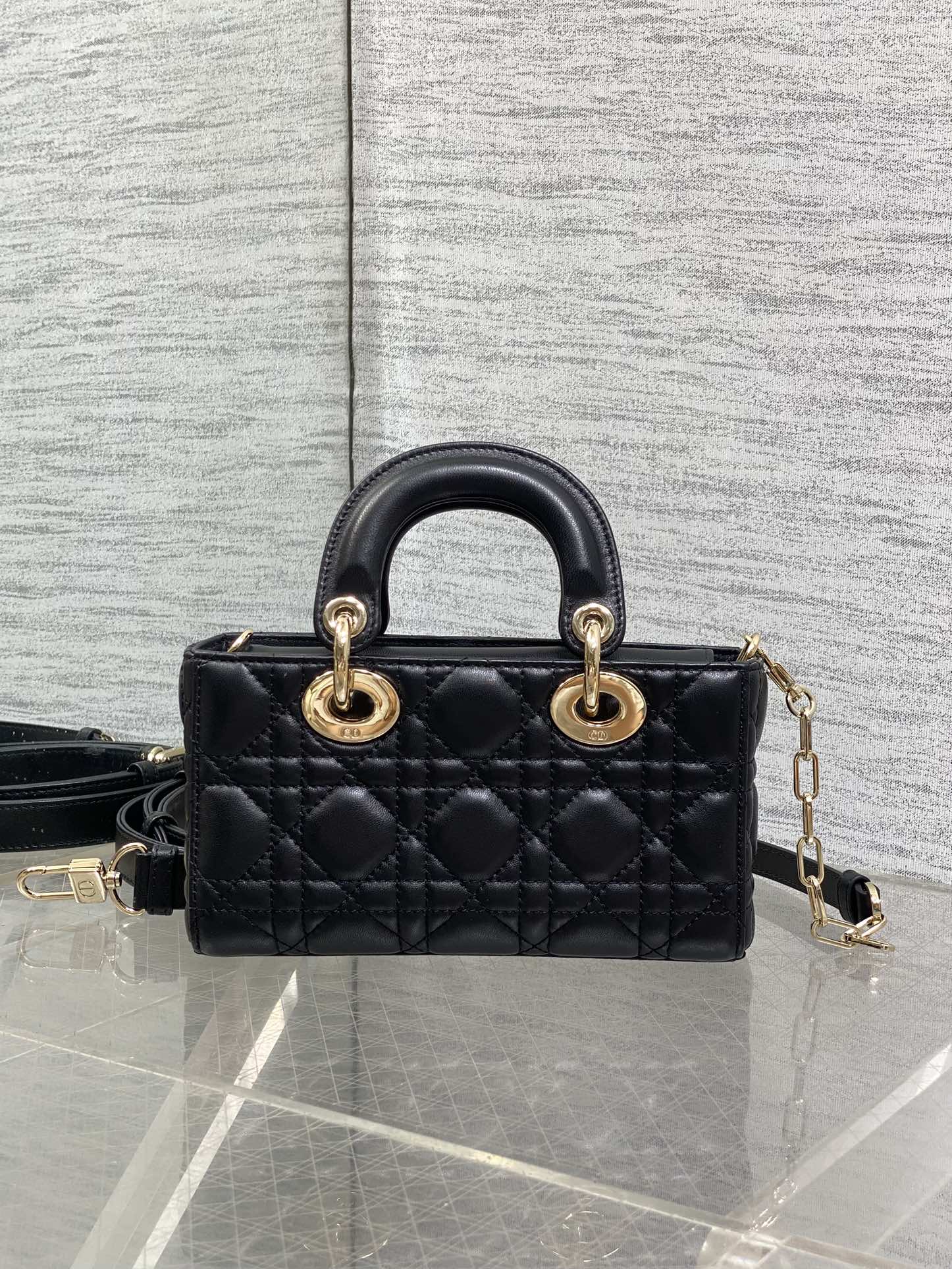 D-Joy Mini Black Lambskin Bag with Dual Straps and Cannage Stitching