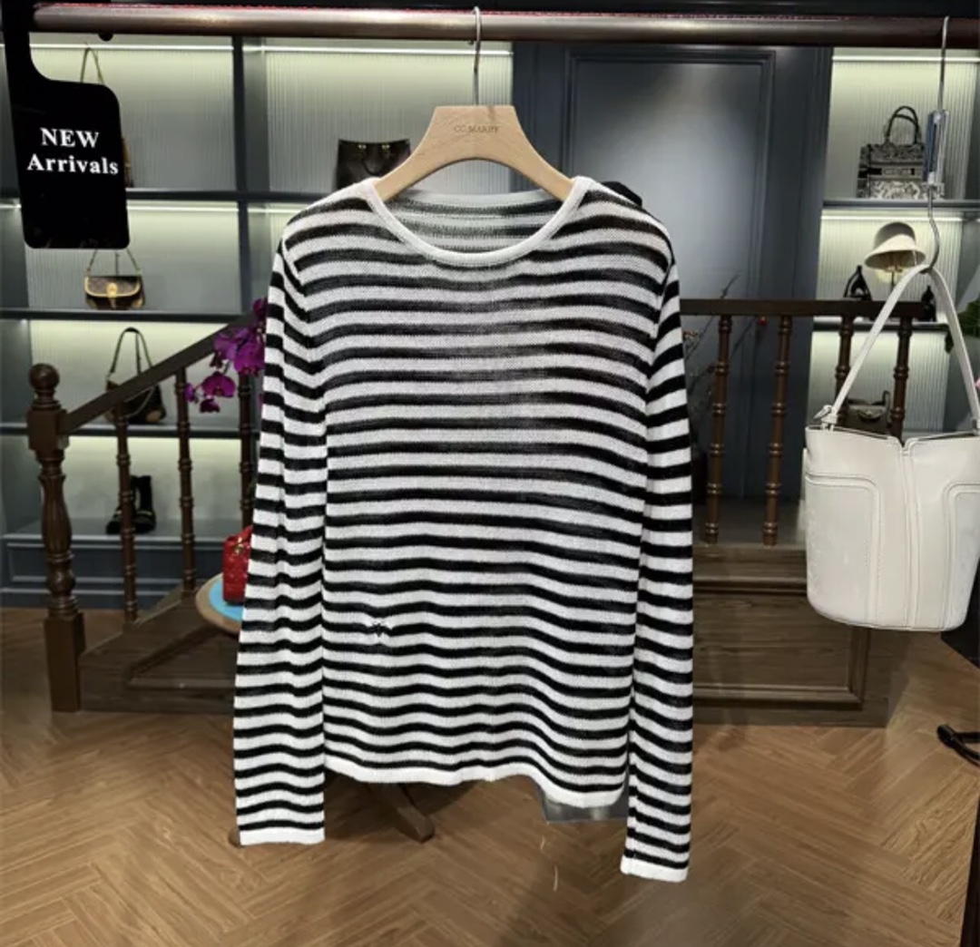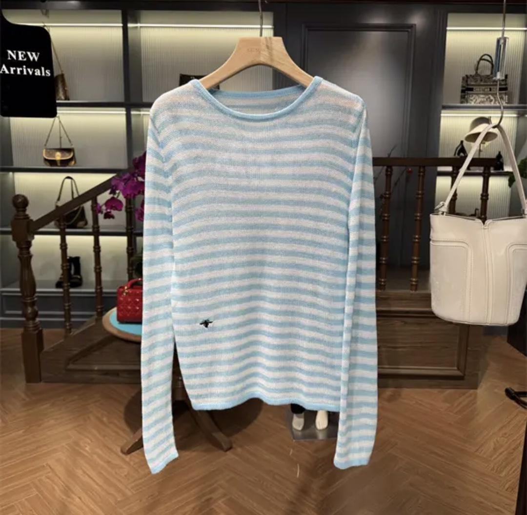 This exquisite sweater combines classic design with luxurious comfort. Crafted from a premium wool blend, this piece features a timeless striped pattern, subtly enhanced by the iconic bee embroidery.