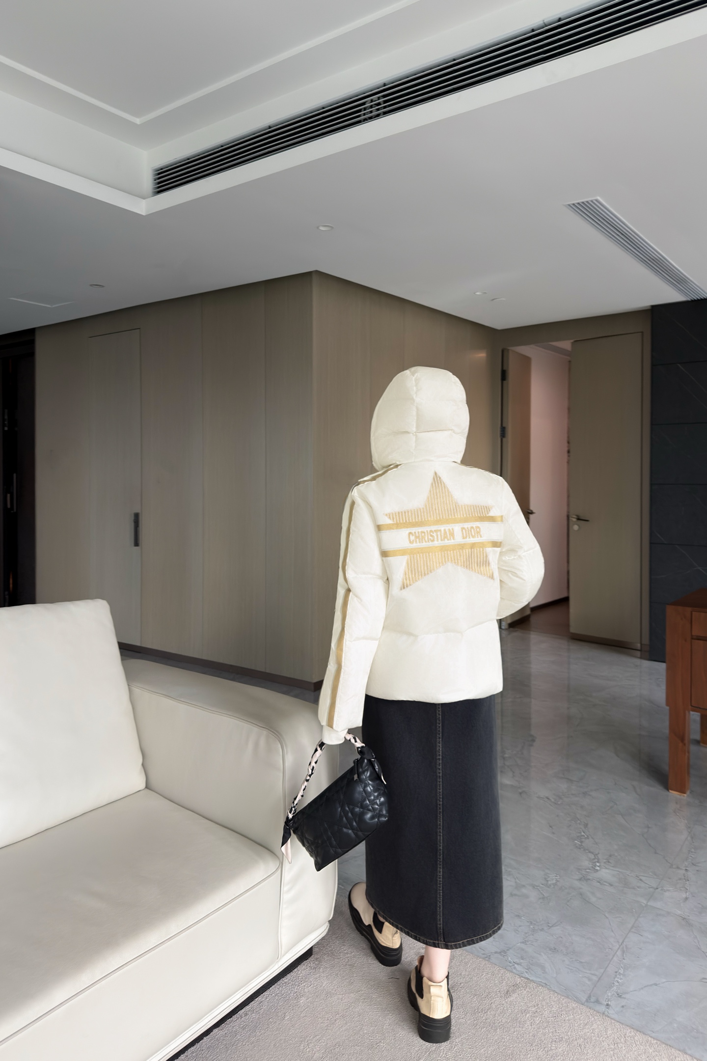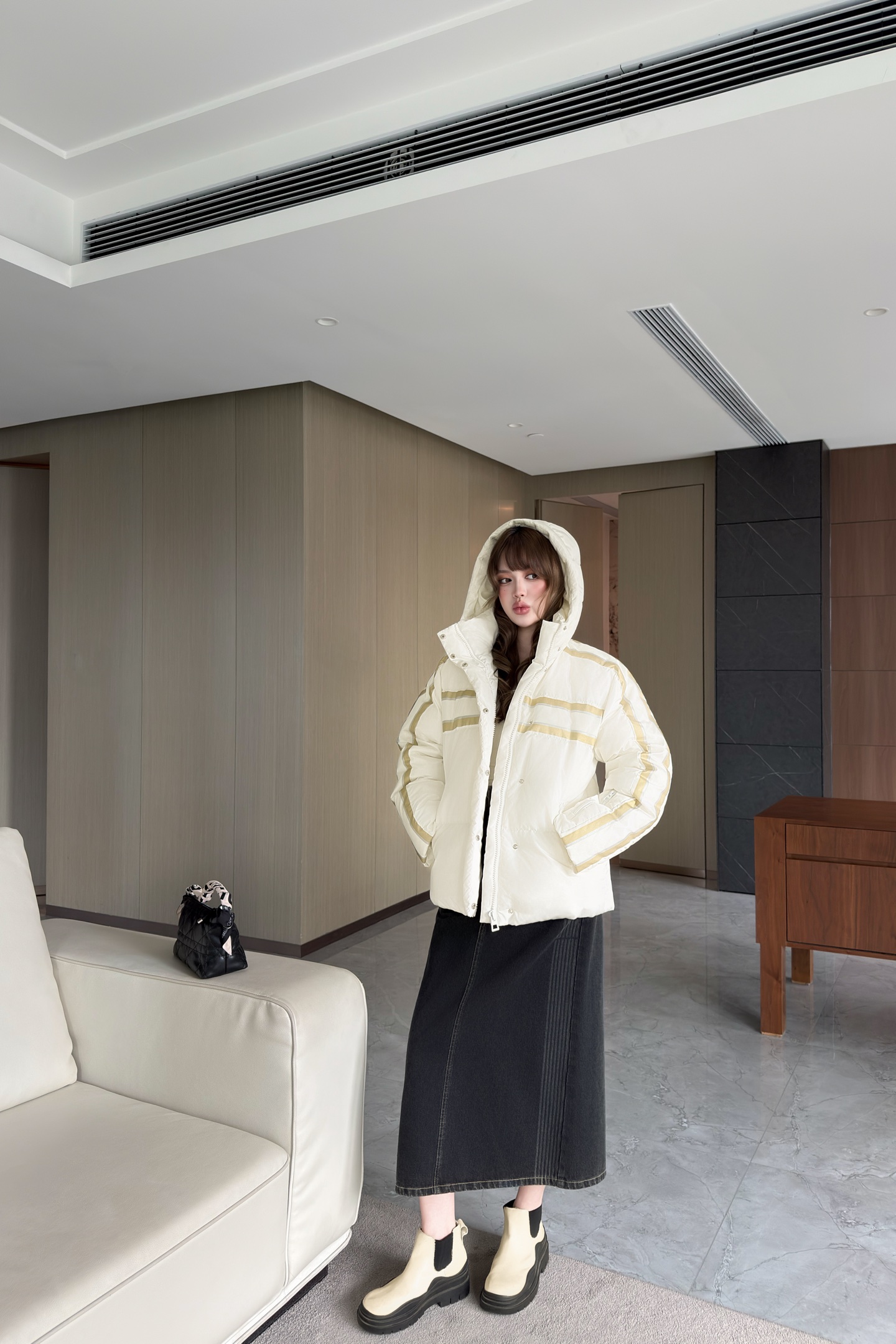 D Winter White Duck Down Puffer Jacket with Golden Star Details