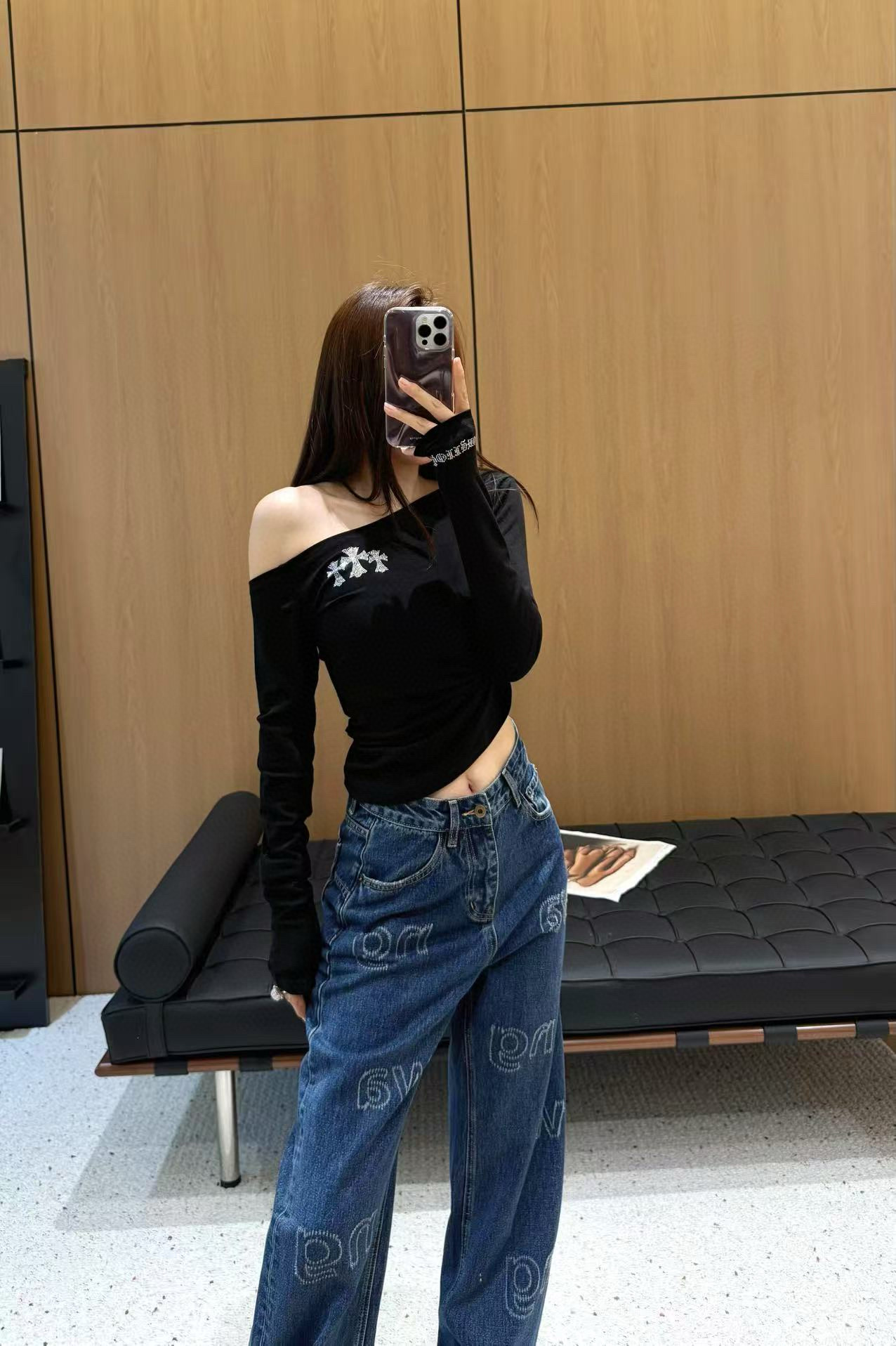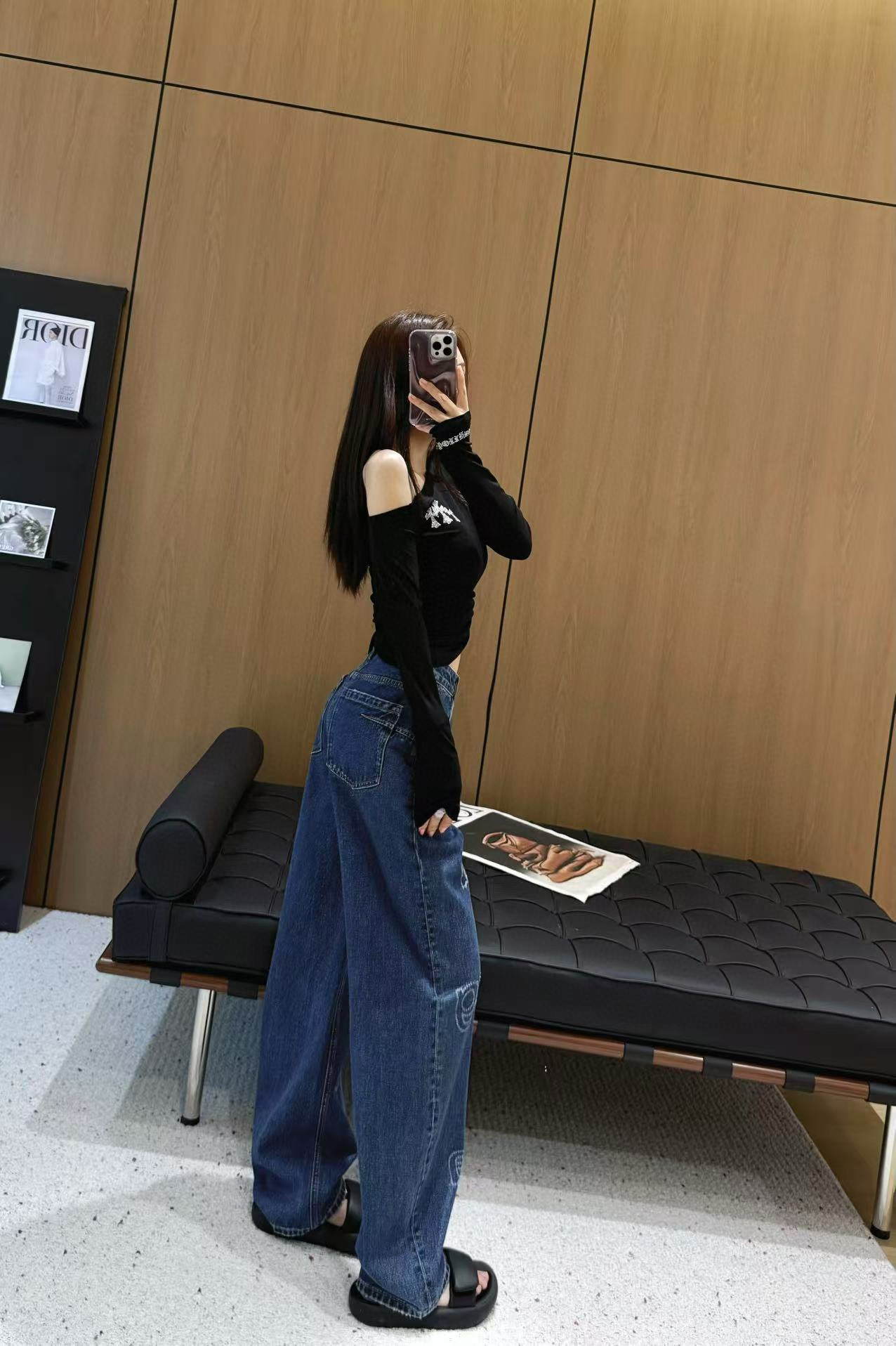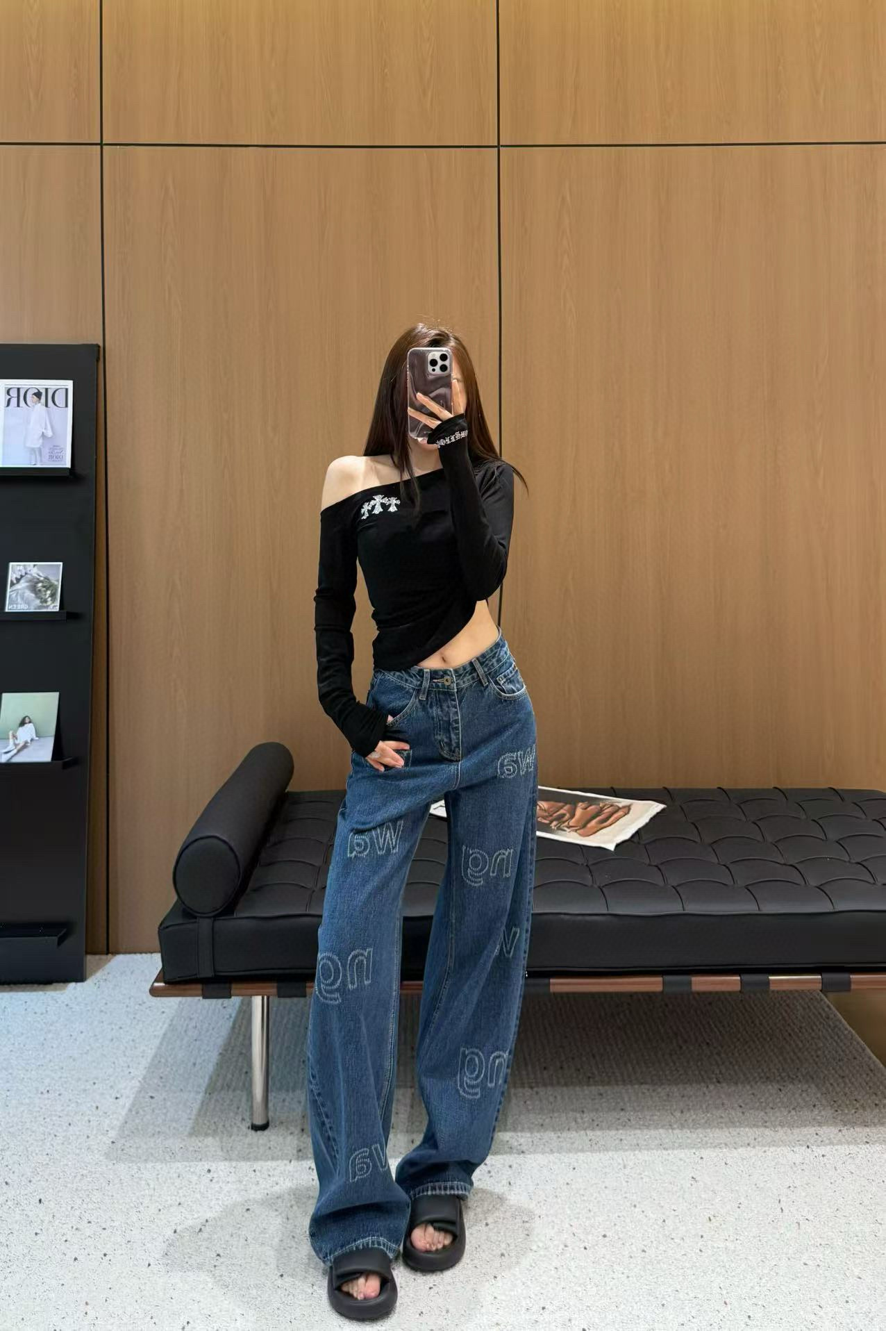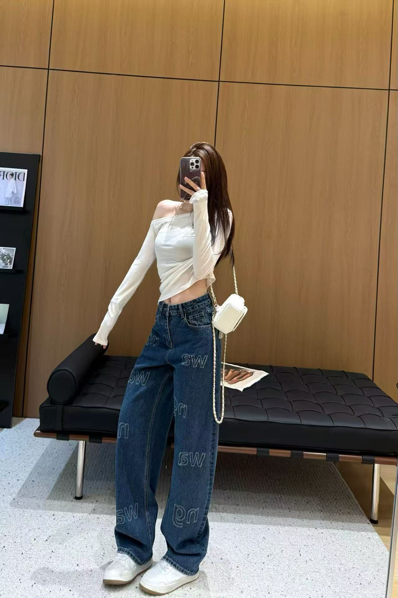 Designer Original Women's Jeans, High-Quality Denim with Unique Letter Design