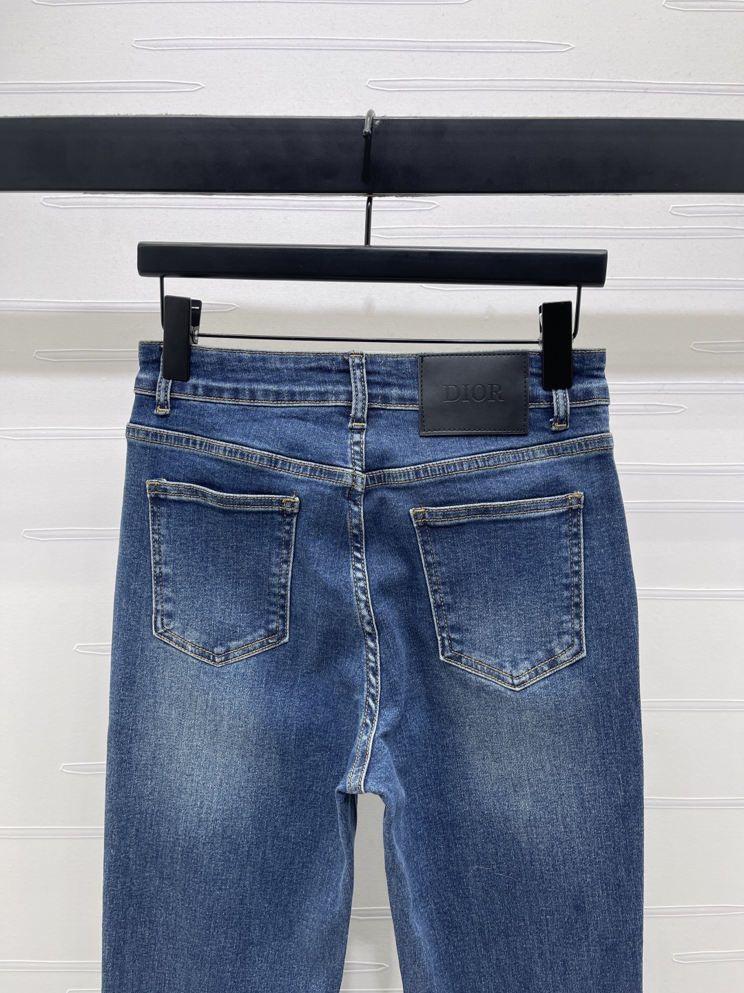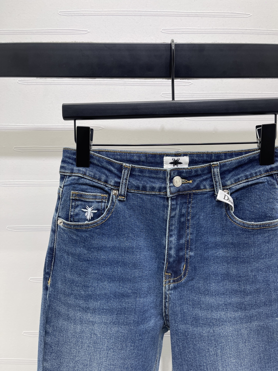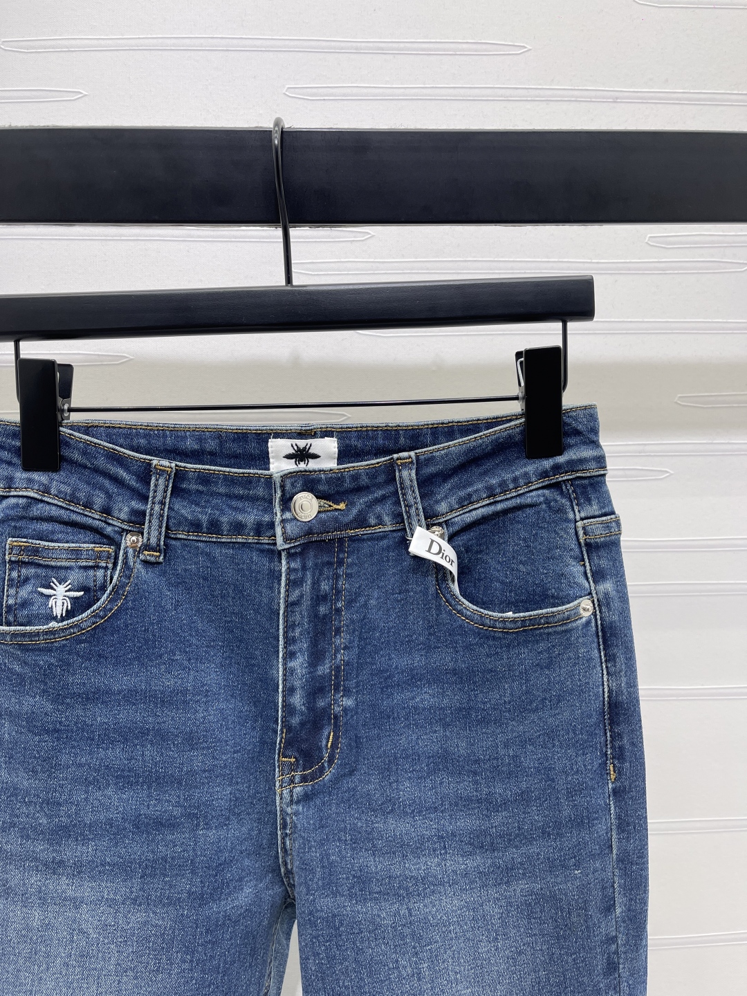 Tags: Cotton Denim Jeans, Designer Flare Jeans, Dior Denim Trousers, High Waisted Flare Jeans, Rhinestone Logo Jeans, Vintage Style Jeans