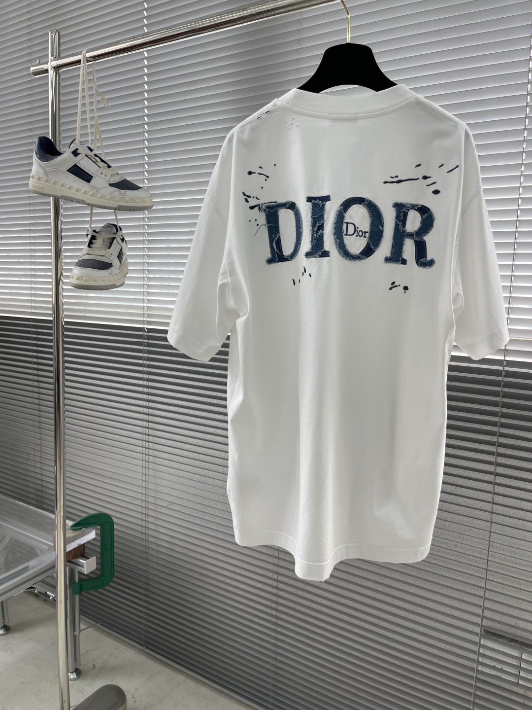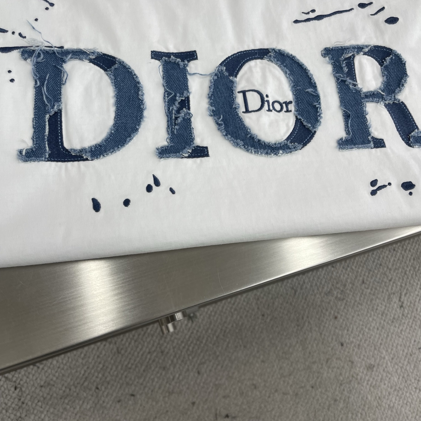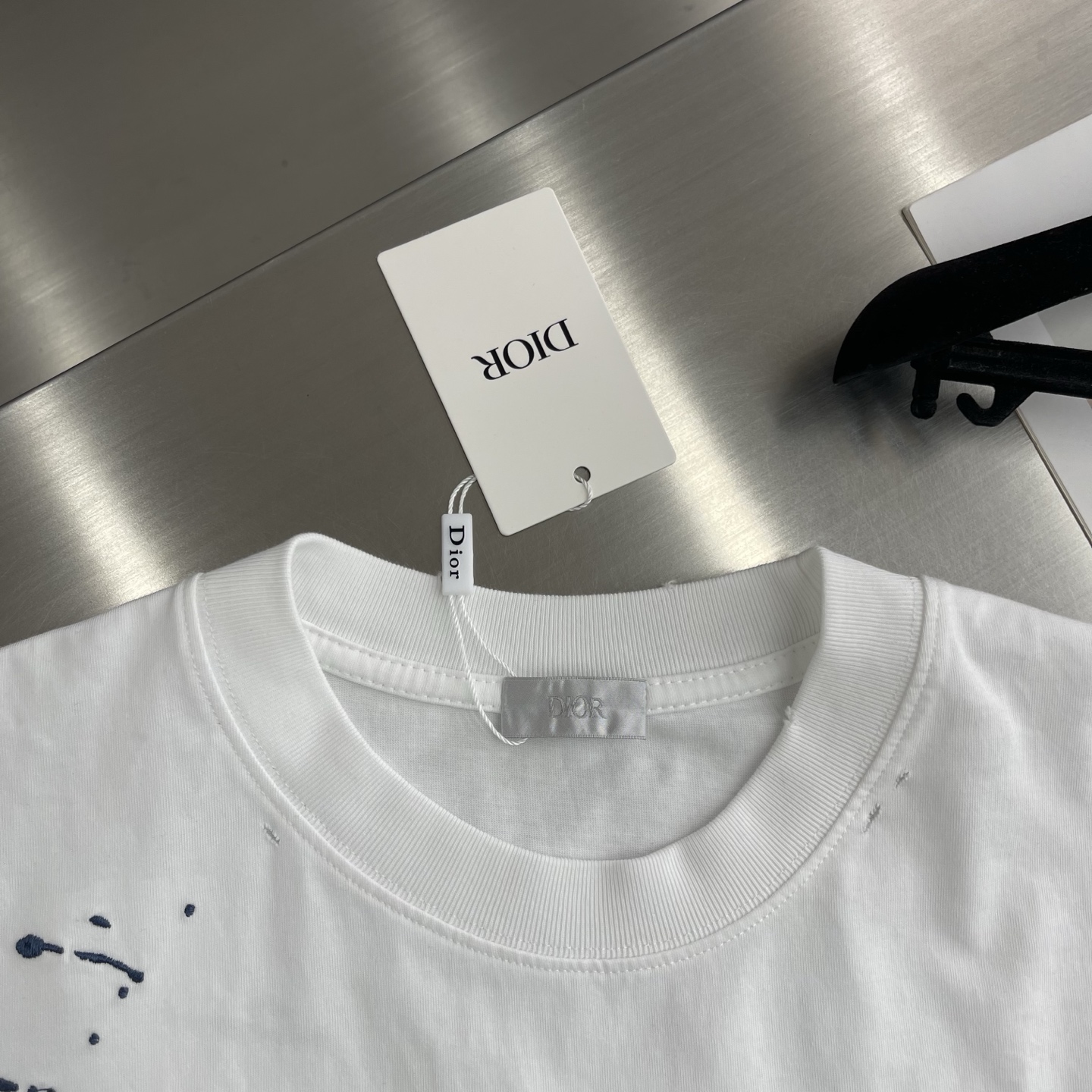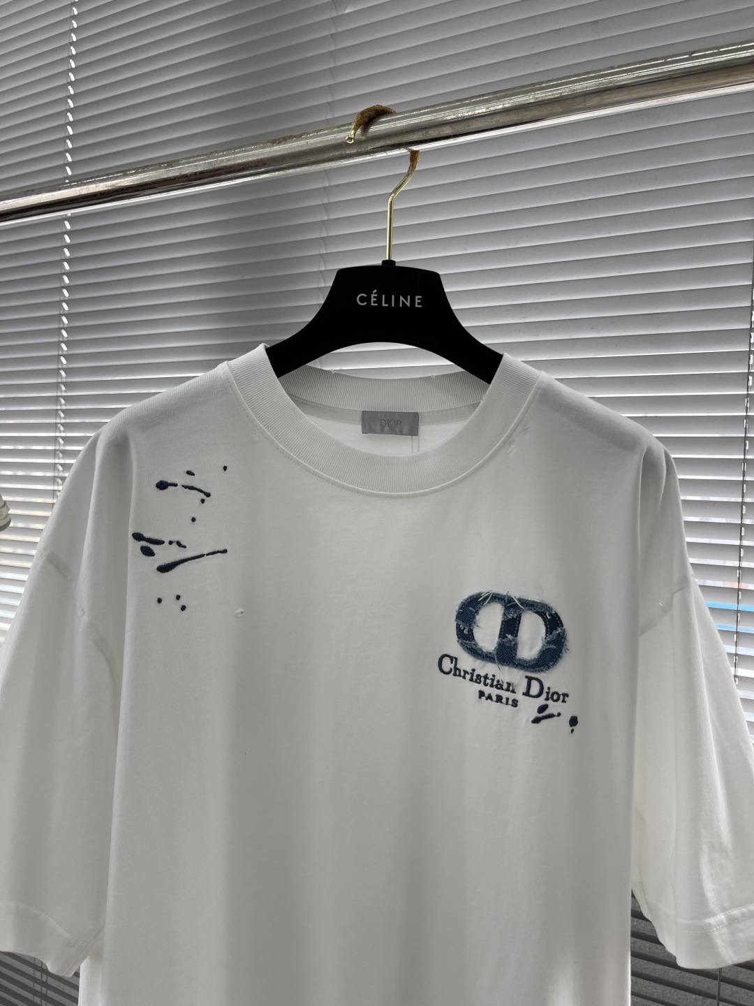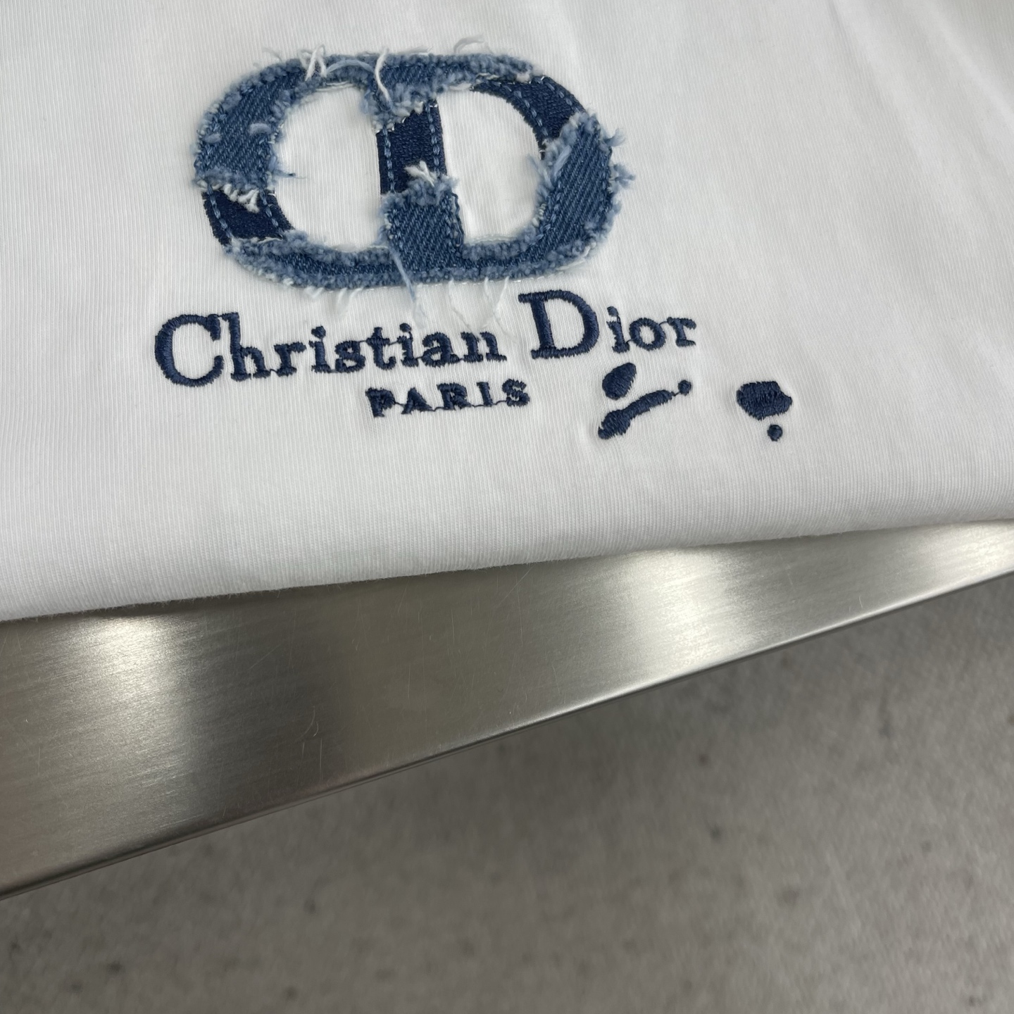 Dior 2025 Spring White Cotton Short Sleeve T-Shirt with Embroidered Logo