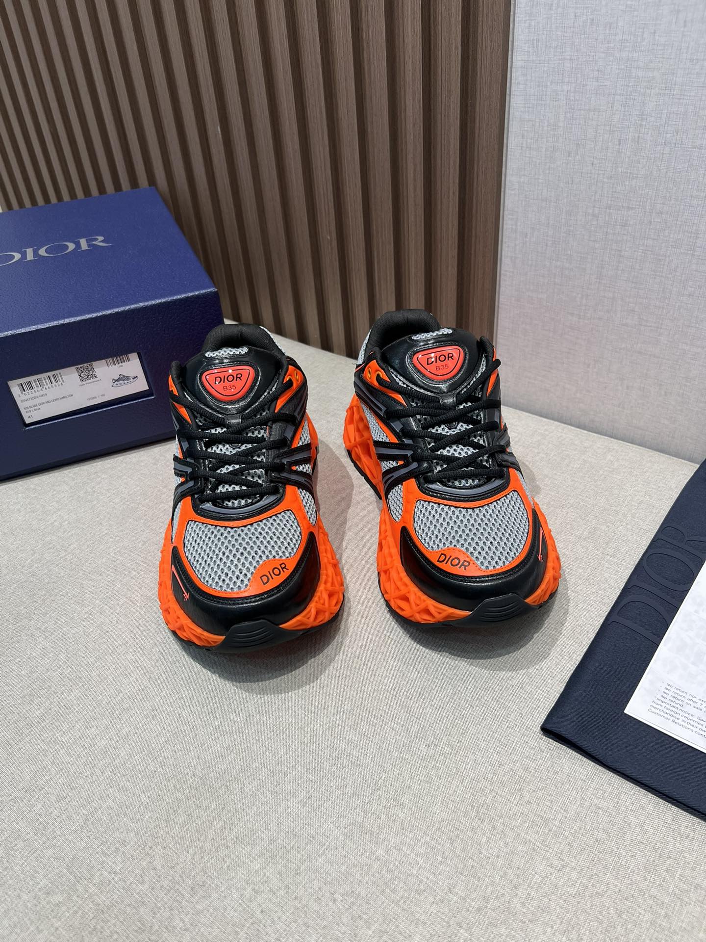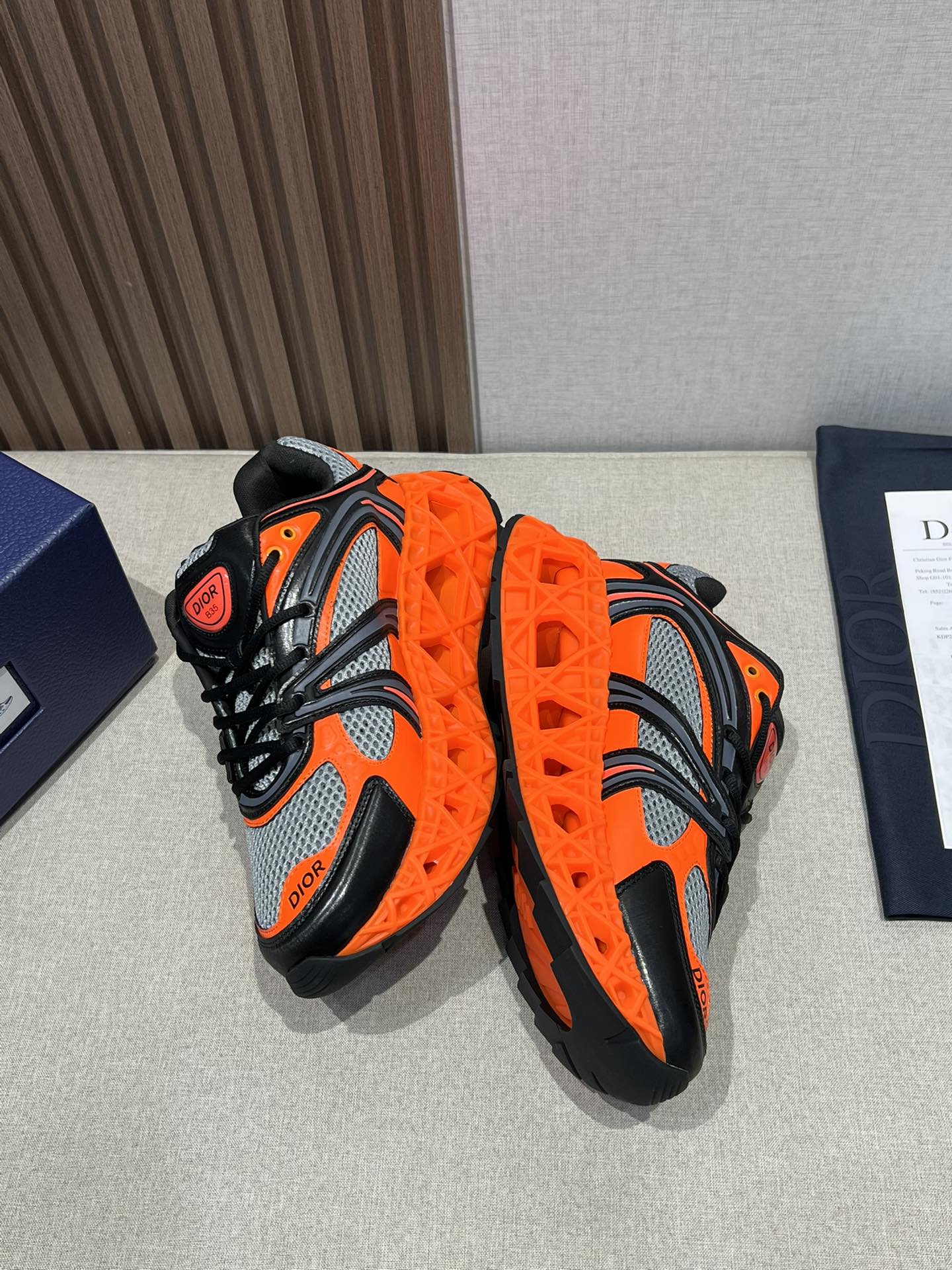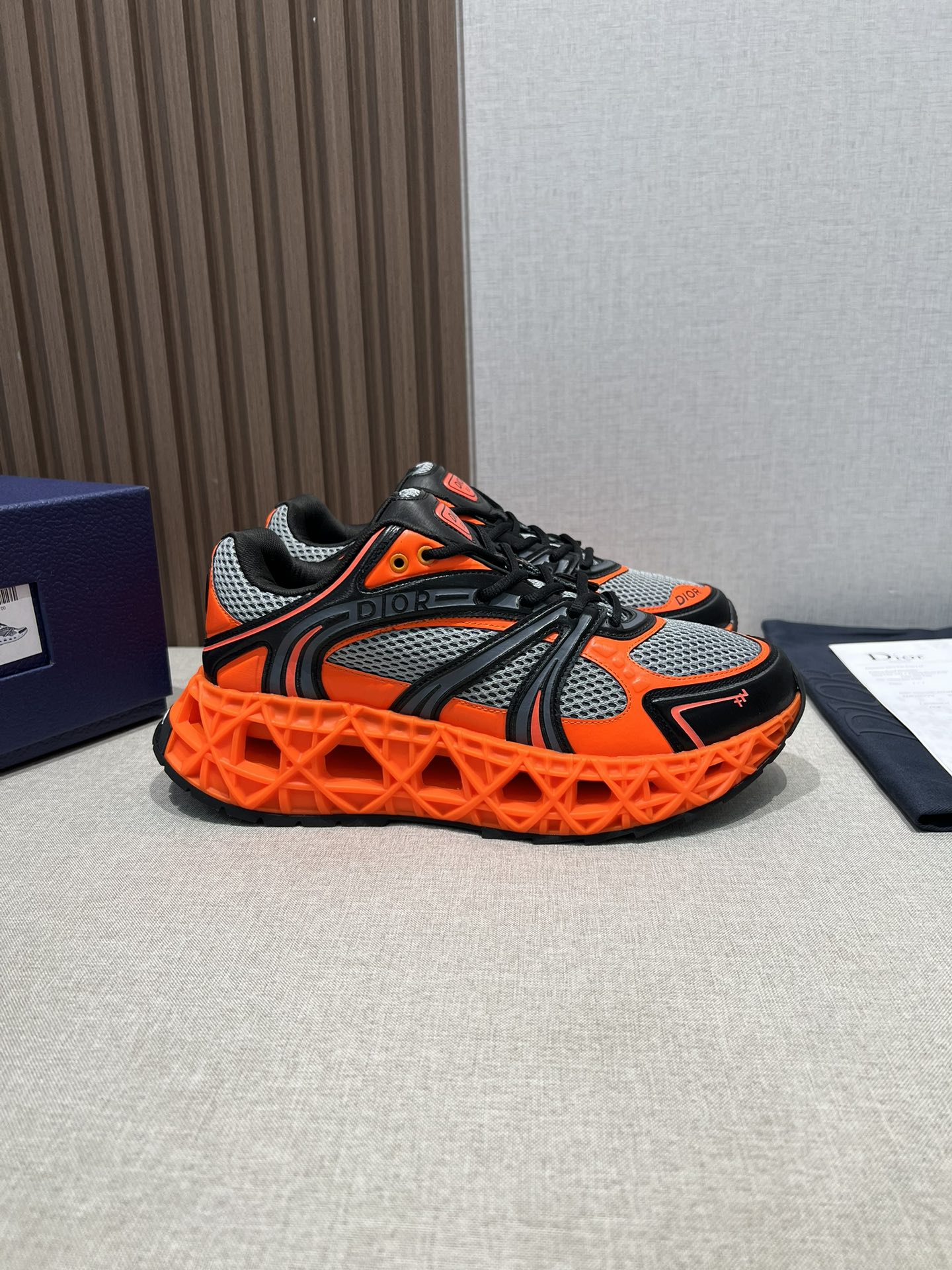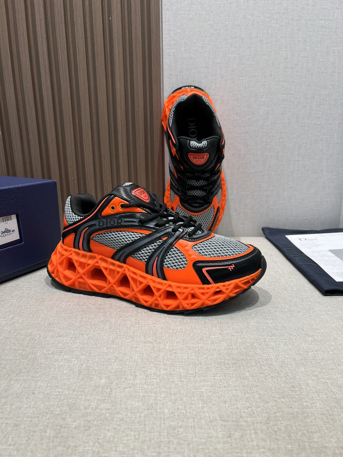 The craftsmanship on these sneakers is impeccable. You can tell that Dior pays attention to every detail. Plus, the orange and black color combo is so eye-catching!