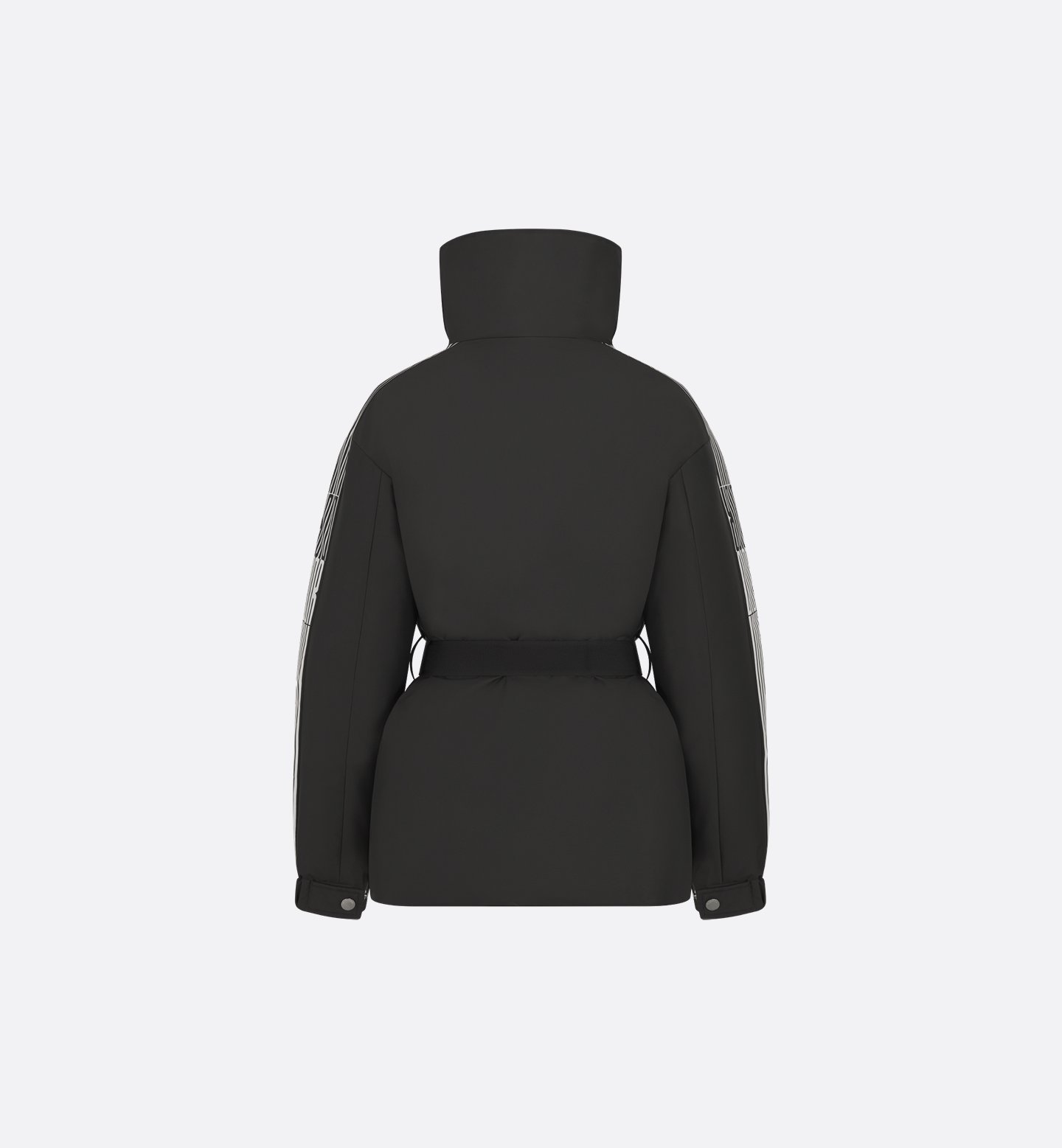Dior Black Down Jacket With Logo Stripe, High Collar, and Adjustable Belt