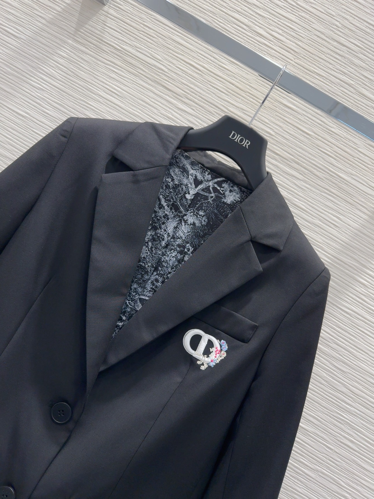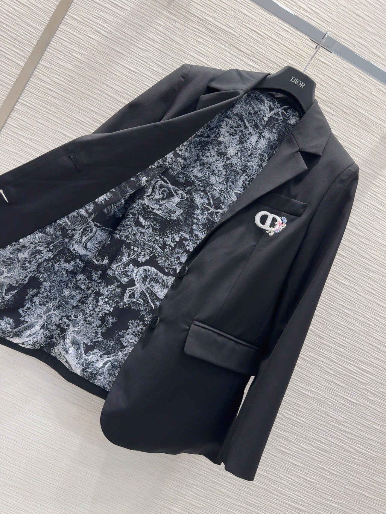 This blazer is a game-changer! It's so versatile and can be dressed up or down. The fabric is amazing, and the construction is top-notch. I love the subtle Dior logo – it adds just the right amount of sophistication. I can't wait to wear it to my next business meeting. It fits perfectly and is incredibly comfortable, making it a great addition to my wardrobe. I highly recommend this blazer!