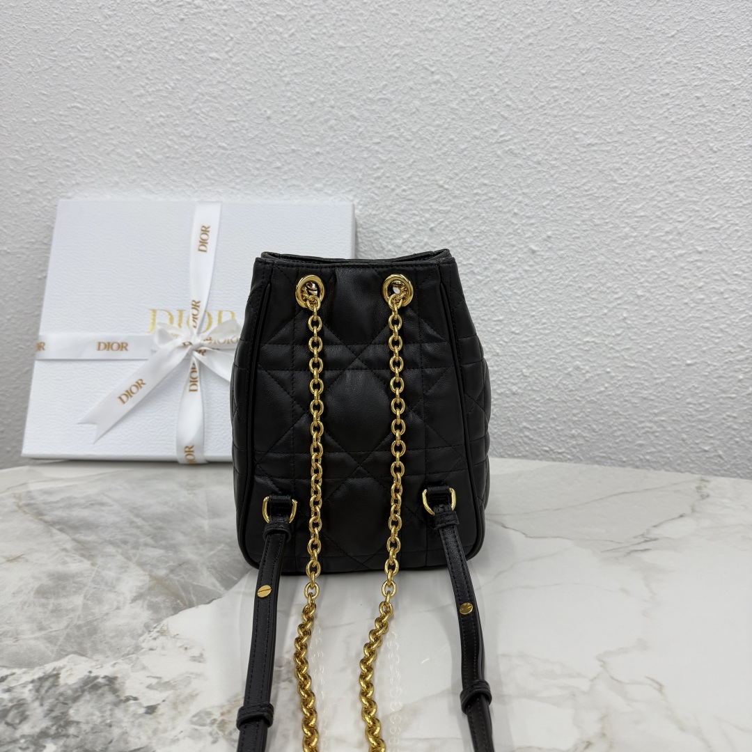 Dior Caro Mini Multicarry Backpack Black Leather with Gold Chain Detail