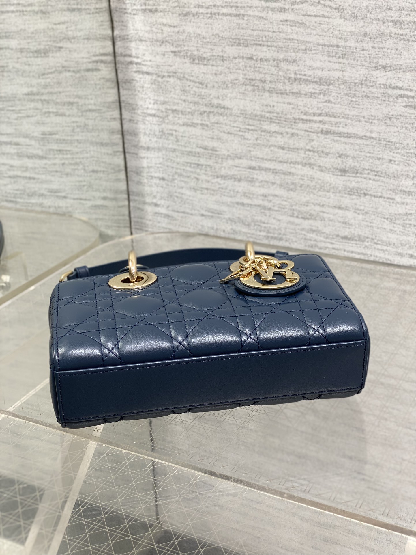 - Navy lambskin with Cannage stitching