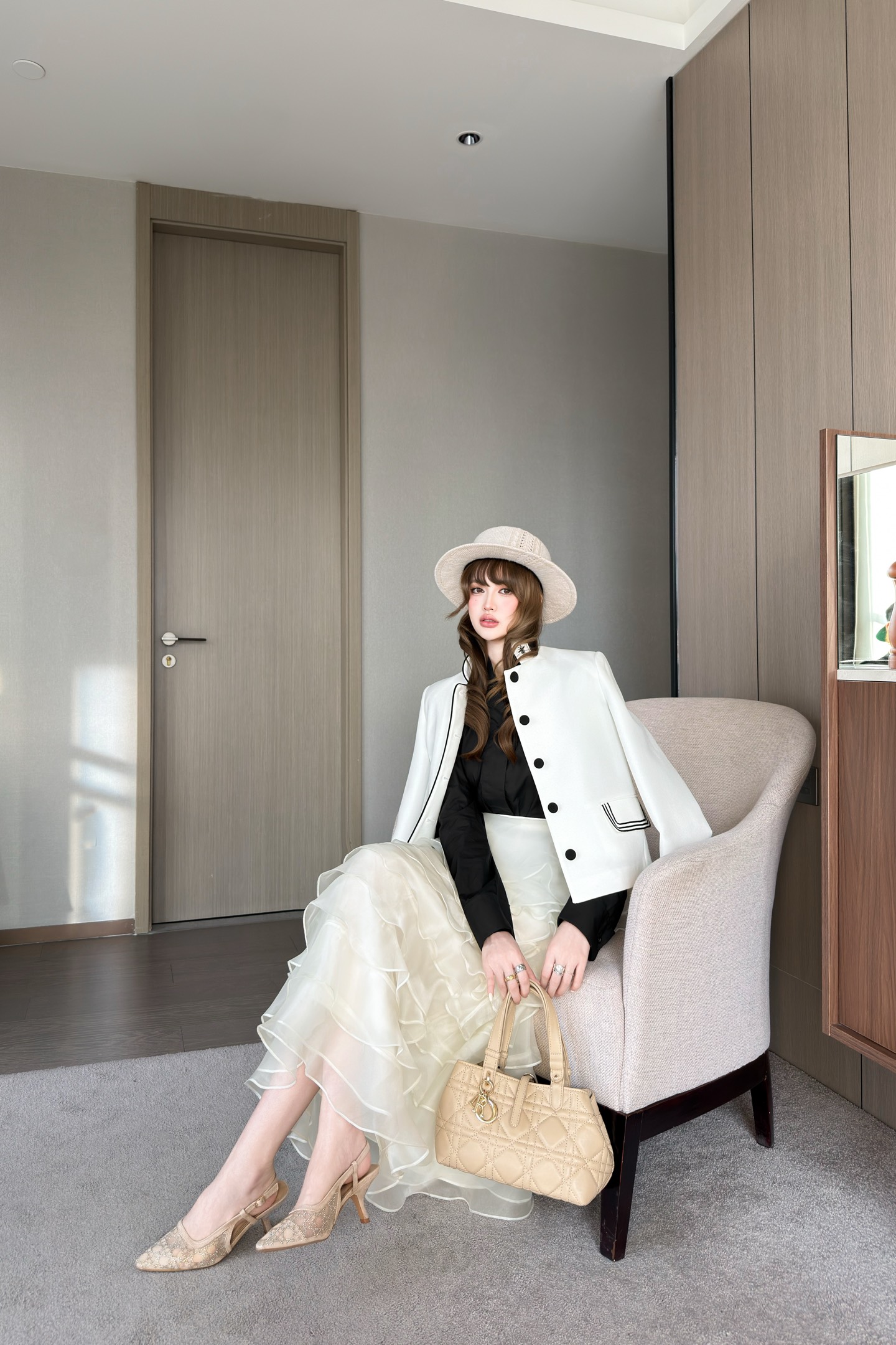 This Dior-inspired high-waisted tiered maxi skirt combines elegance with a touch of playfulness. Designed to flatter, this skirt will become a staple in your wardrobe.