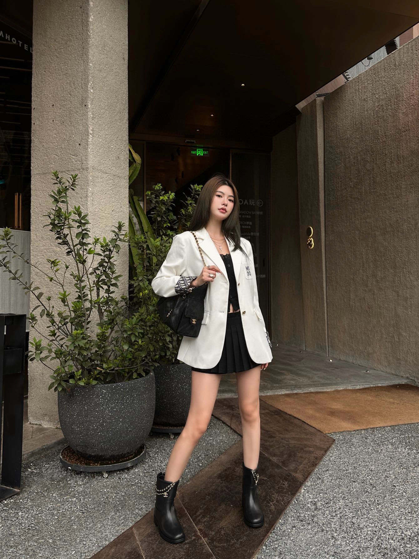 Tags: Chic Outerwear, Designer Inspired Blazer, Elegant White Jacket, Fashion Forward Blazer, High Quality Blazer, White Blazer