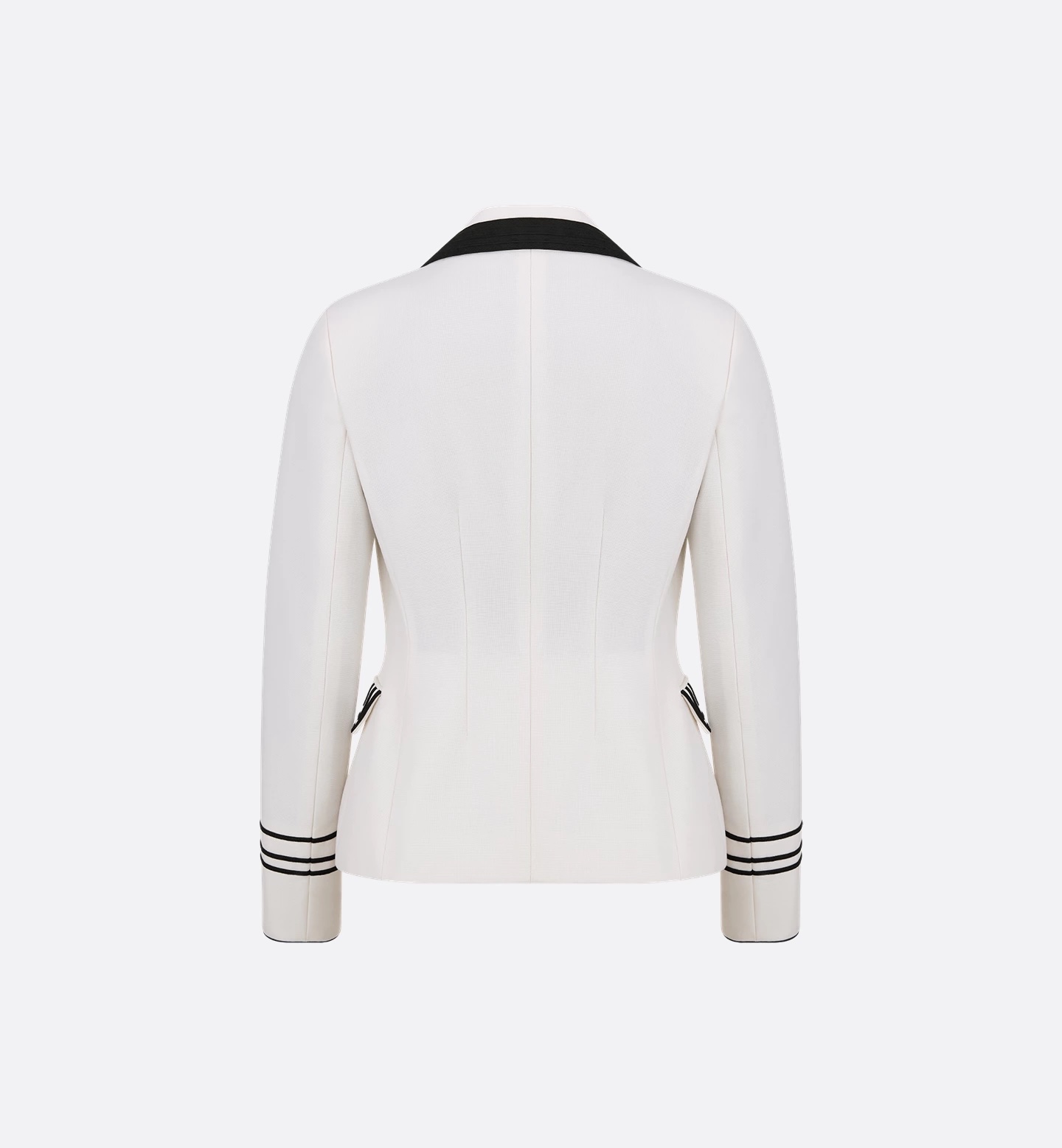 Dior-Inspired White Blazer with Navy Accents - French Retro Style