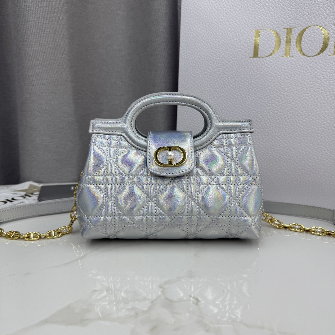 Dior Jolie Silver Lambskin Top Handle Mini Chain Bag with CD Signature