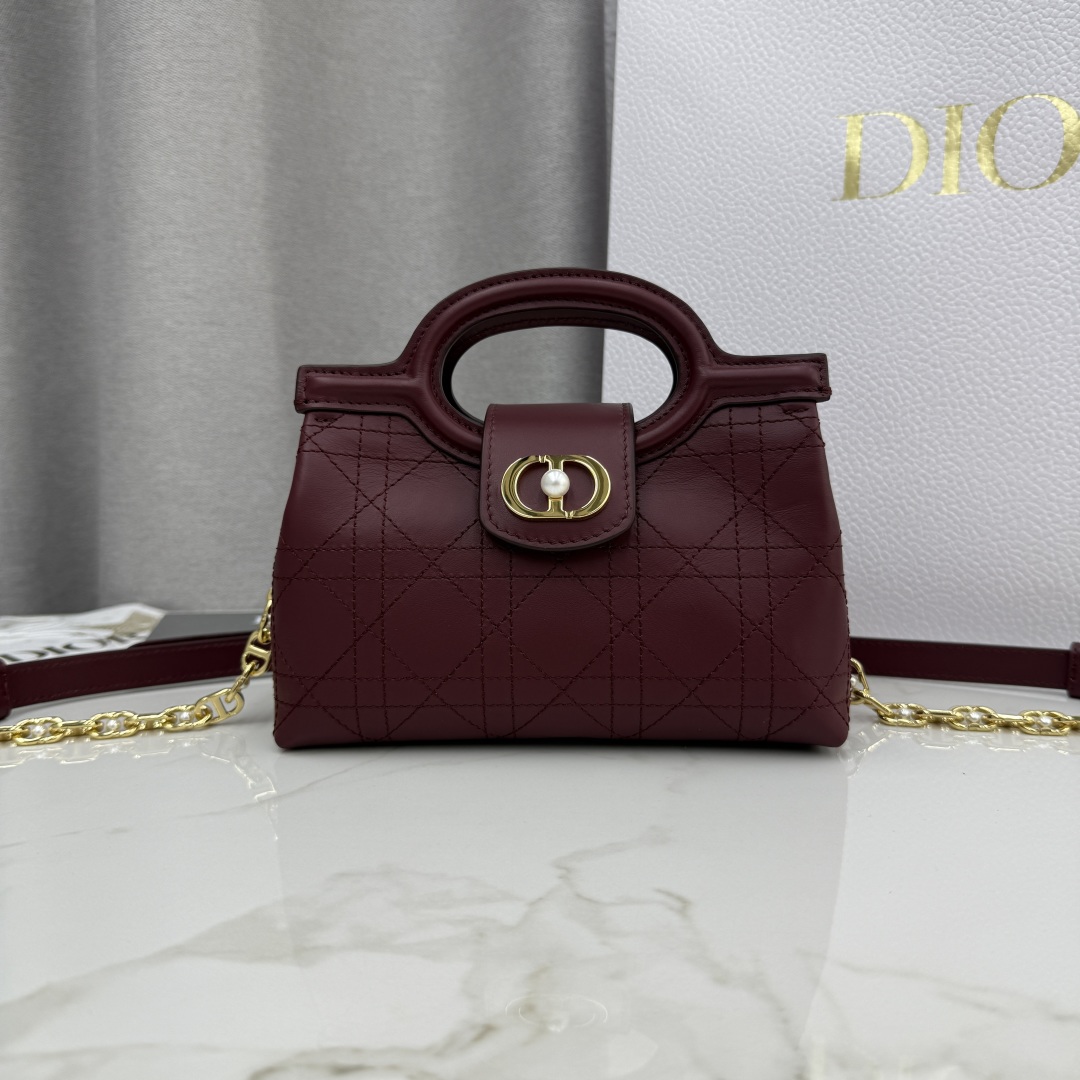 Dior Jolie Top Handle Mini Chain Bag Lambskin Burgundy with CD Signature