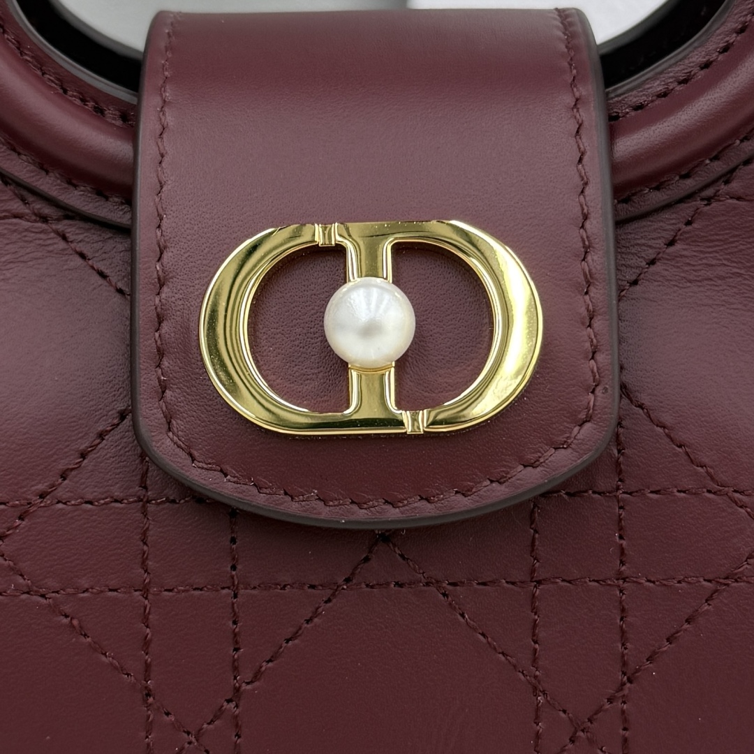 Tags: Burgundy Lambskin Bag, CD Signature Bag, Chain Strap Bag, Dior mini bag, Pearl Embellished Bag, Top Handle Bag