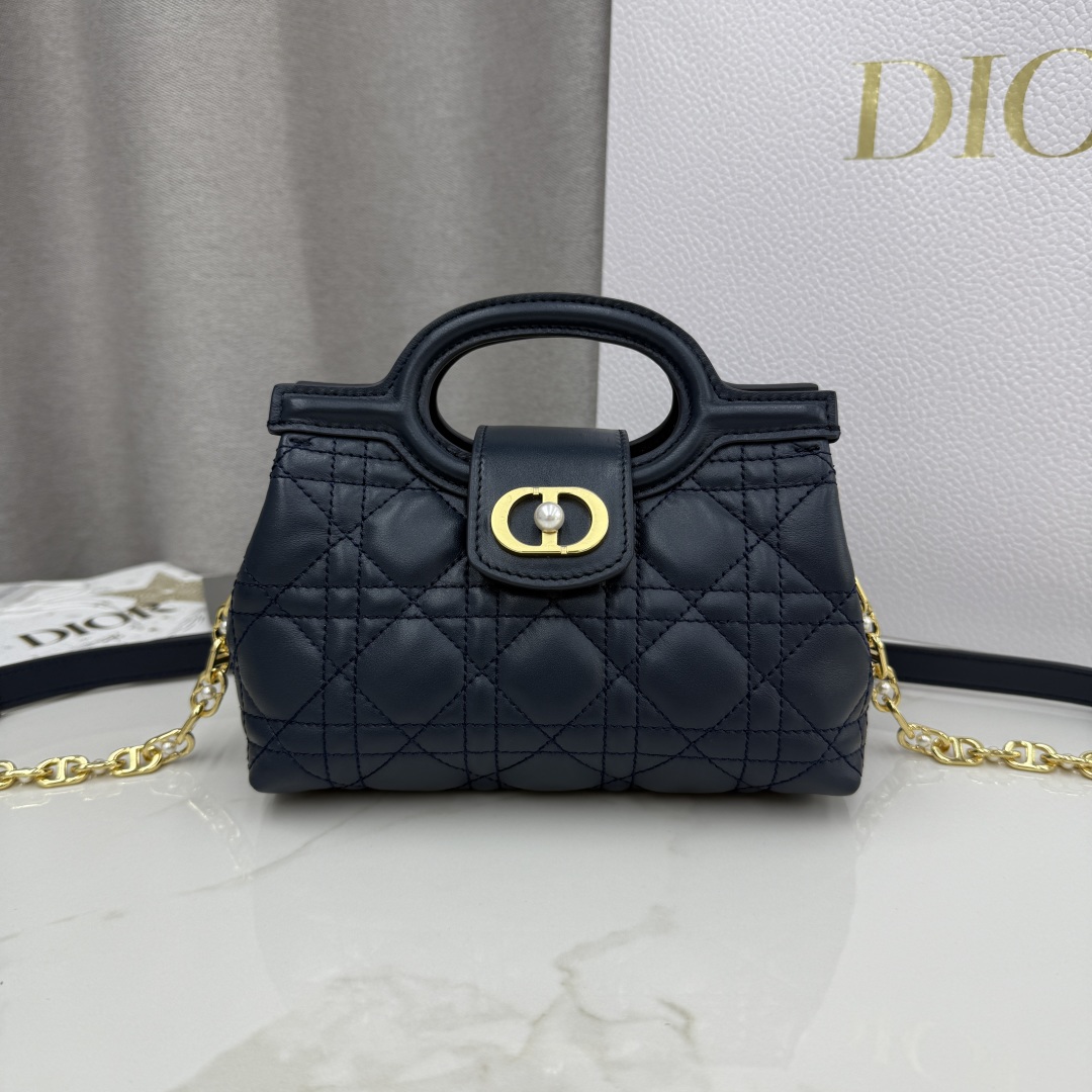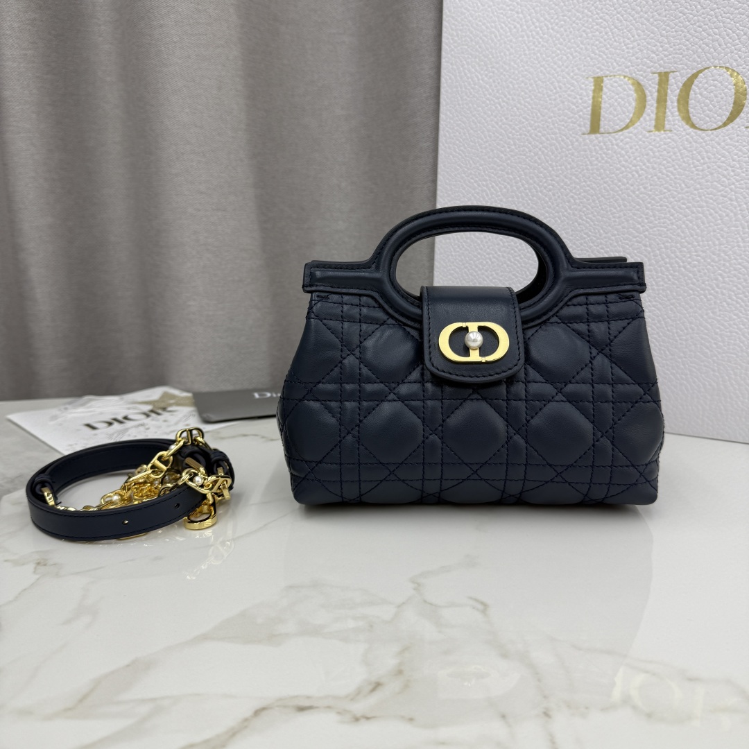 Tags: Designer Top Handle Bag, Dior Jolie Top Handle Bag, Mini Chain Bag Lambskin, Night Blue Dior Bag, Quilted Lambskin Bag