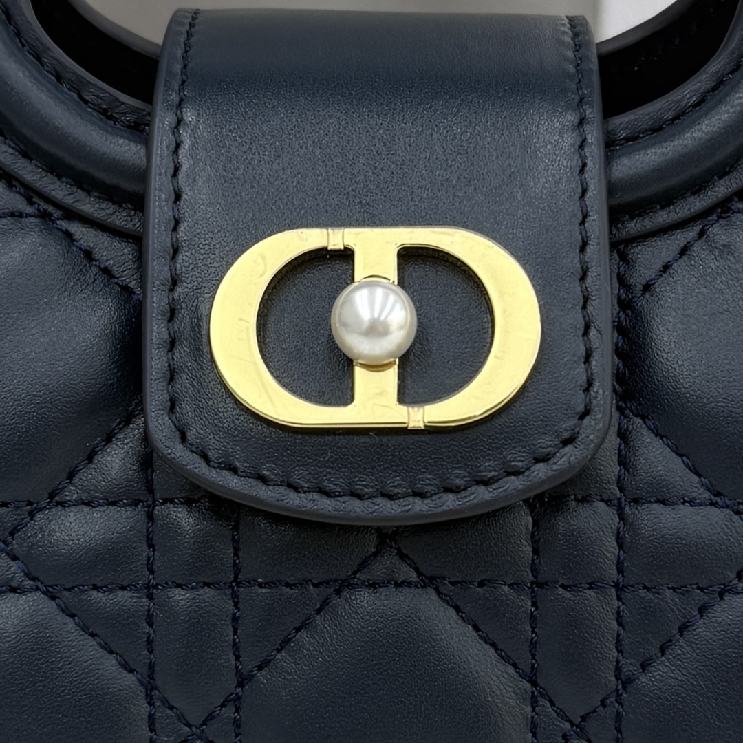 - Material: Night blue lambskin with iconic Cannage stitching.