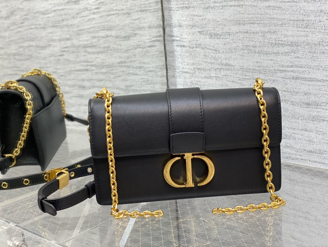 Dior Montaigne 30 Small Size Black Leather Shoulder Bag with Chain Strap