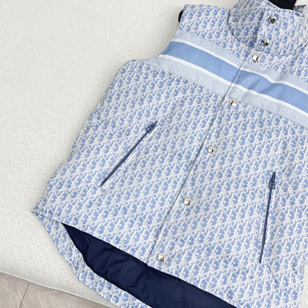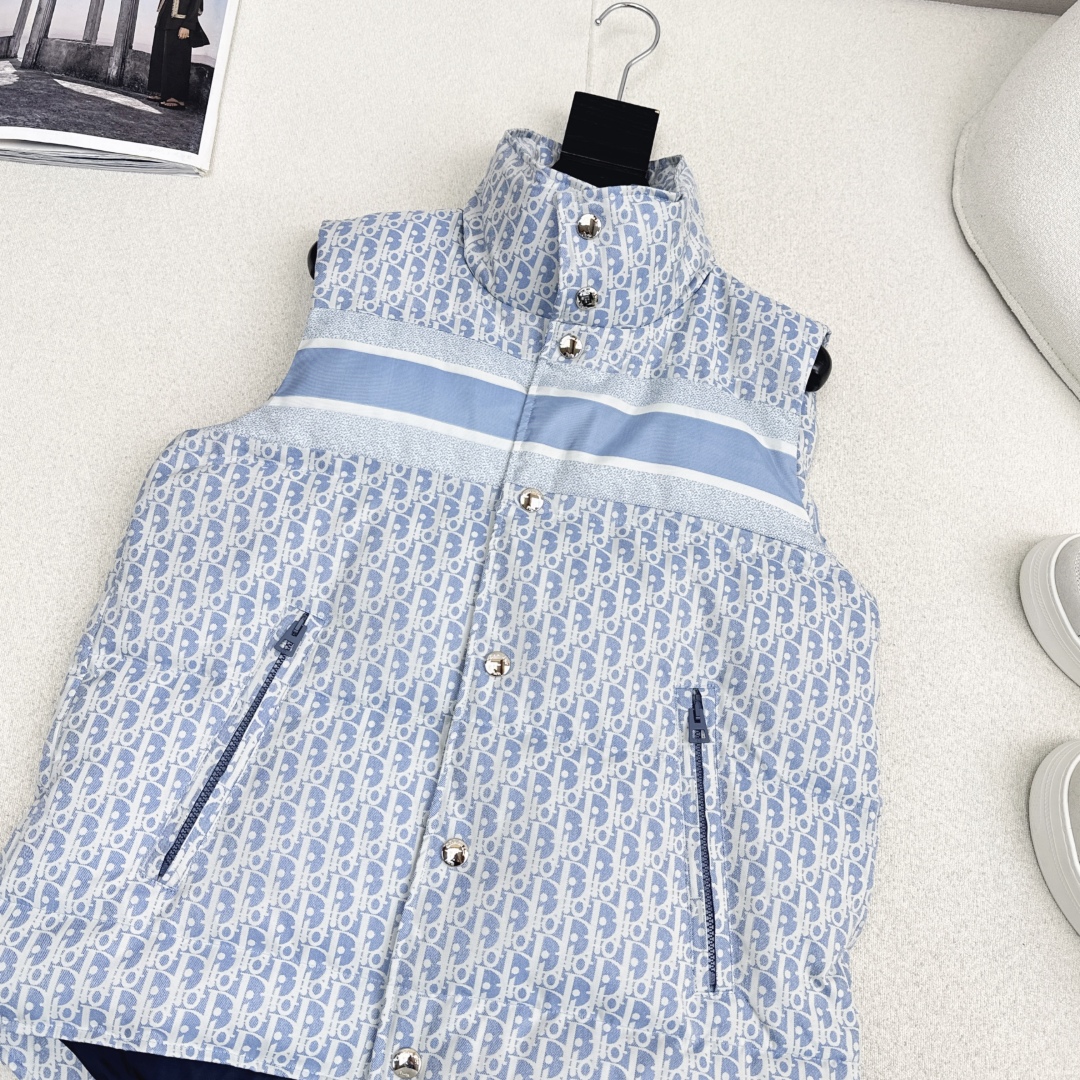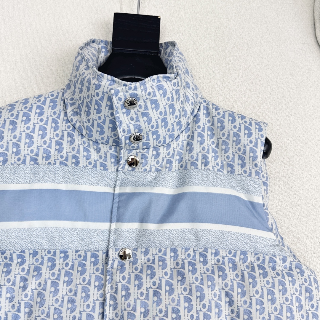 Dior Oblique Padded Vest, Stand Collar, Sleeveless, Front Zip Pockets