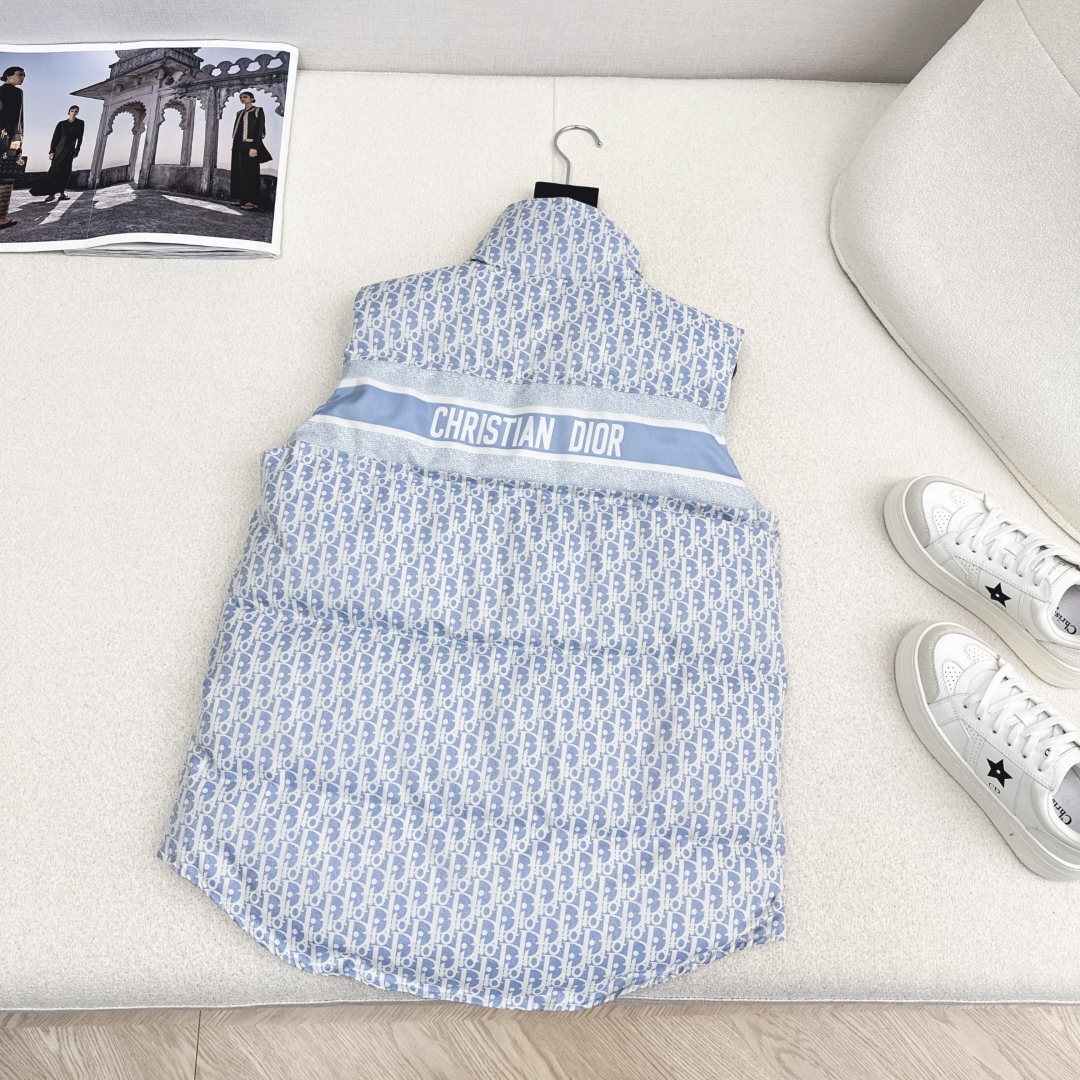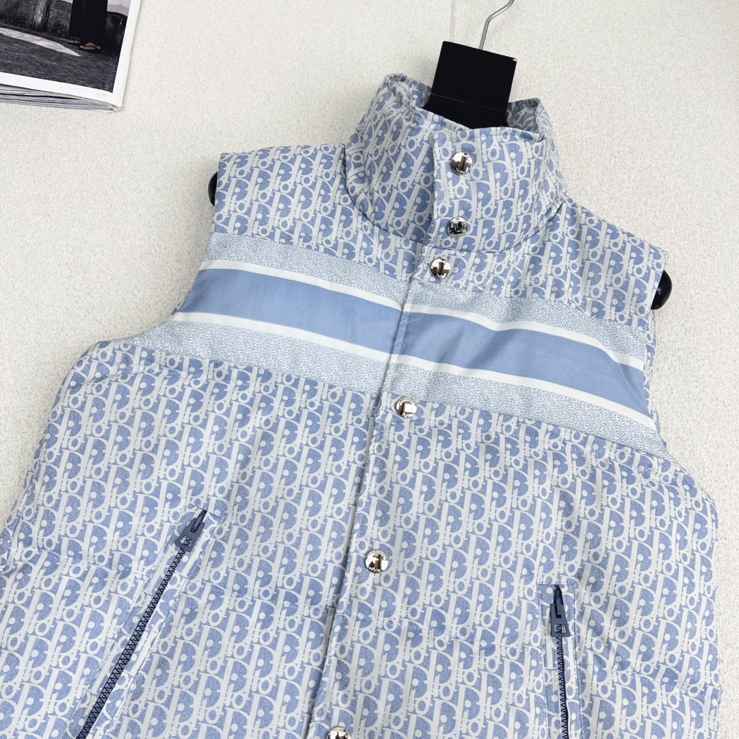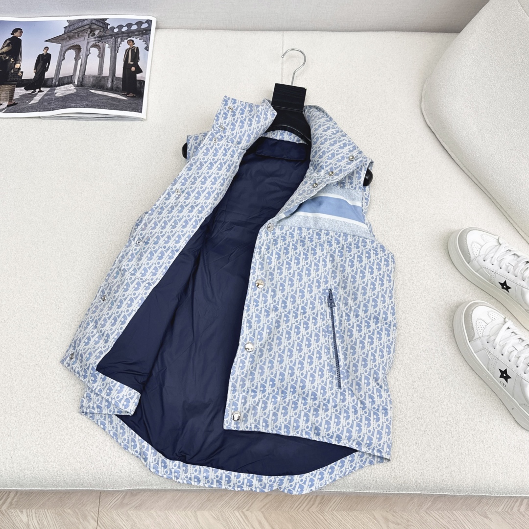 Dior Oblique Padded Vest, Stand Collar, Sleeveless, Front Zip Pockets