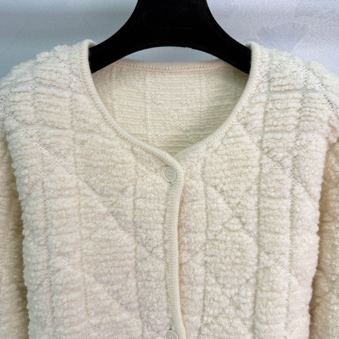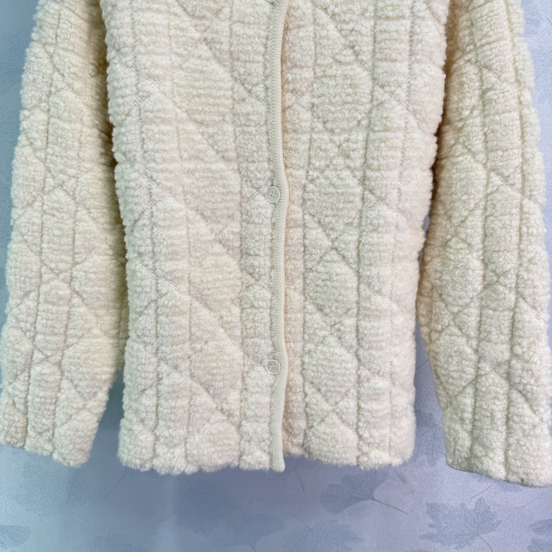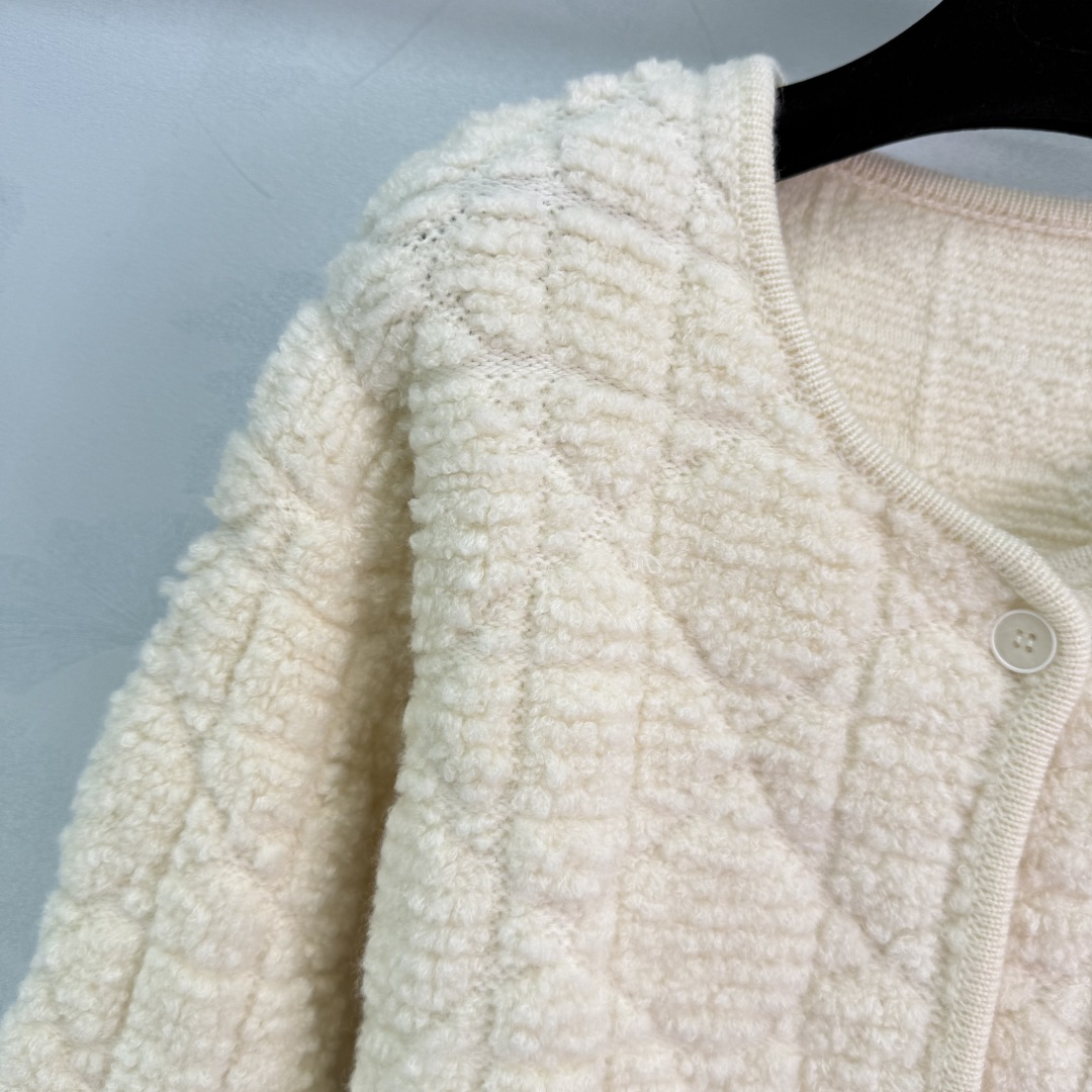 Dior Quilted Plush Cardigan, Off-White, Round Neck, Soft & Comfortable - Made in Italy