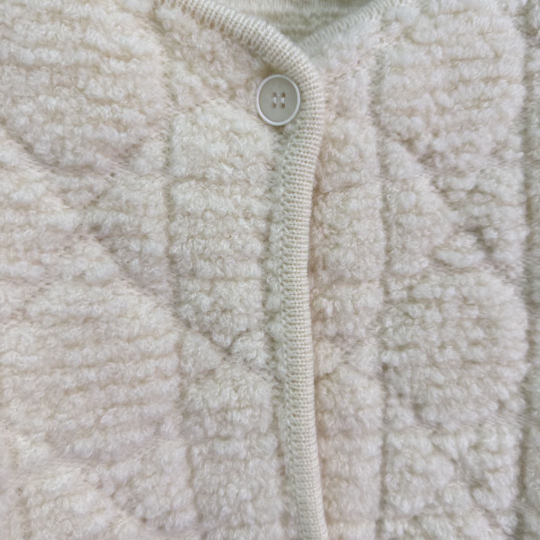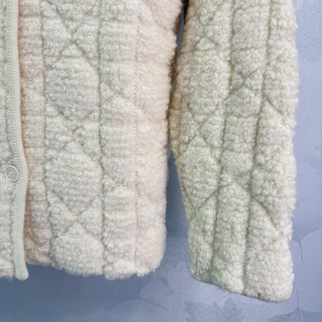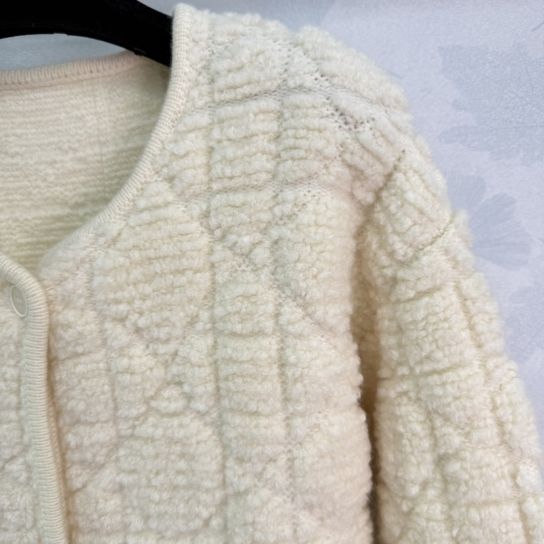 Dior Quilted Plush Cardigan, Off-White, Round Neck, Soft & Comfortable - Made in Italy