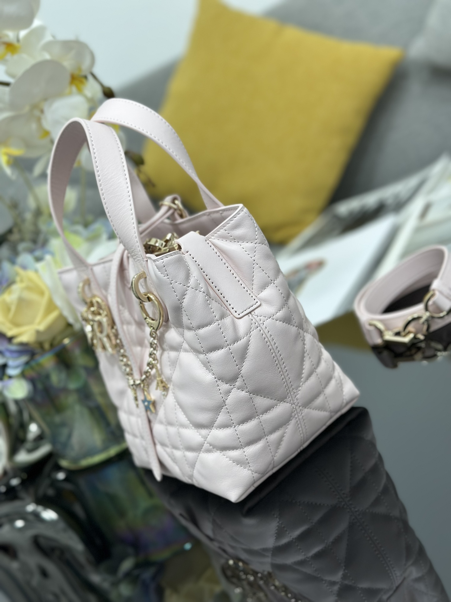 Tags: Cannage Stitching Bag, Dior Charm Bag, Dior Toujours bag, Luxury Leather Handbag, Small Dior Tote Bag, Vertical Tote Bag