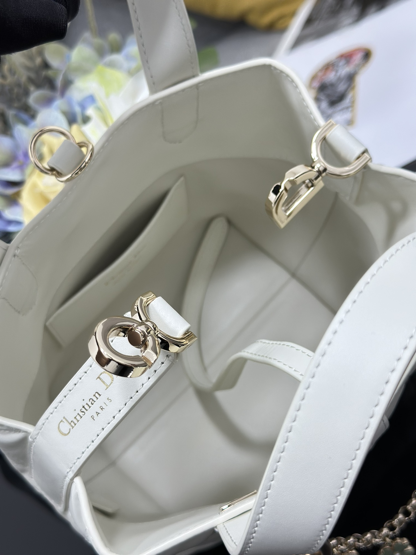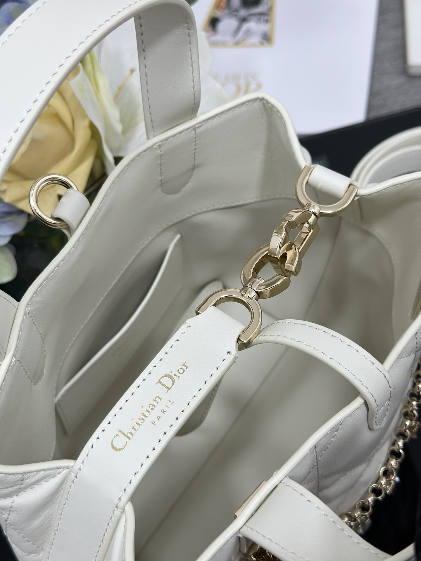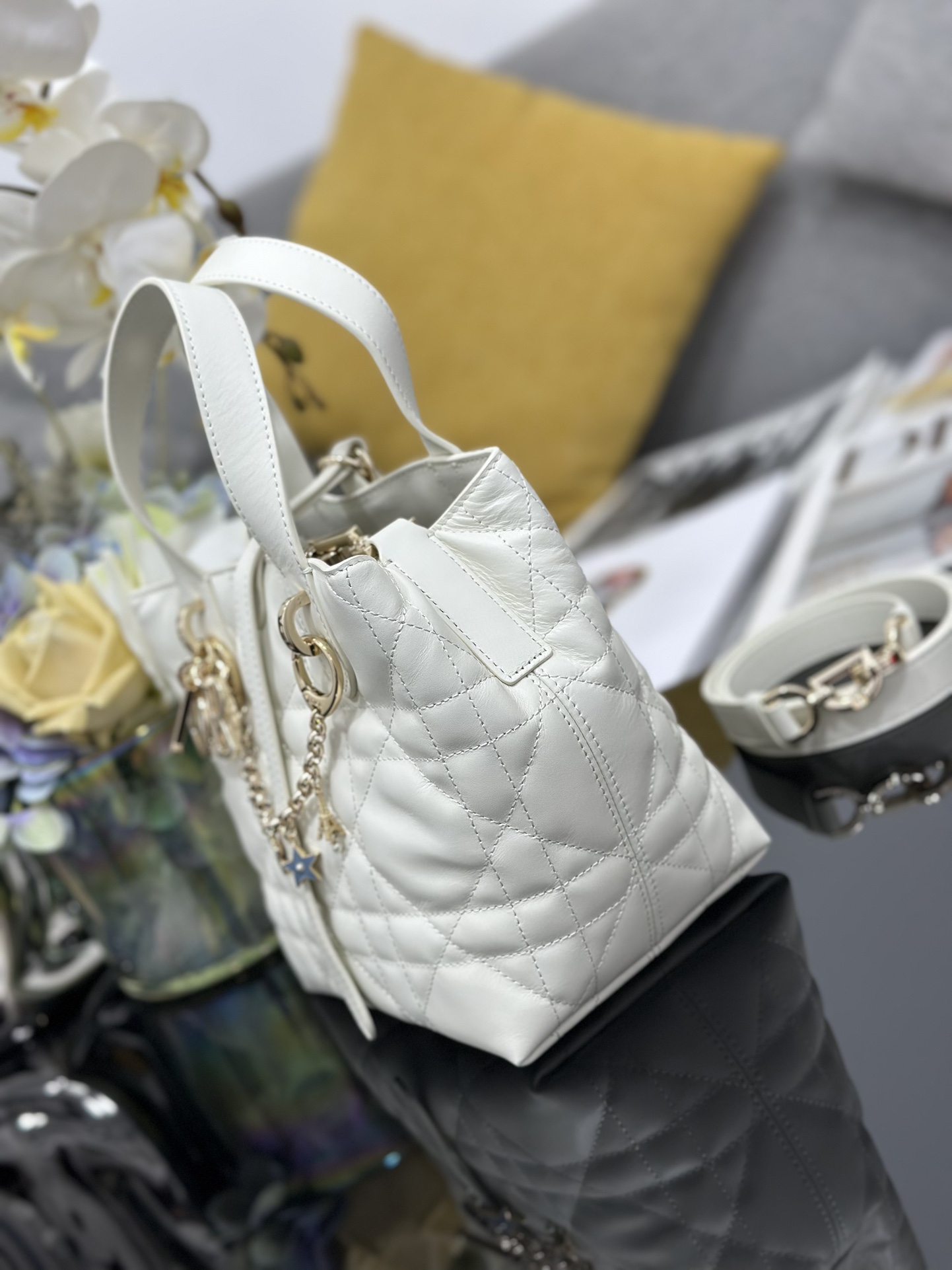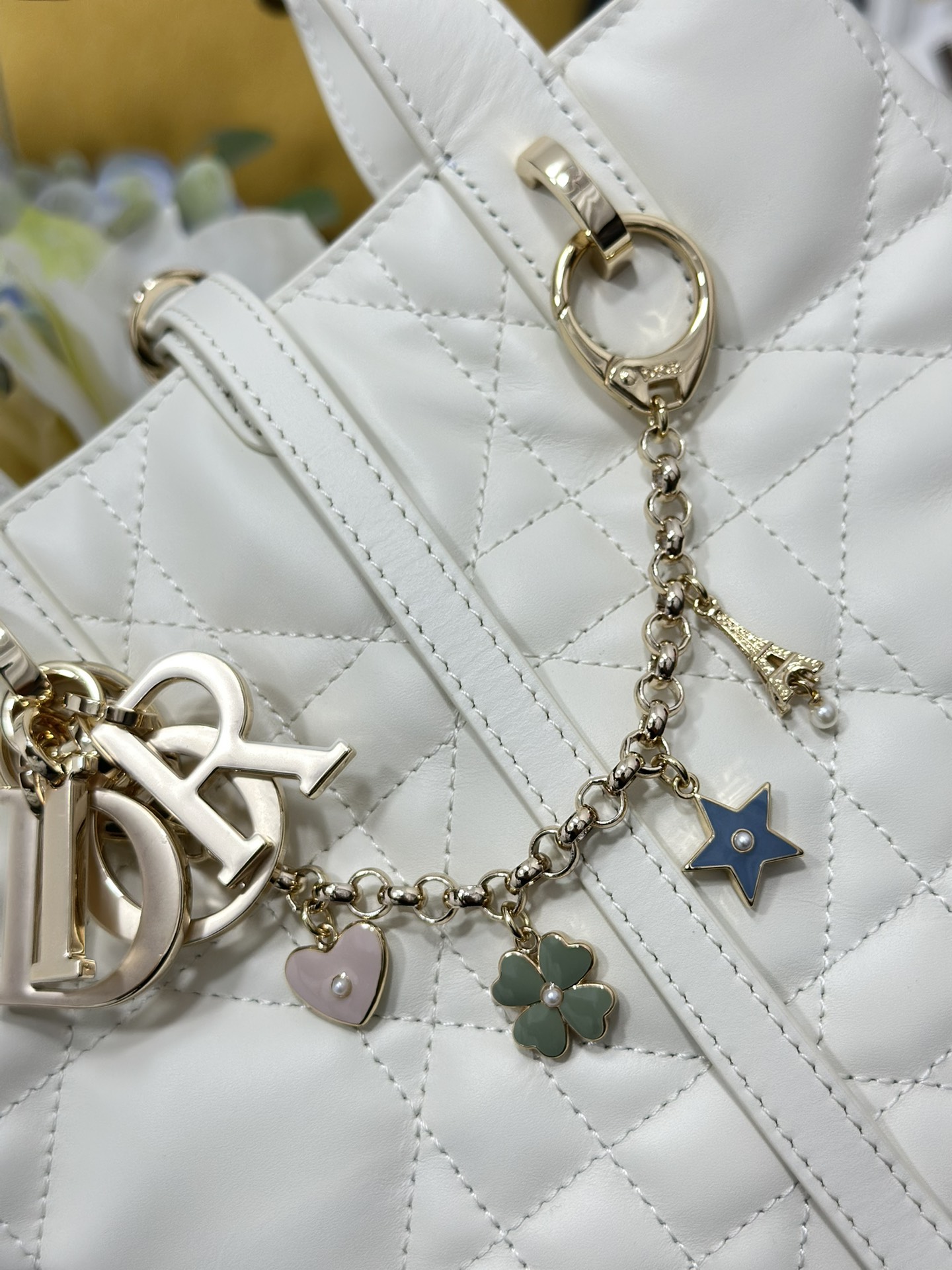 Dior Toujours Small Vertical Bag with Lucky Charms - White Leather