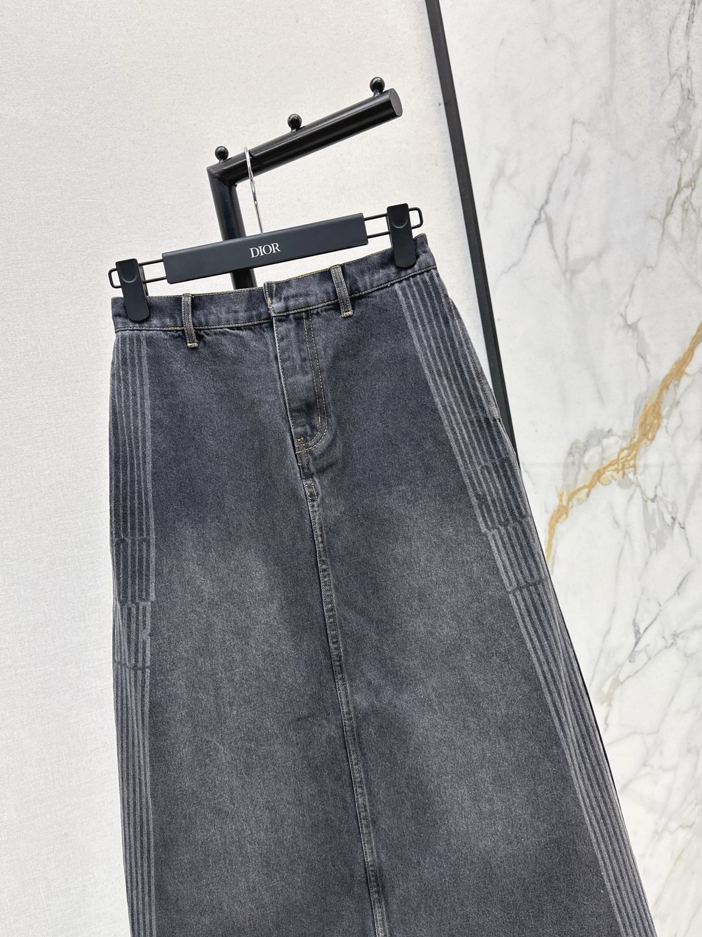 With its timeless design and modern details, this Dior denim midi skirt is sure to become a favorite in your closet.