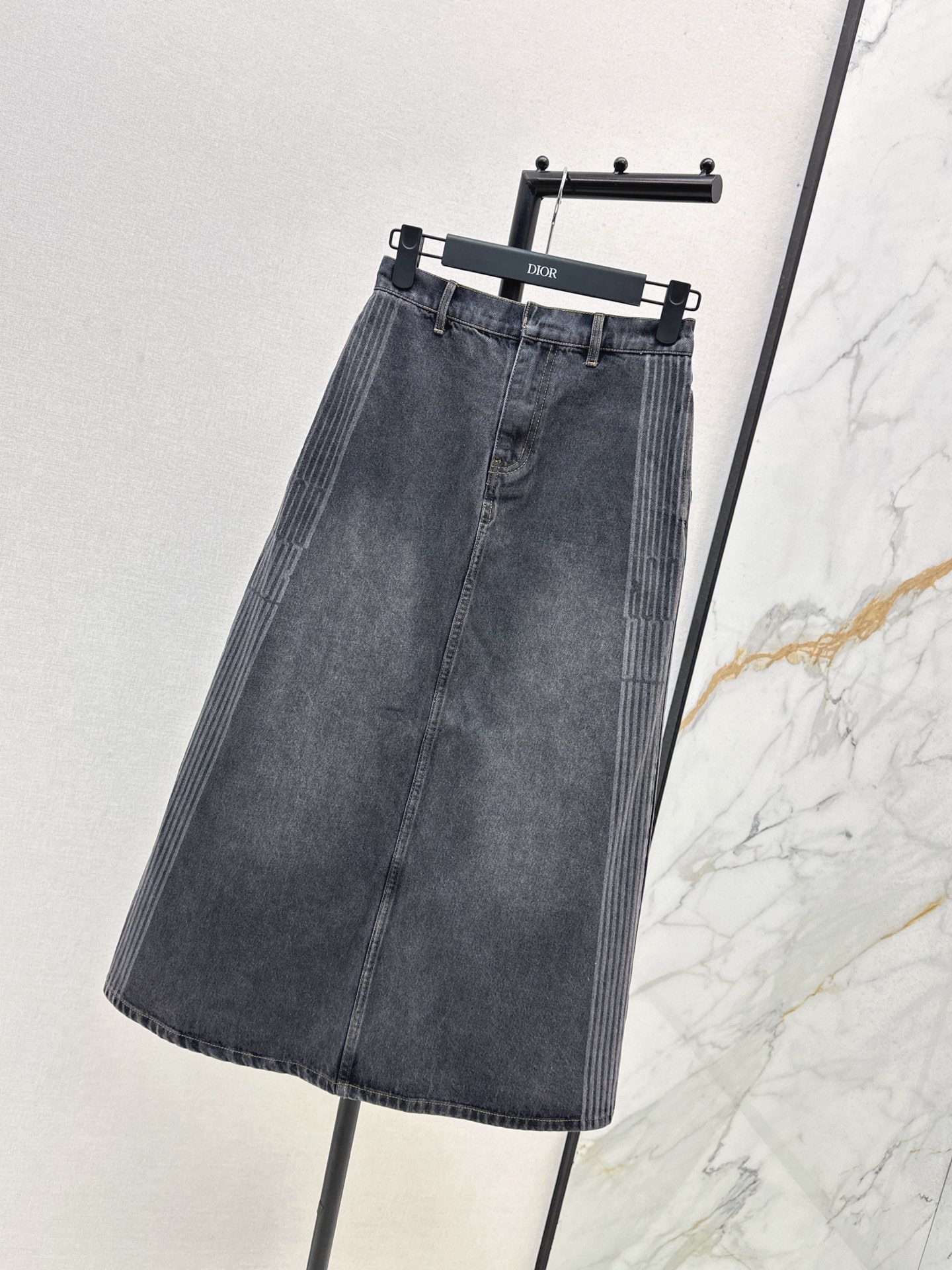 Dior Vintage Gray Denim Midi Skirt with Laser Letter Trim, Fall-Winter