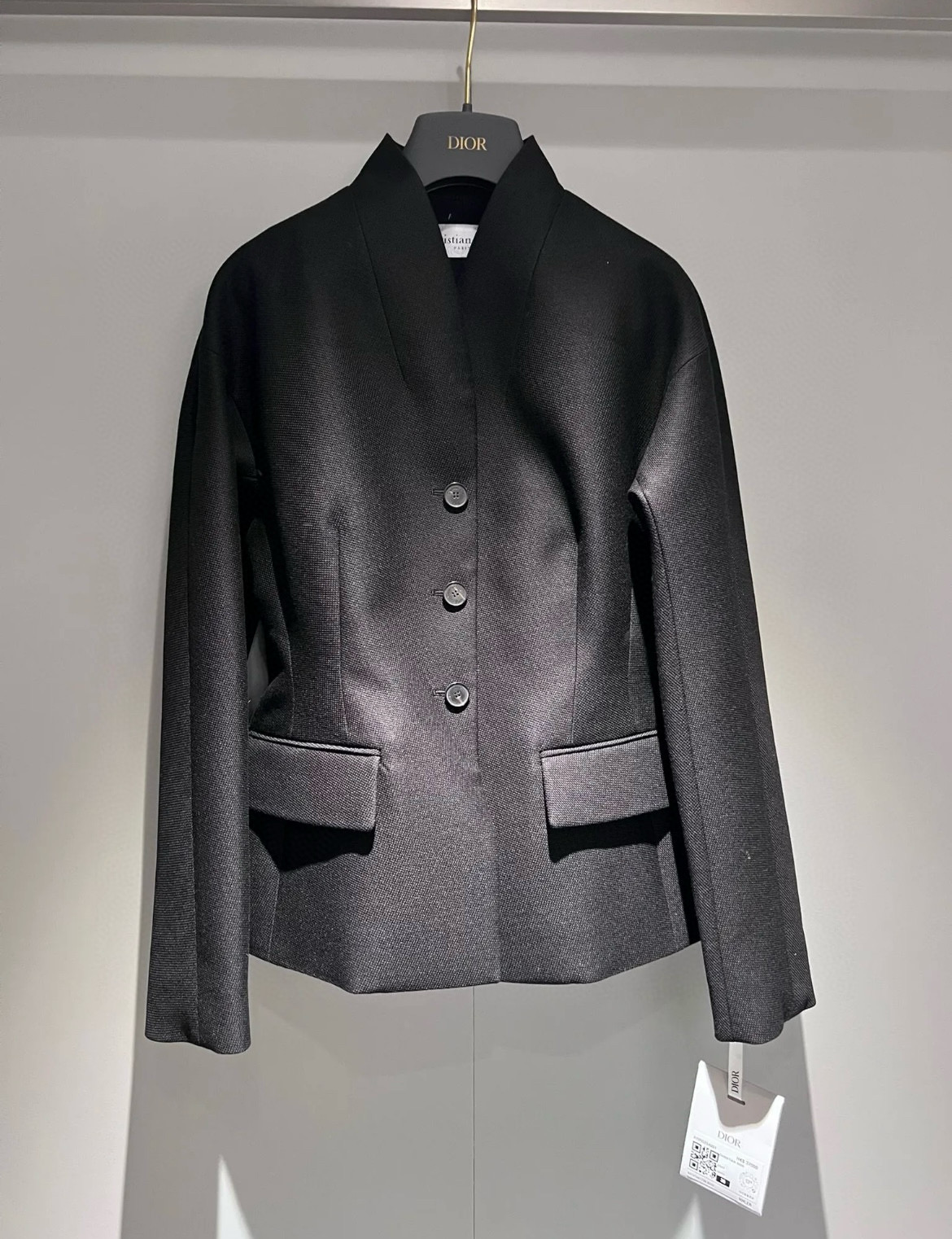 This Dior silk-wool jacket is the epitome of high fashion, offering a blend of classic tailoring and modern design.