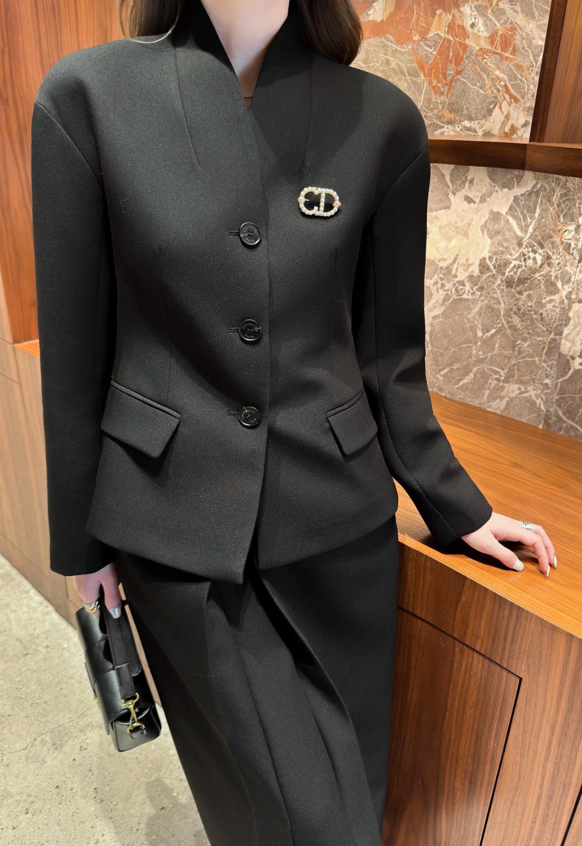Dior Women's Silk-Wool Black Suit Jacket - Elegant High Fashion Outerwear
