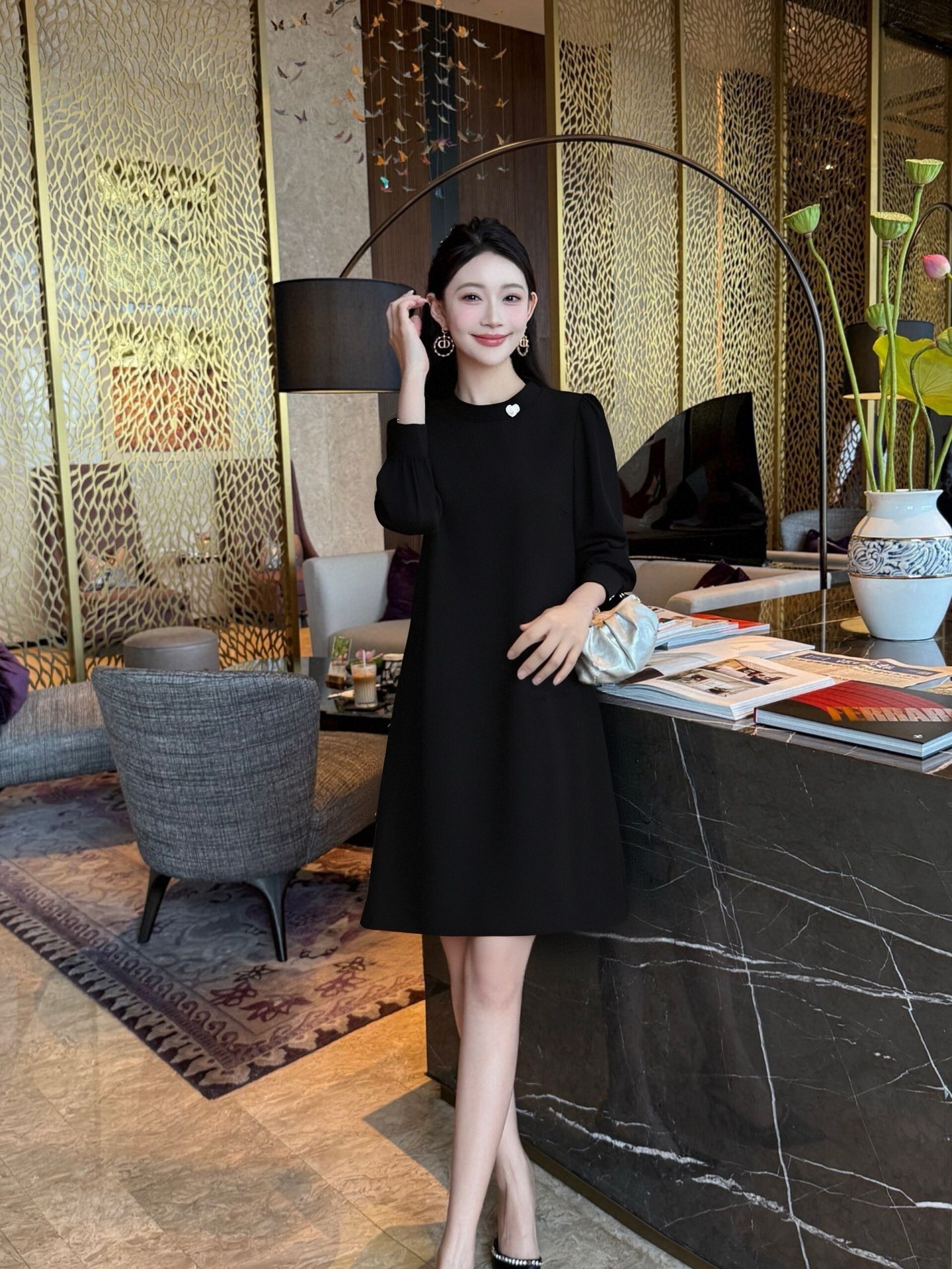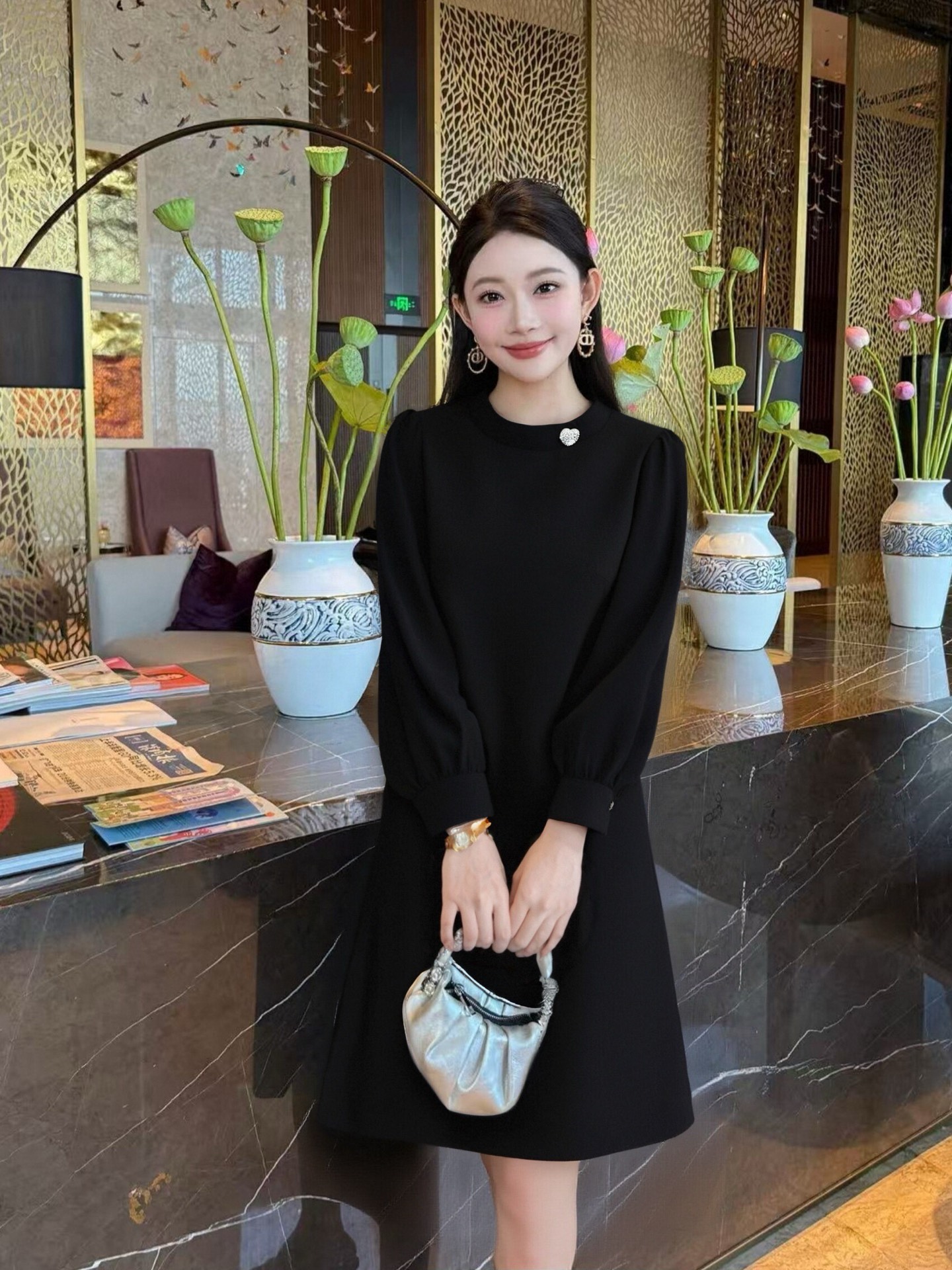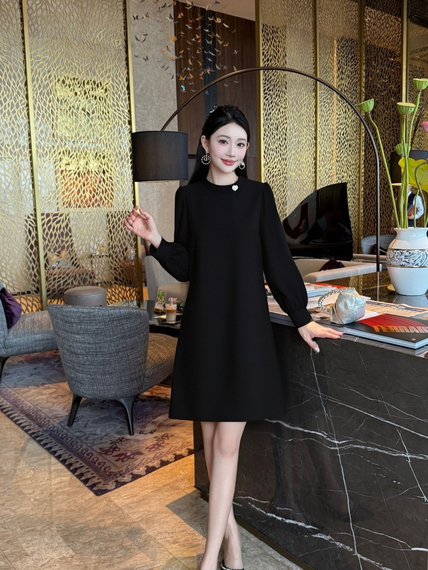 Elevate your wardrobe with this chic A-line dress. Featuring long sleeves, a decorative button, and a flattering silhouette, it's perfect for any occasion.