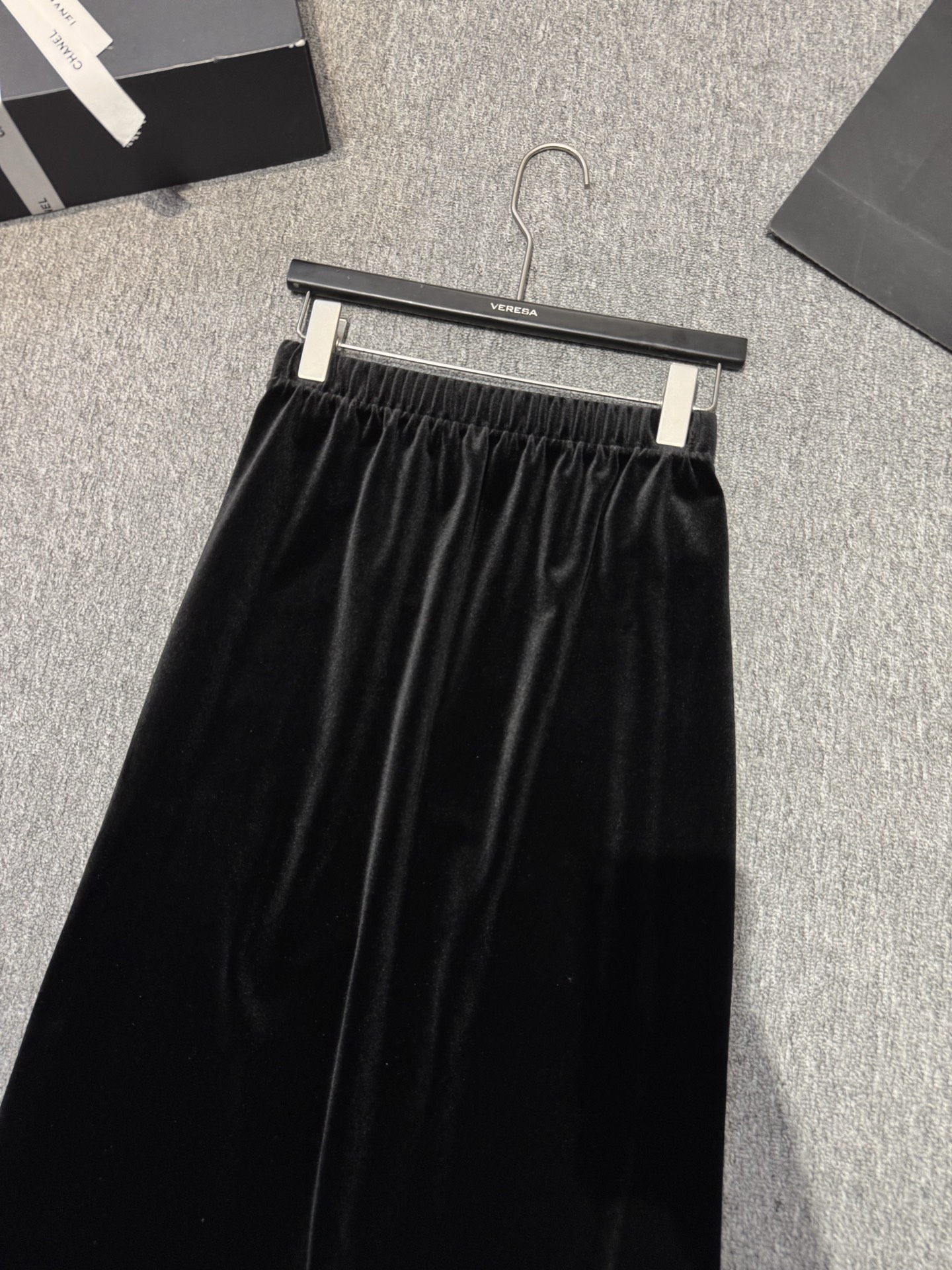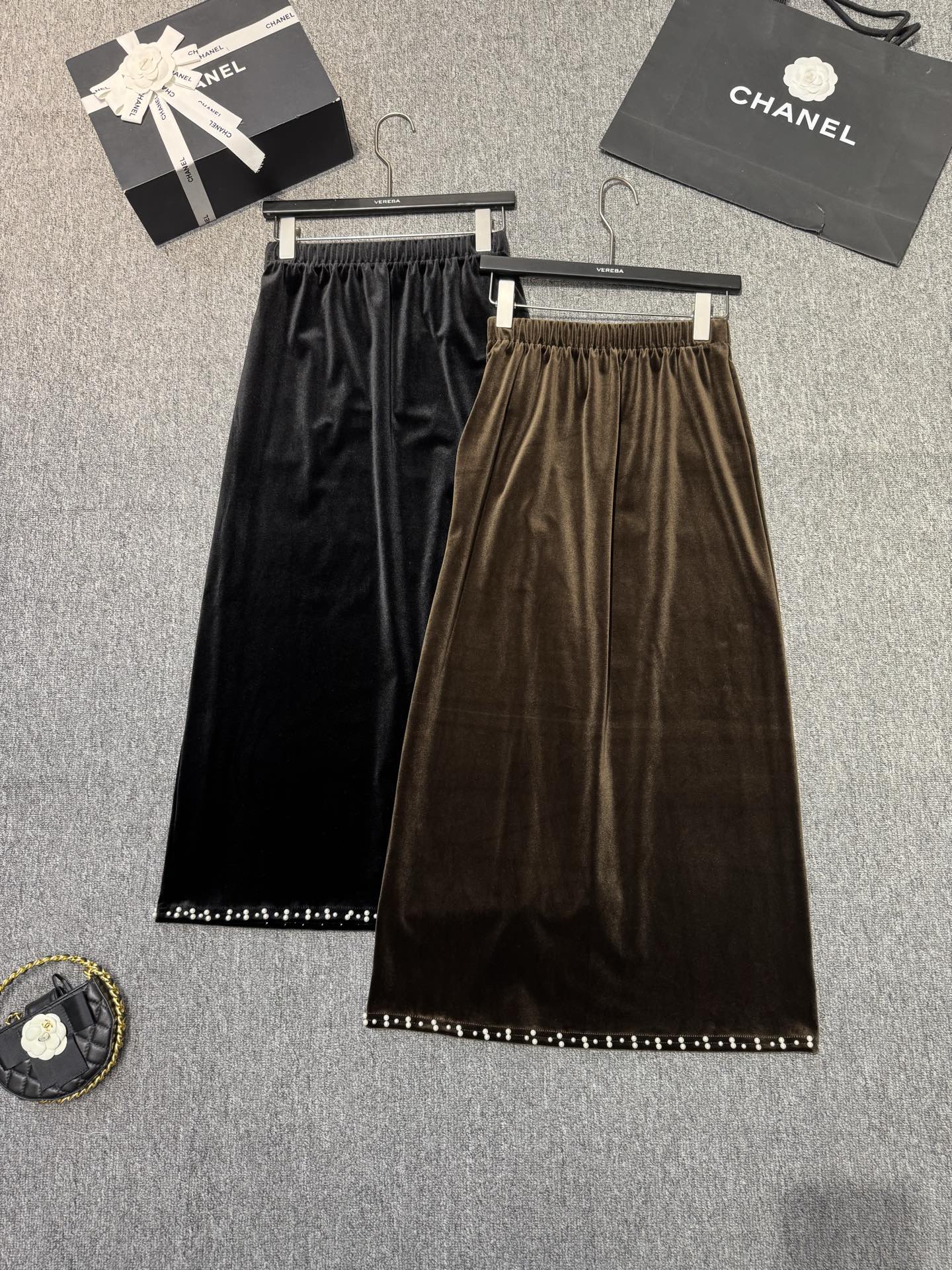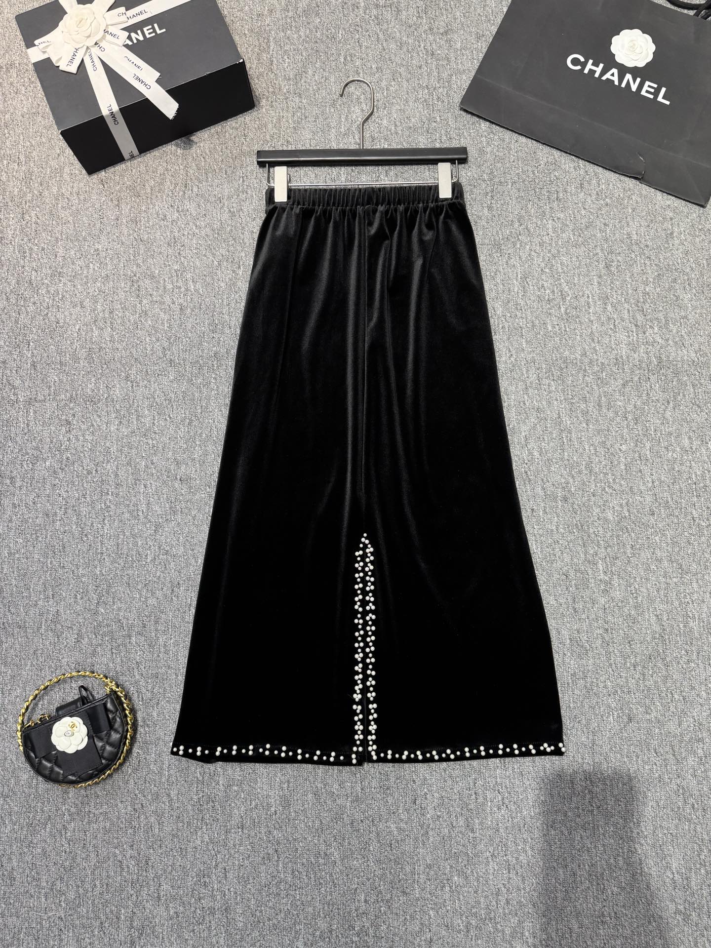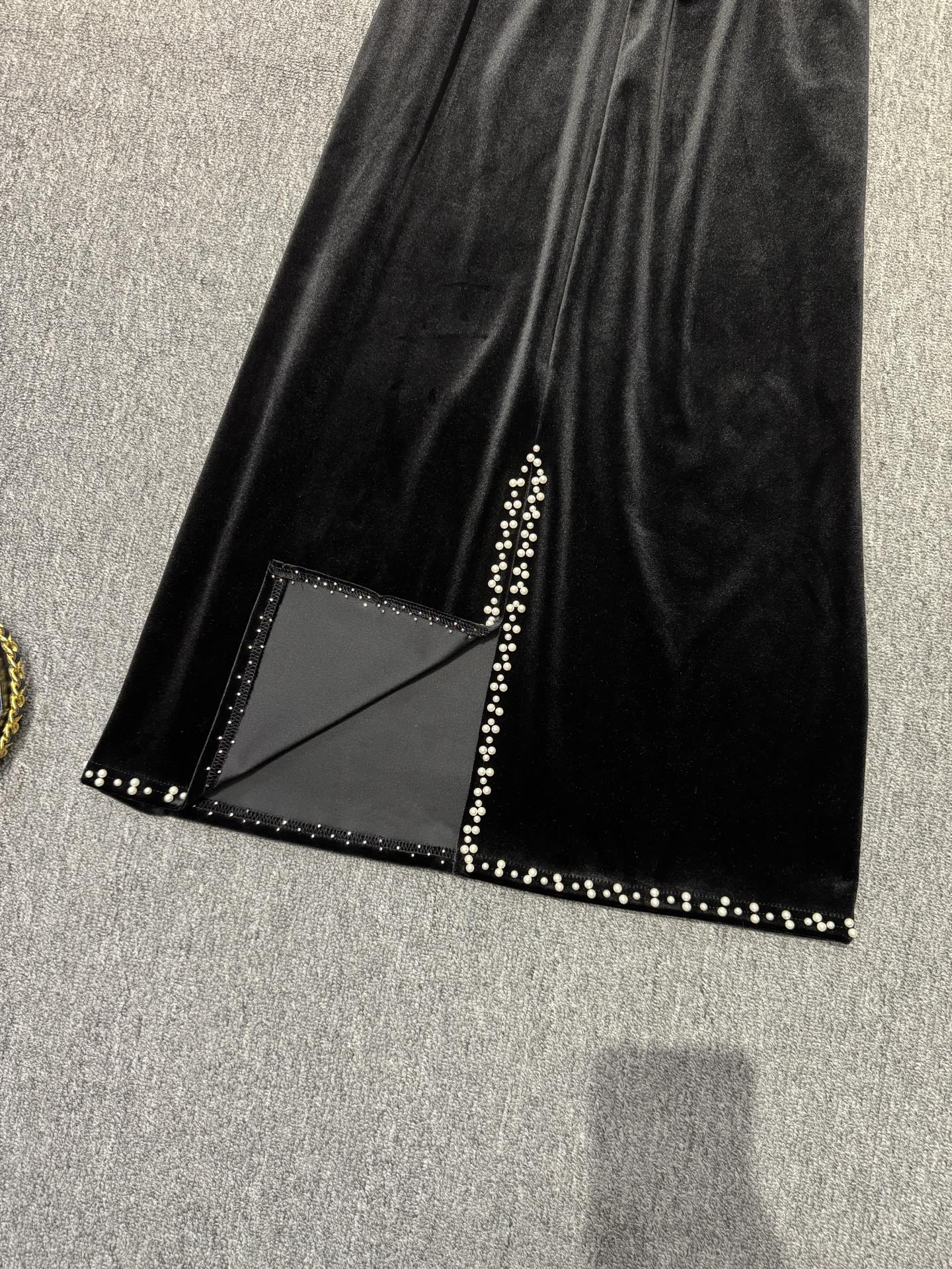 With its timeless design and exquisite details, this black velvet skirt is the perfect piece to elevate your style for any occasion.