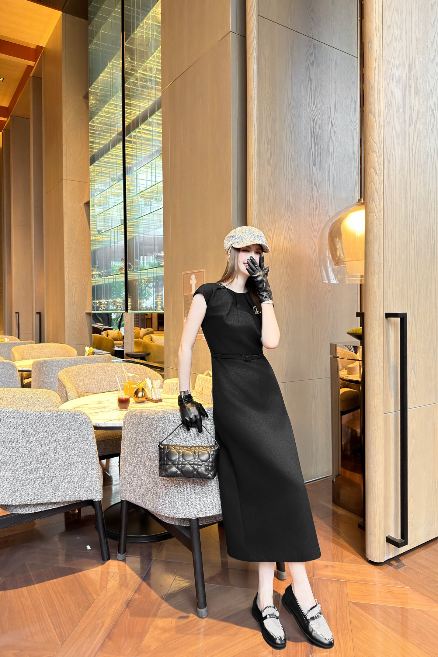 This black wool sleeveless midi dress is the epitome of timeless style and versatility. Its classic design and flattering silhouette make it a must-have addition to any wardrobe.