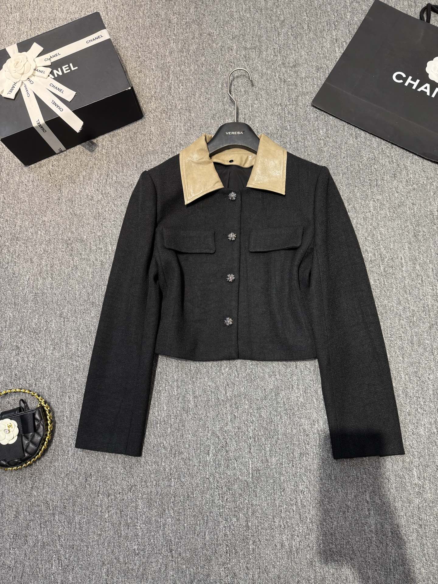 Elevate your wardrobe with this Chanel-inspired skirt set. Features a detachable collar, short jacket, and flattering A-line skirt. Perfect for a sophisticated look!