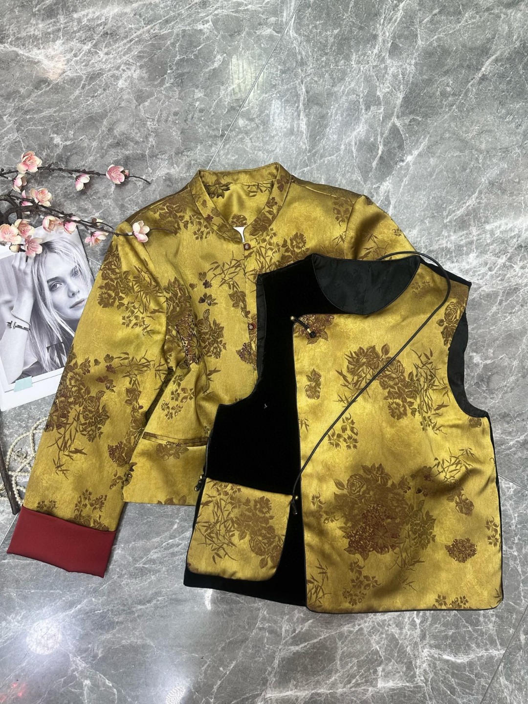 This elegant cotton-padded jacket features a unique Chinese-style design, perfect for adding a touch of oriental charm to your wardrobe.