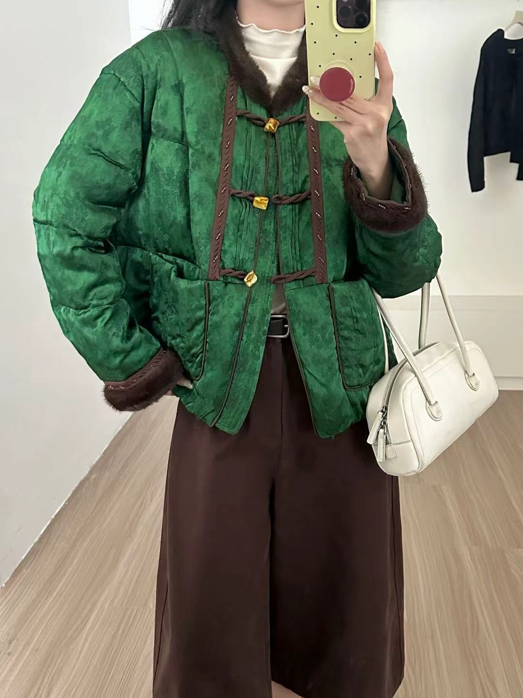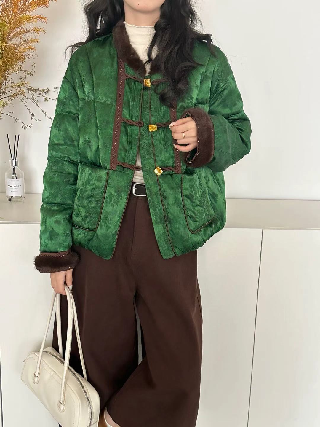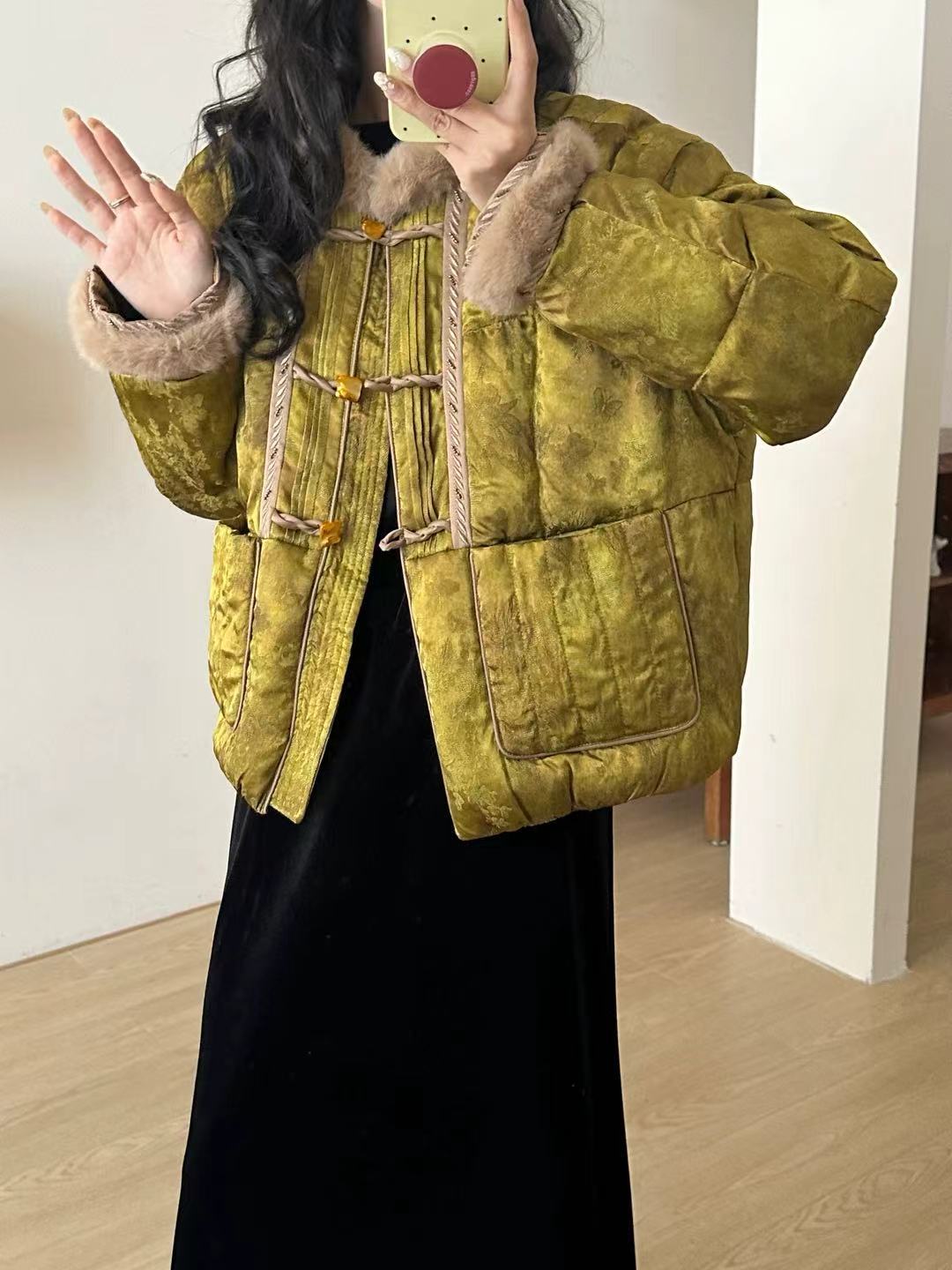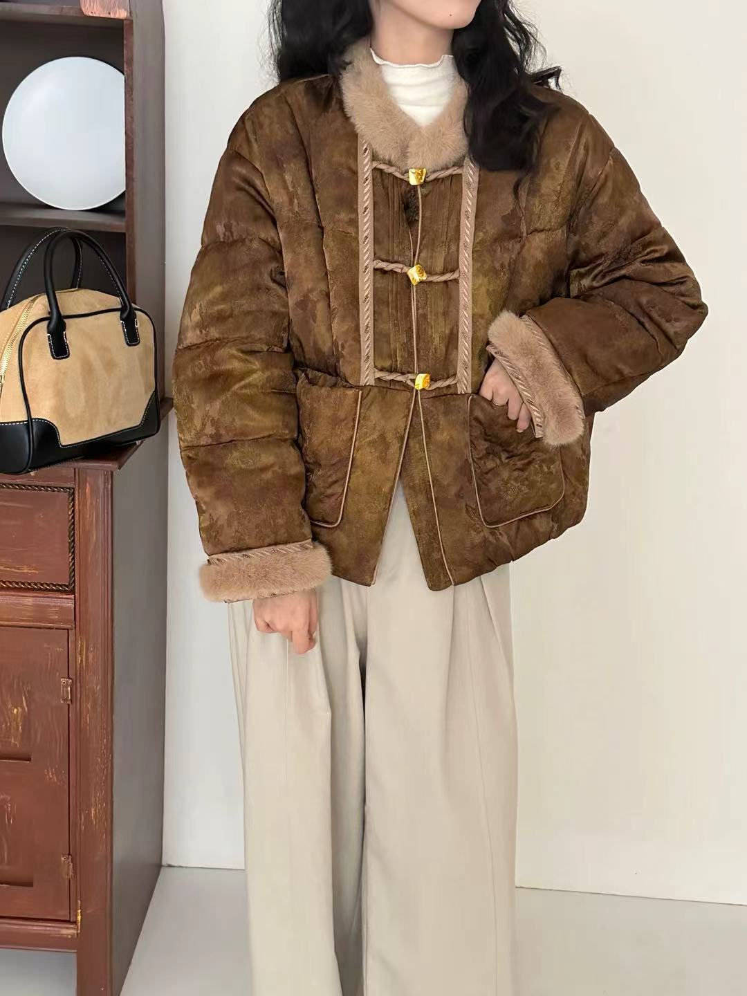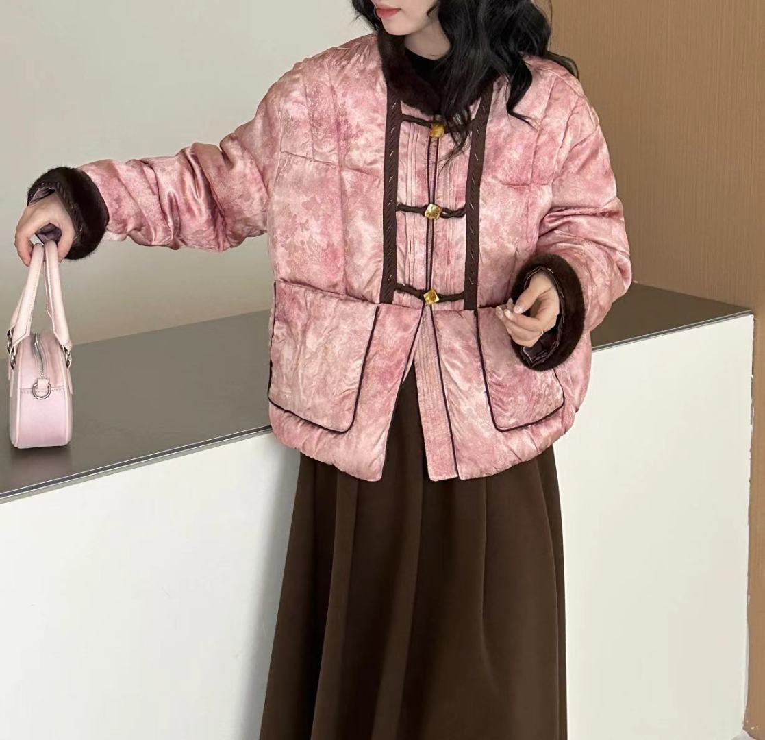 This exquisite down jacket blends traditional Chinese design with modern fashion sensibilities. The unique details and high-quality materials make it a standout piece for any wardrobe.