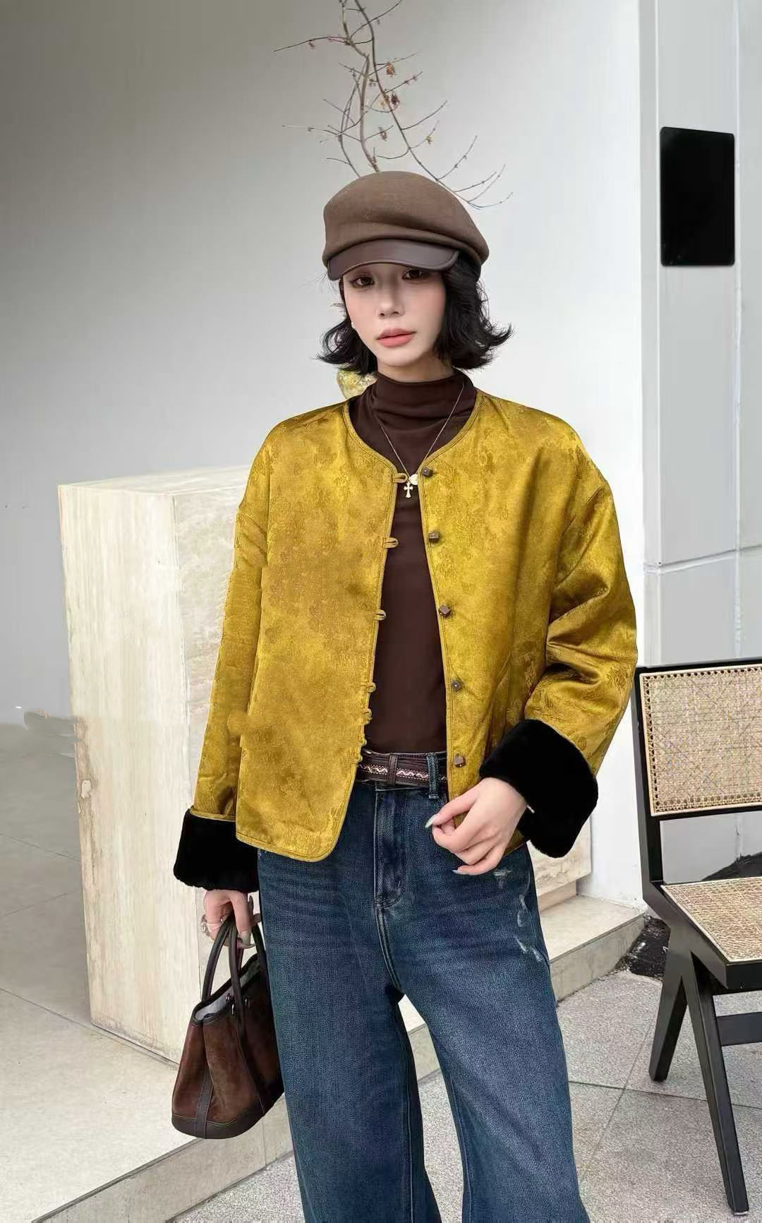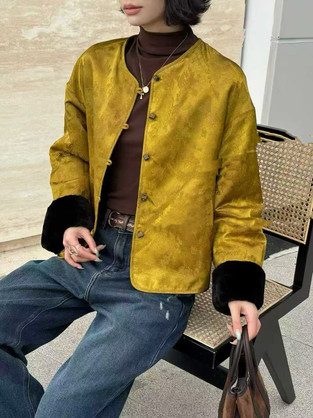 Elevate your style with this exquisite Chinese-inspired jacquard coat, blending vintage charm with modern elegance.