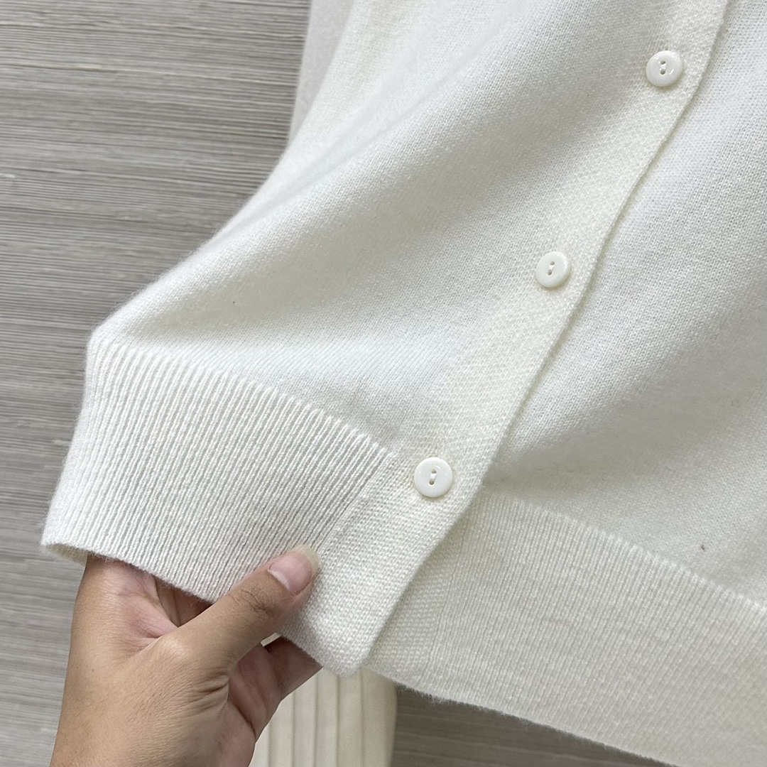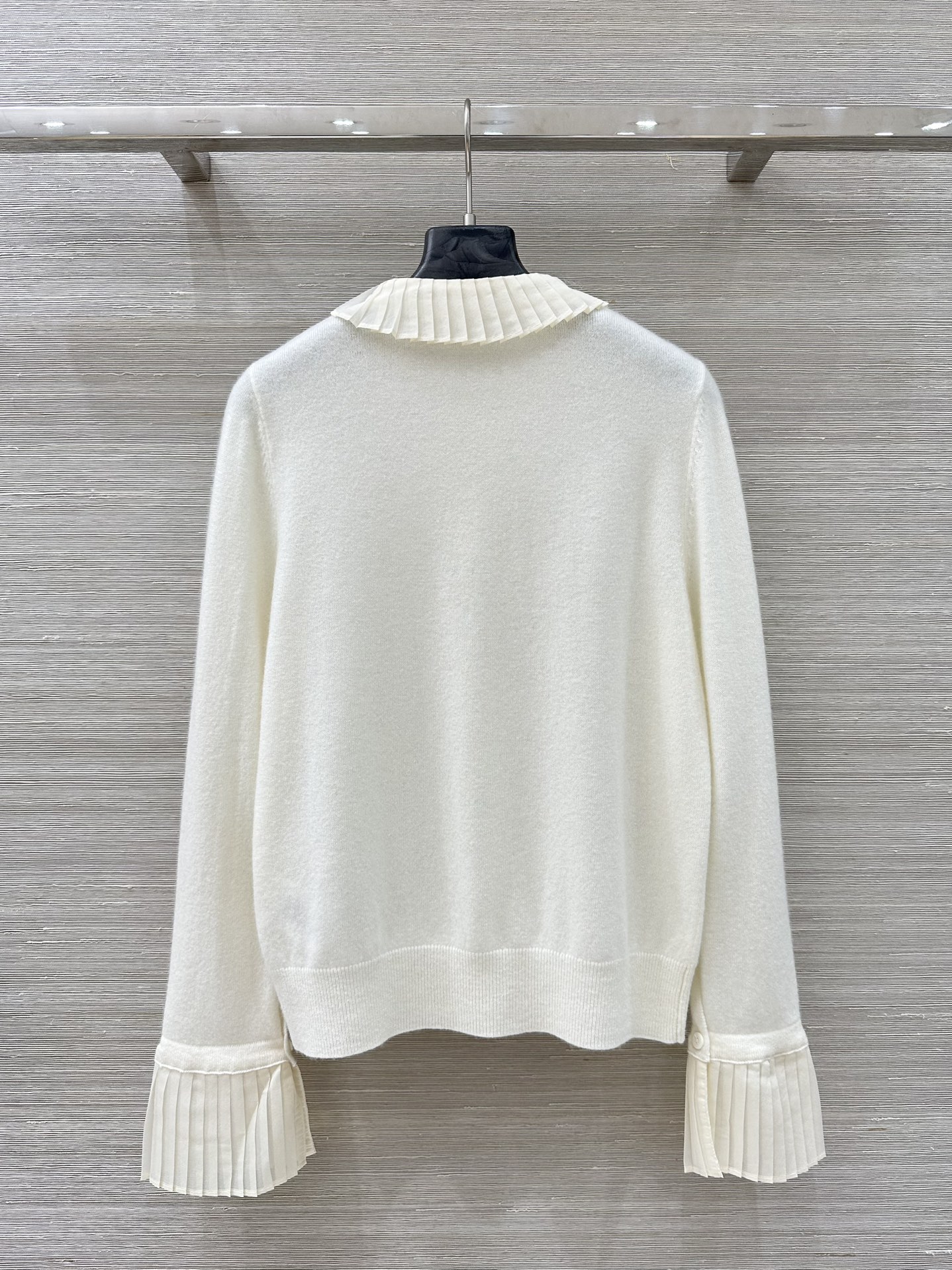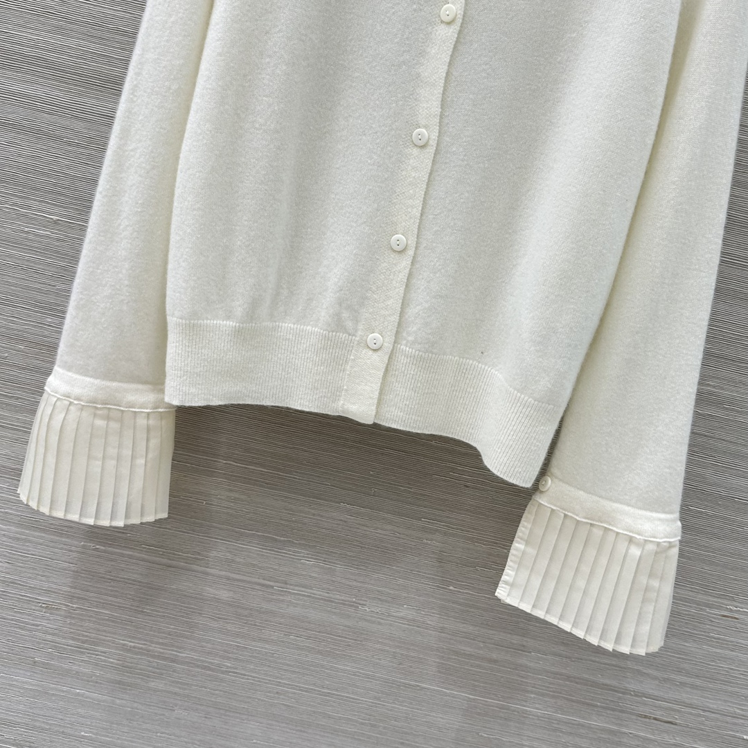 Elevate your style with this cashmere cardigan featuring a detachable silk pleated collar and cuffs.This soft, flattering knit is perfect for any occasion.