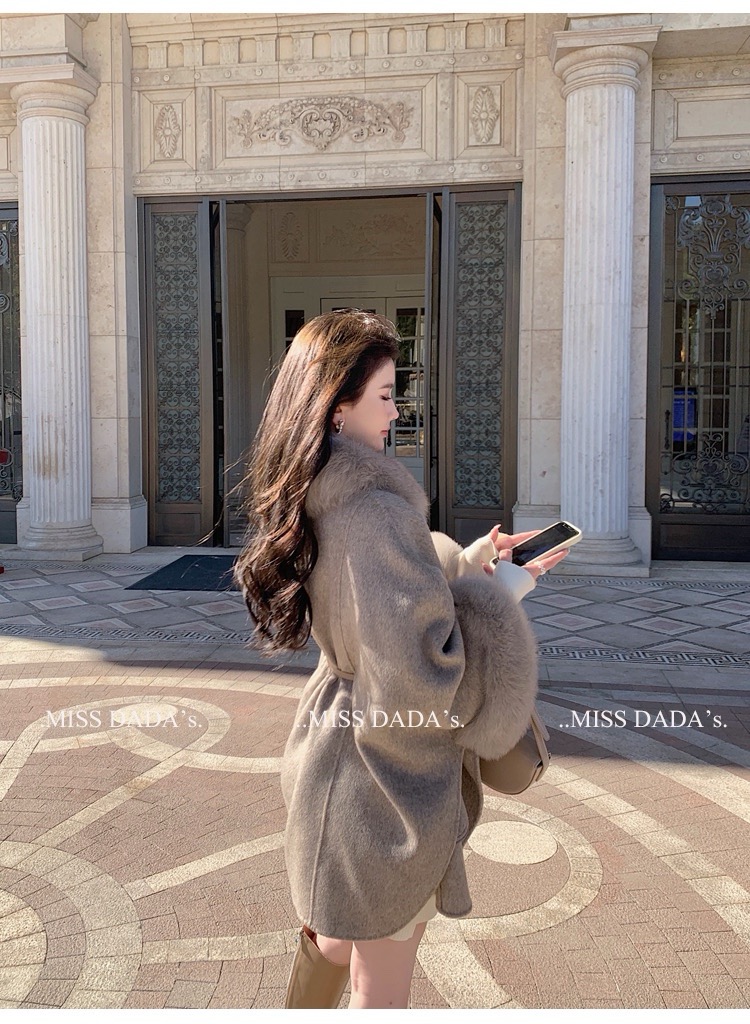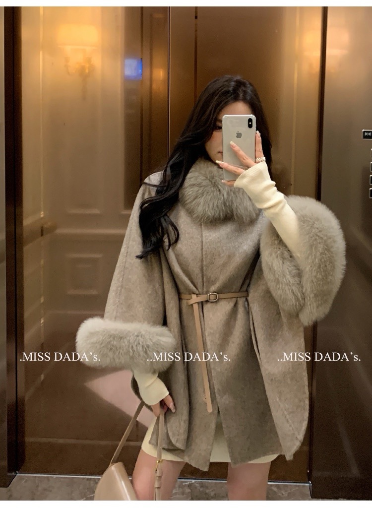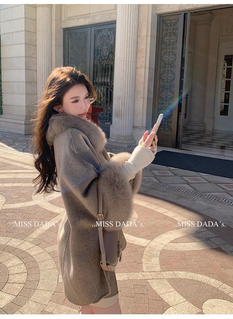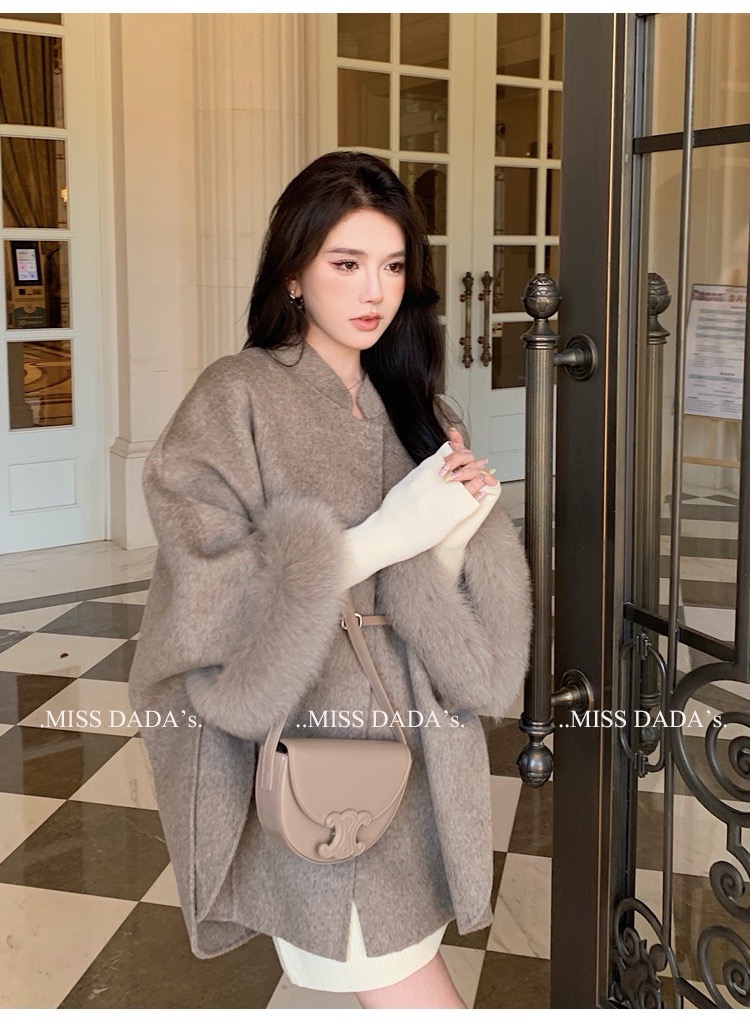 Stay stylish and cozy with this double-faced wool coat featuring fur trim. Perfect for any occasion, offering both beauty and warmth.