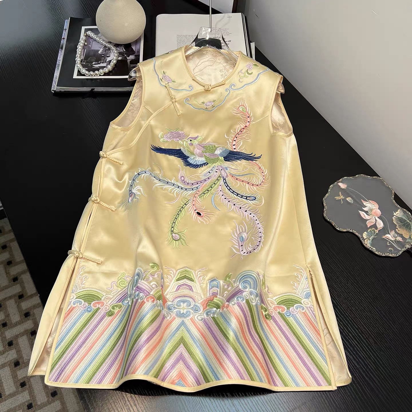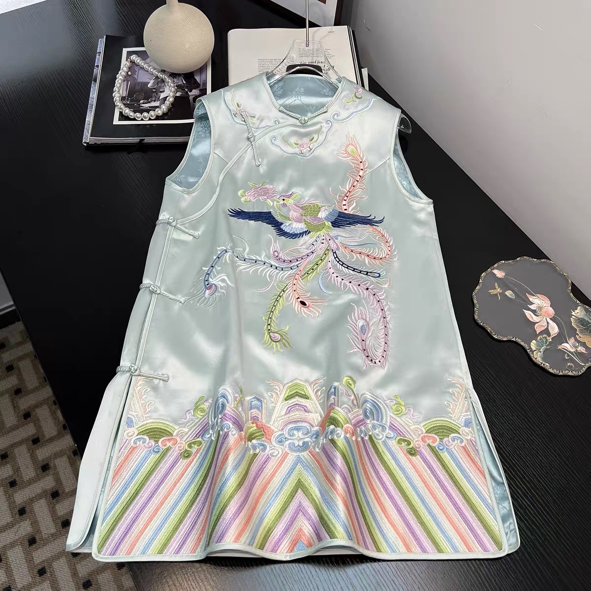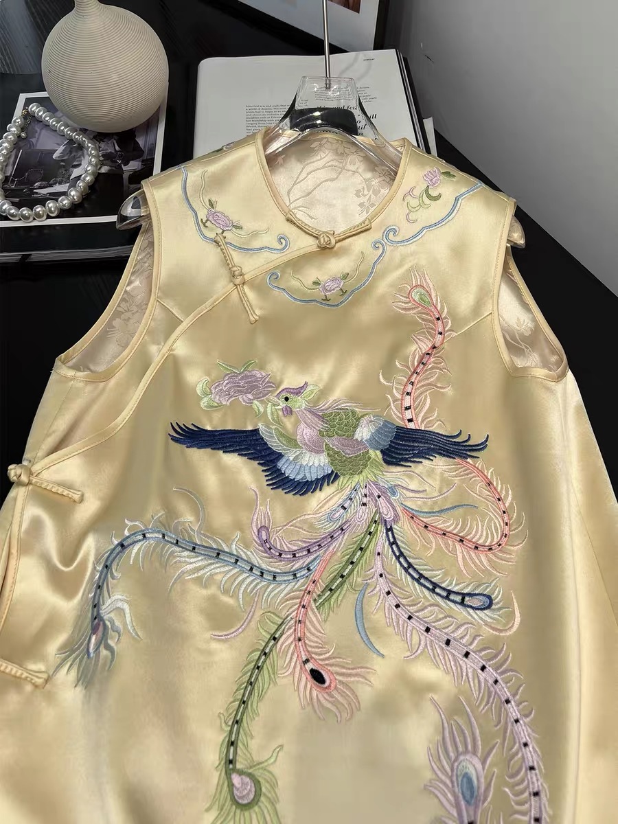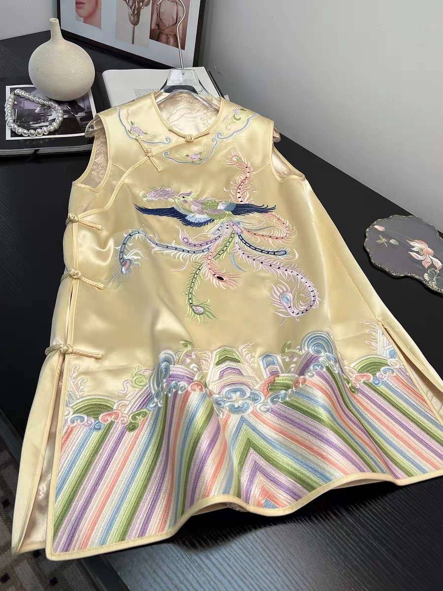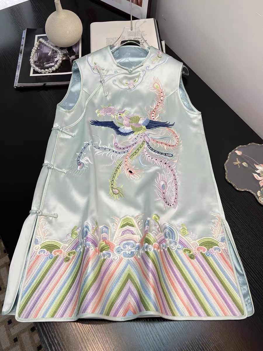 Tags: Mandarin Collar Dress, New Chinese Style Dress, Phoenix Embroidery Dress, Sleeveless Cheongsam