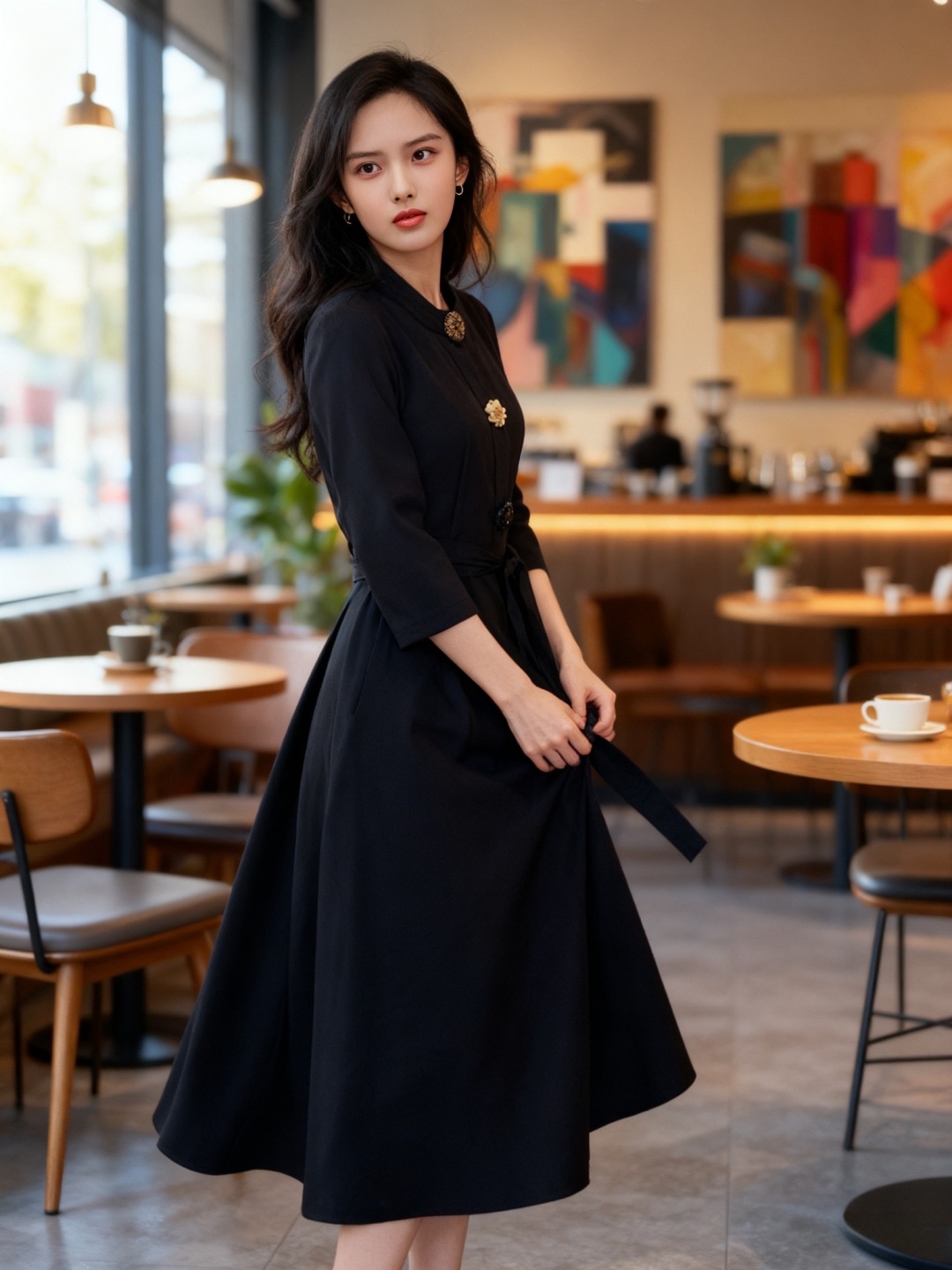 This midi dress exudes a timeless elegance with its vintage-inspired design, making it a versatile addition to your wardrobe.