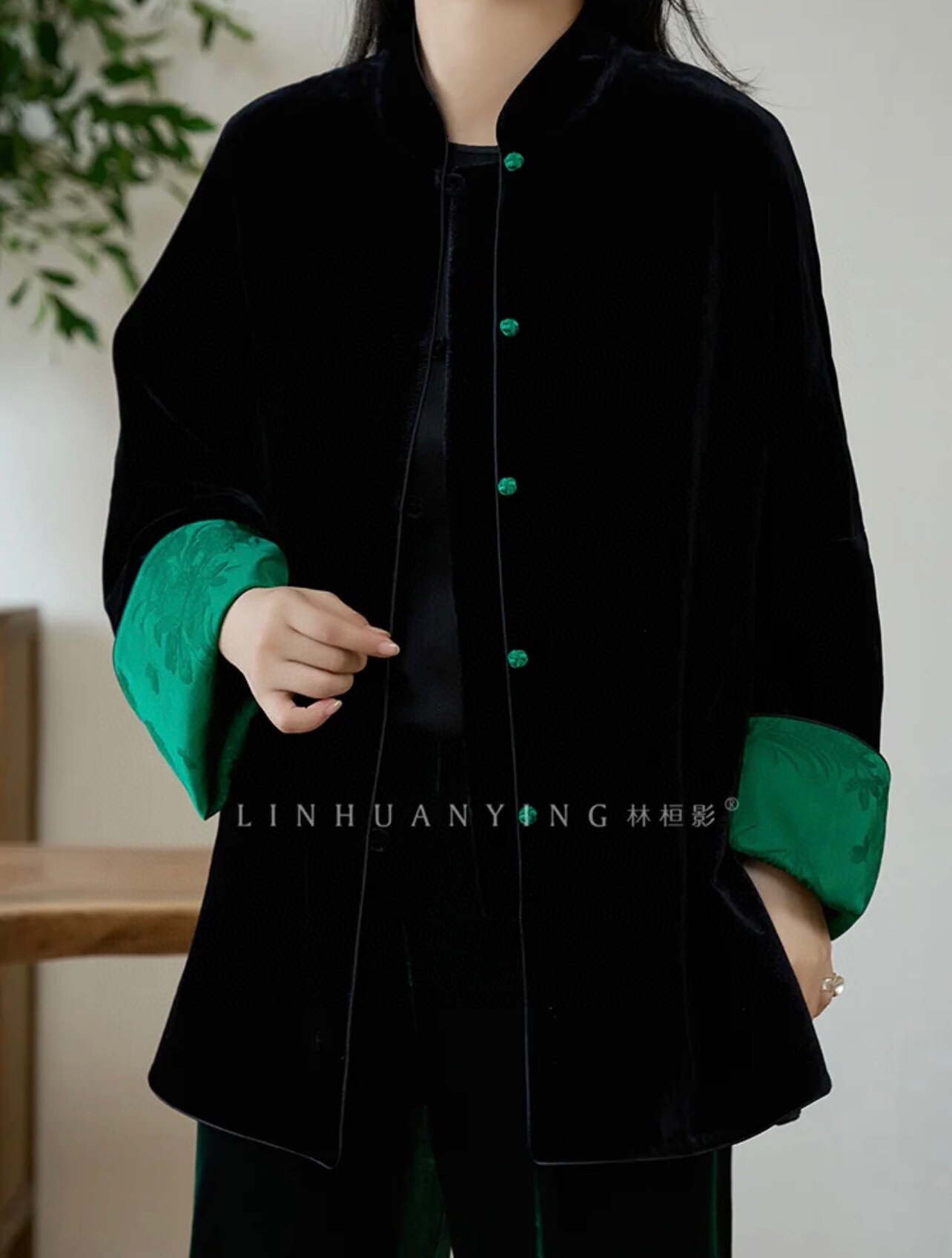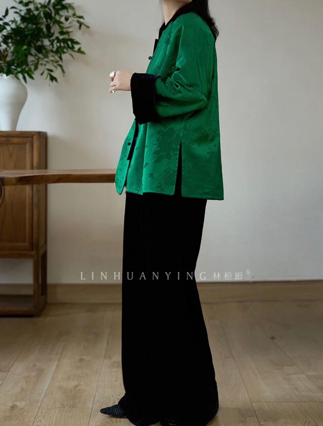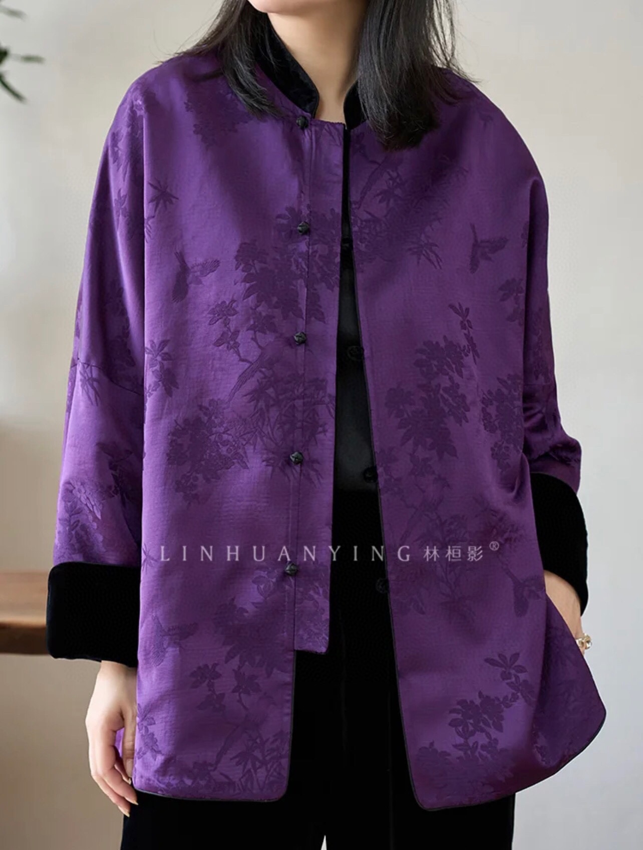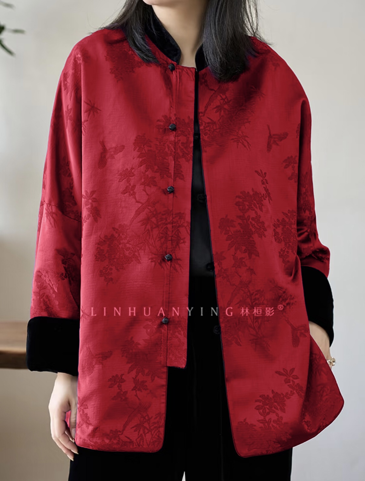 Introducing the Floral Jacquard Reversible Jacket, a fusion of modern style and classic Chinese elegance. This piece is designed for those who appreciate versatility and sophistication in their wardrobe.