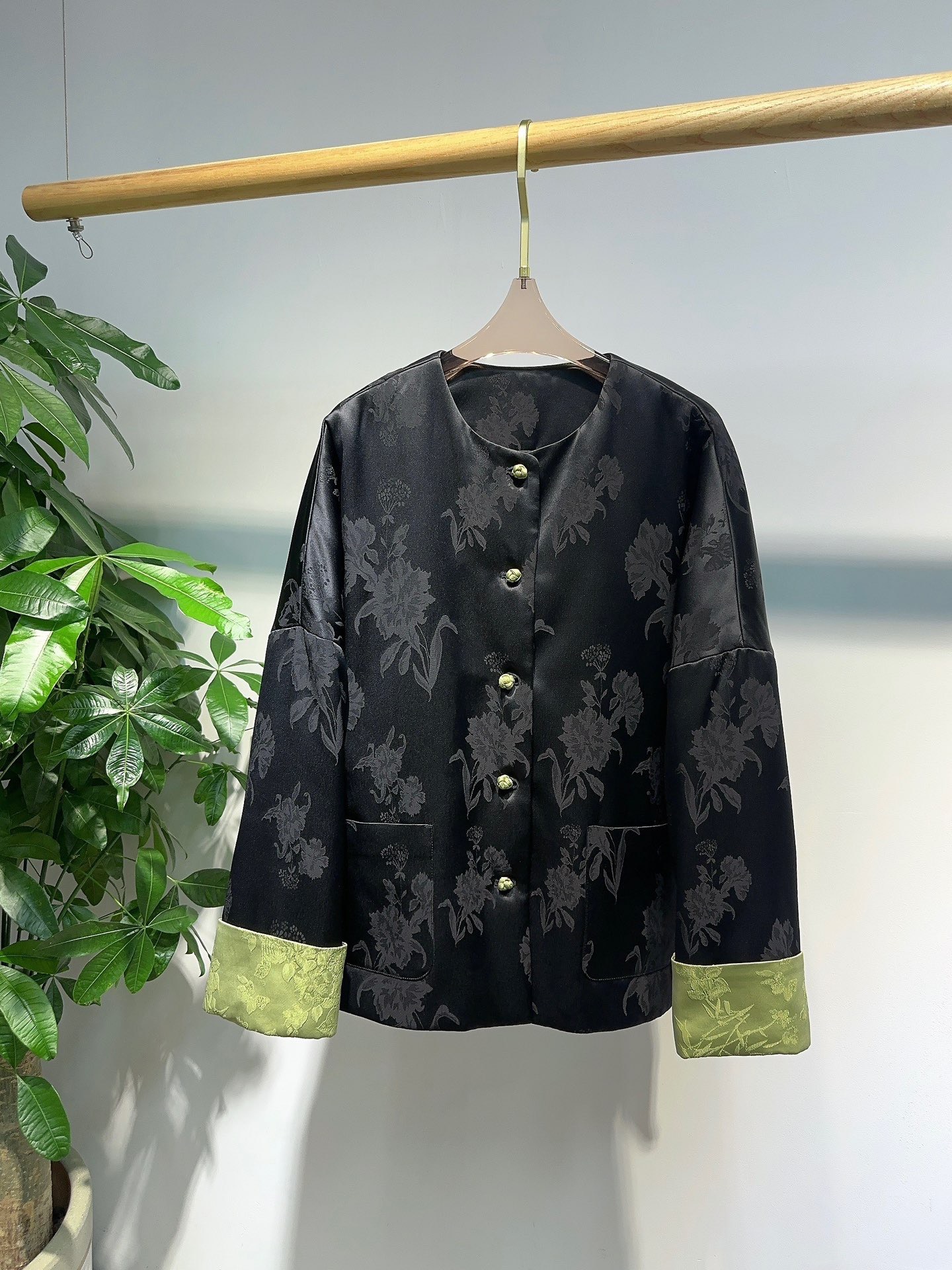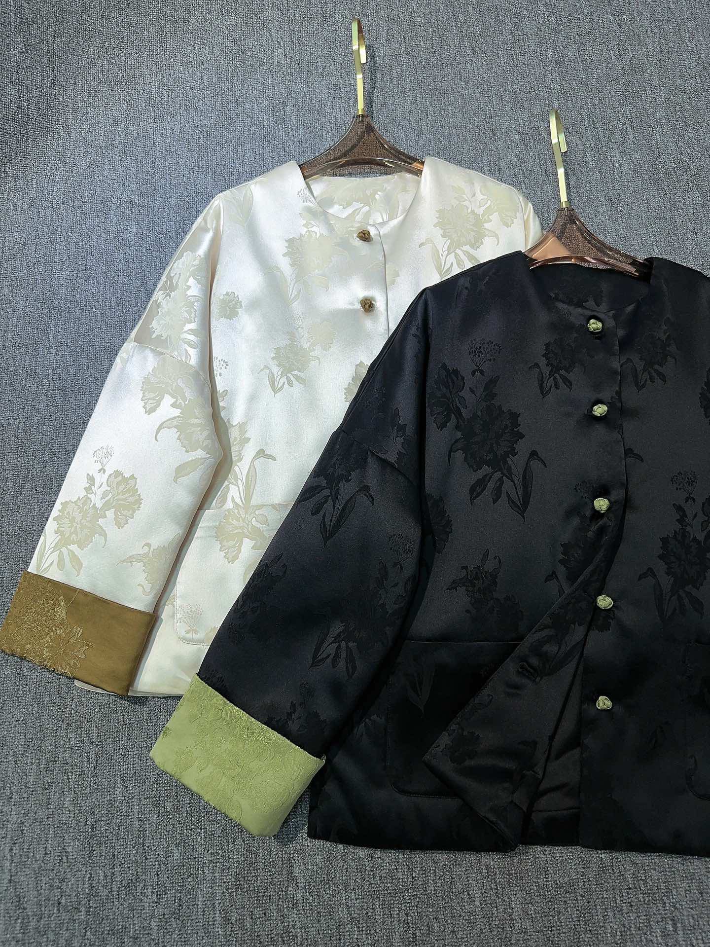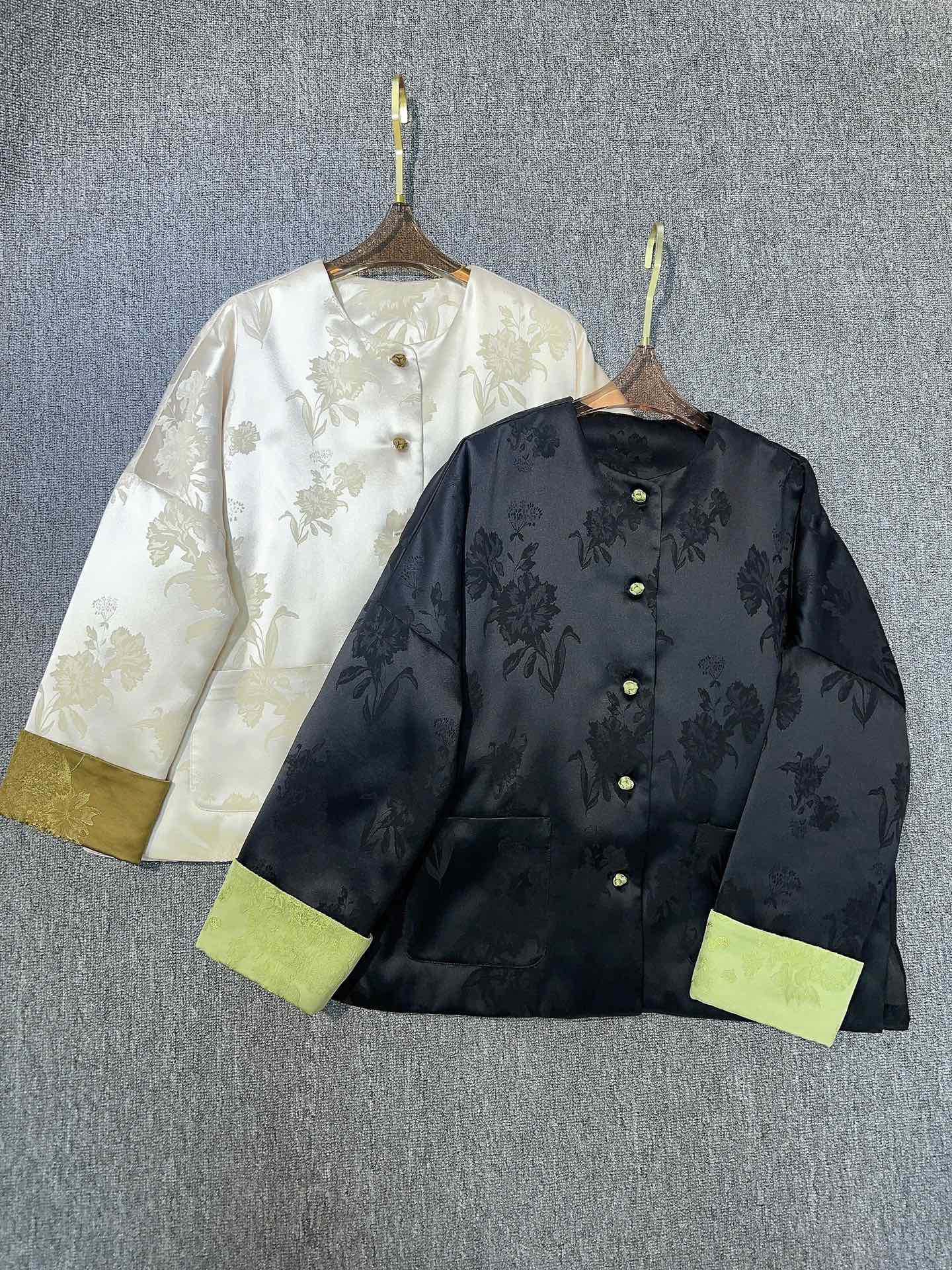 This chic cotton coat blends traditional Chinese design with modern comfort. Its unique floral pattern and soft acetate fabric make it a standout piece for any wardrobe.