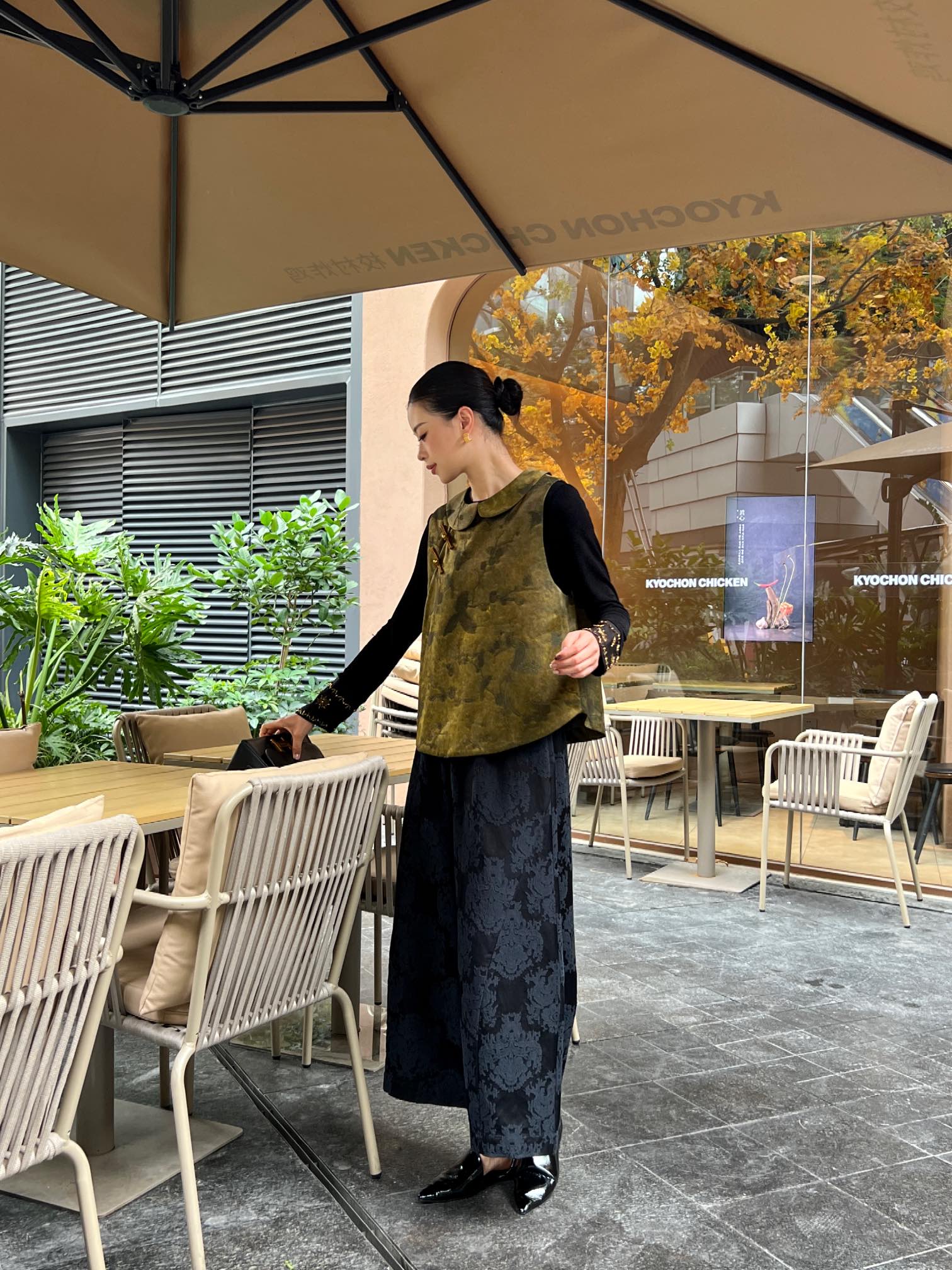 Complete your wardrobe with our exclusive silk blend vest and wide-leg pants, designed to add a touch of luxury and style to any occasion.