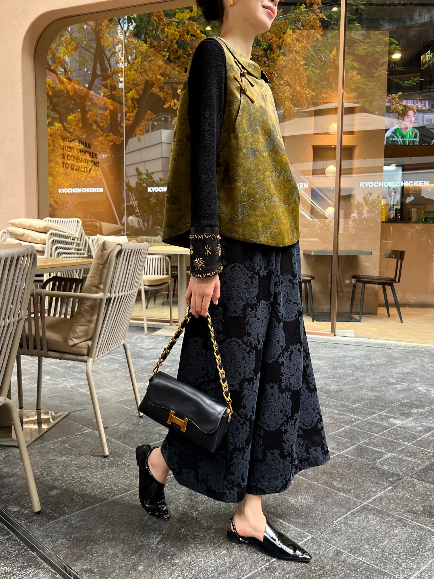 Introducing our latest exclusive design, a luxurious silk vest paired with stylish wide-leg pants, perfect for creating an elegant and sophisticated look.