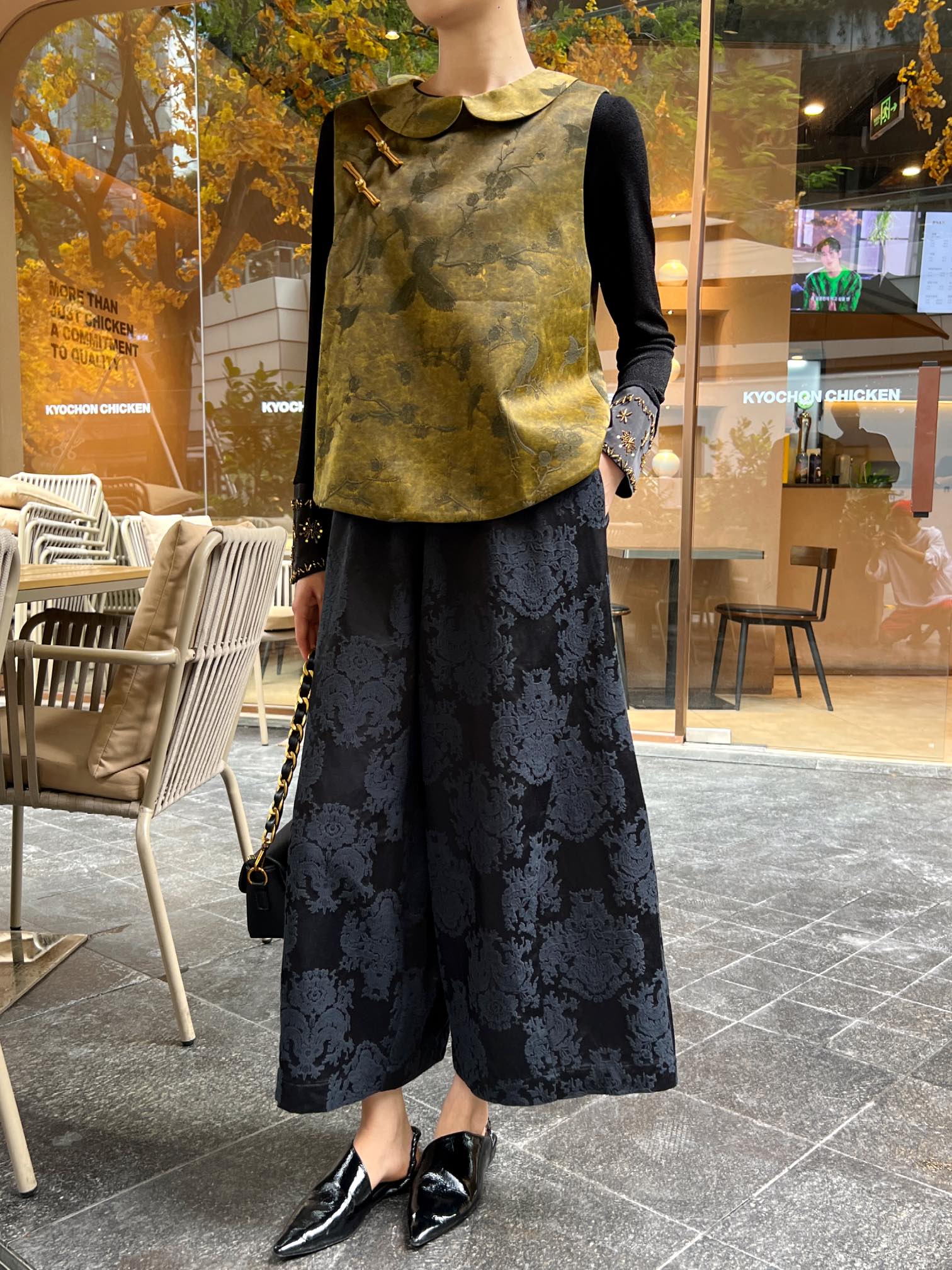 Elevate your style with our exclusive floral silk vest and wide-leg pants. Perfect for a chic and sophisticated look. Available in various sizes.