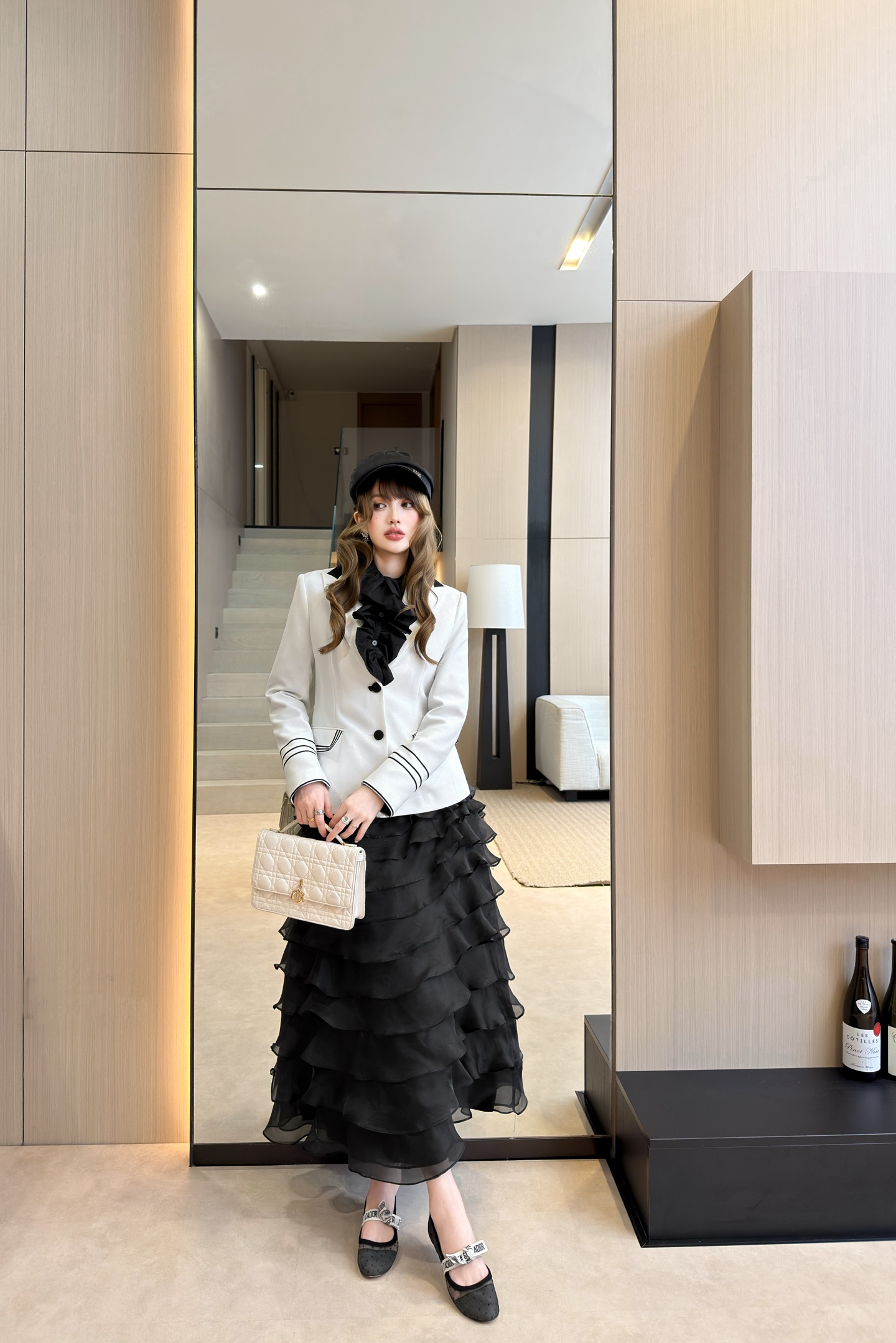 Elevate your style with this dreamy layered cake skirt. High-waisted design flatters your silhouette, while the tiered layers add a touch of ethereal charm.