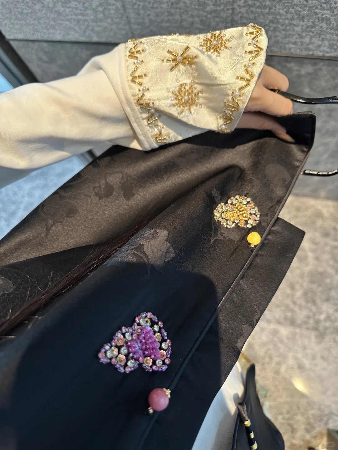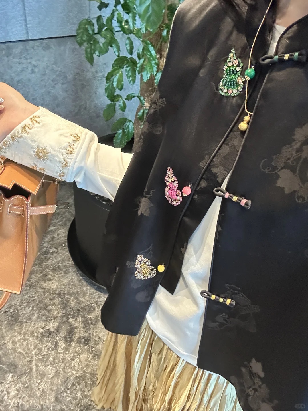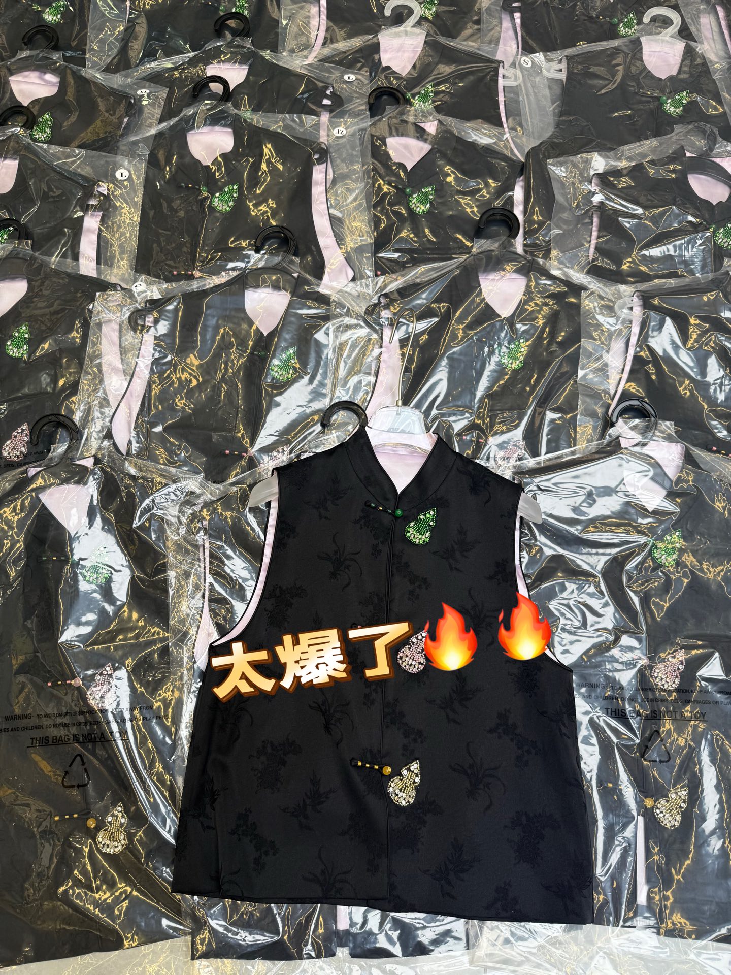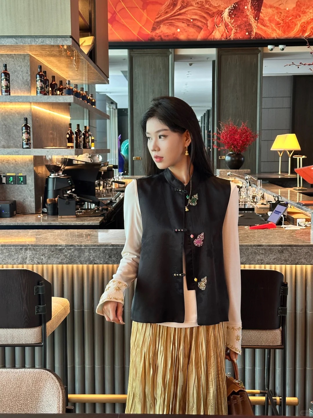 Elevate your style with this exquisite jacquard vest featuring delicate jade bead embellishments. A timeless piece with a touch of vintage charm.